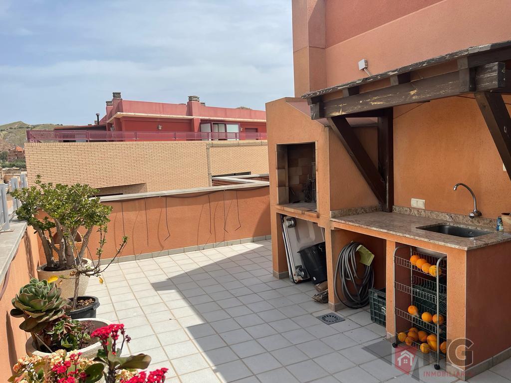 Atico 3 dormitorios, 2 baños, 1 garajes, Buen estado, en Lorca, Murcia Ático exterior con 90 metros, 3 habi. 2 baños, tiene una terraza de 104m cuadrados en la que hemos construido un lavadero y una pérgola de madera (acristalamiento cierre panorámico y parquet), con barbacoa. 5º planta con ascensor , garaje y trastero, se vende amueblado. Instalación de aire acondicionado y bomba de calor (Mitsubishi inverter), también dispone de calefacci&o..acute;n por radiadores de Gas Natural Leer mas >>