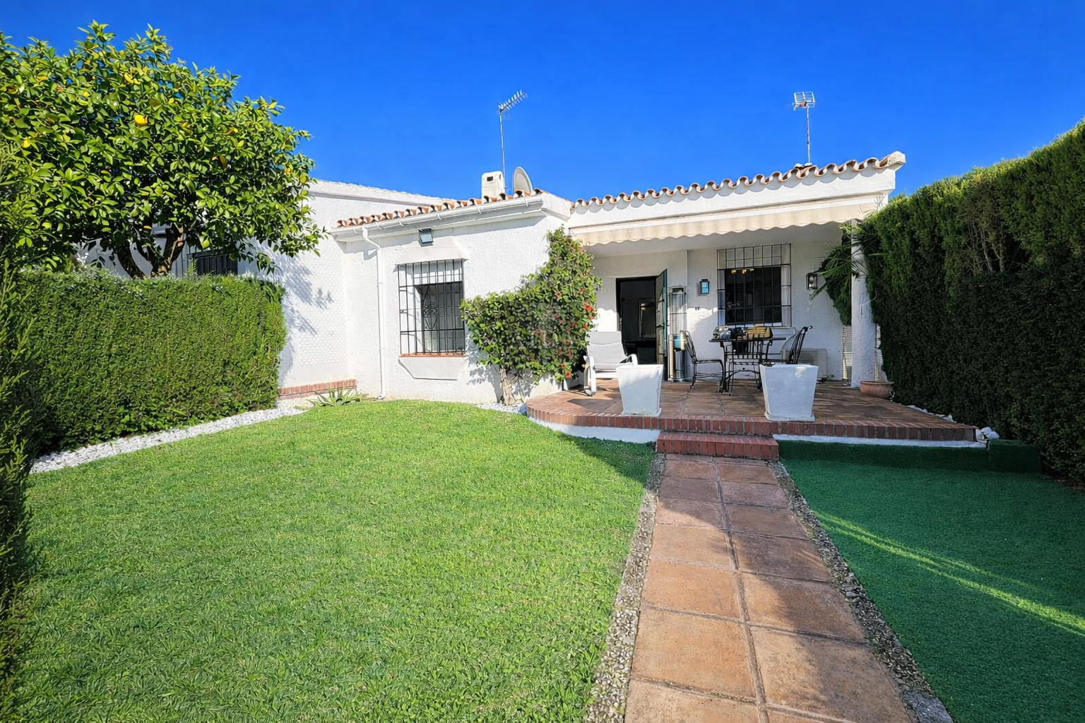 Casa Adosado, 3 dormitorios, 2 baños, 1 garajes, Buen estado, en Marbella, Málaga Casa adosada en venta junto a Guadalmina, San Pedro de Alcántara (Marbella)Vivienda adosada situada en una zona residencial consolidada y tranquila, próxima a Guadalmina y a pocos minutos de todos los servicios de San Pedro de Alcántara.La casa cuenta con un amplio salón-comedor con dos ambientes diferenciados y chimenea, con salida directa a un jardín privado de apr..oximadamente 90 m², un espacio exterior cómodo y funcional para disfrutar durante todo el año. Dispone de tres dormitorios dobles, destacando el principal con baño en suite, además de un segundo baño completo que da servicio al resto de la vivienda. La cocina es independiente y se encuentra totalmente amueblada.La propiedad está equipada con aire acondicionado en todas las estancias e incluye plaza de aparcamiento y trastero.Forma parte de una urbanización cuidada, con amplias zonas ajardinadas y piscina comunitaria, en un entorno residencial bien comunicado y cercano a colegios, comercios y playas.Para más información o concertar una visita, no dude en contactarnos. Leer mas >>