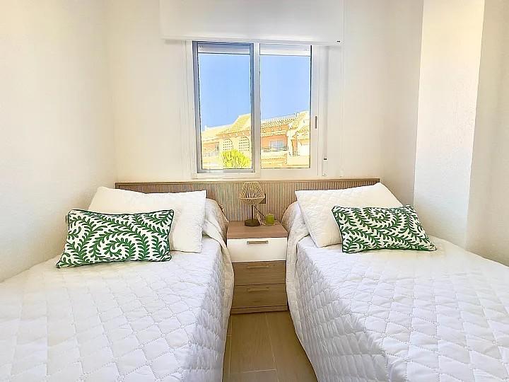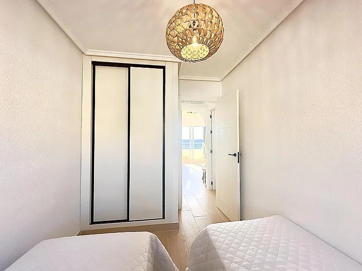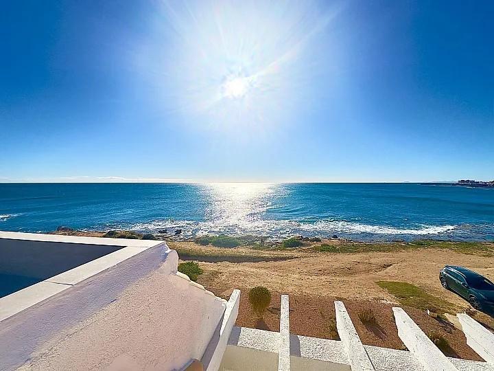 APARTAMENTO EN ALICANTE,TORREVIEJAApartamento 2 dormitorios, 1 baños, 0 garajes, Reformado, en Torrevieja, Alicante ¡Descubre tu nuevo hogar en la primera línea del mar! Este impresionante chalet pareado en Cala del Moro, Cabo Cervera (Torrevieja), ofrece vistas panorámicas al Mediterráneo que te dejarán sin aliento. Con 65 m² construidos, este apartamento reformado a estrenar cuenta con 2 acogedores dormitorios y un baño completamente nuevo, ideal para disfrutar de la comodidad y el estilo moderno.El salón-comedor luminoso se abre a una terraza privada donde podrás relajarte mientras contemplas el horizonte marino. Además, el gran solárium privado es perfecto para disfrutar del sol y las vistas en cualquier momento del día. Equipado con aire acondicionado y persianas eléctricas, cada rincón de este hogar ha sido diseñado pensando en tu confort.Ubicado en un residencial con piscina comunitaria, la ubicación es inmejorable, cerca de servicios, restaurantes y zonas de ocio. Esta es una oportunidad única para vivir o invertir en un entorno privilegiado frente al mar. ¡No dejes pasar la ocasión de hacer de este chalet tu nuevo hogar! |
