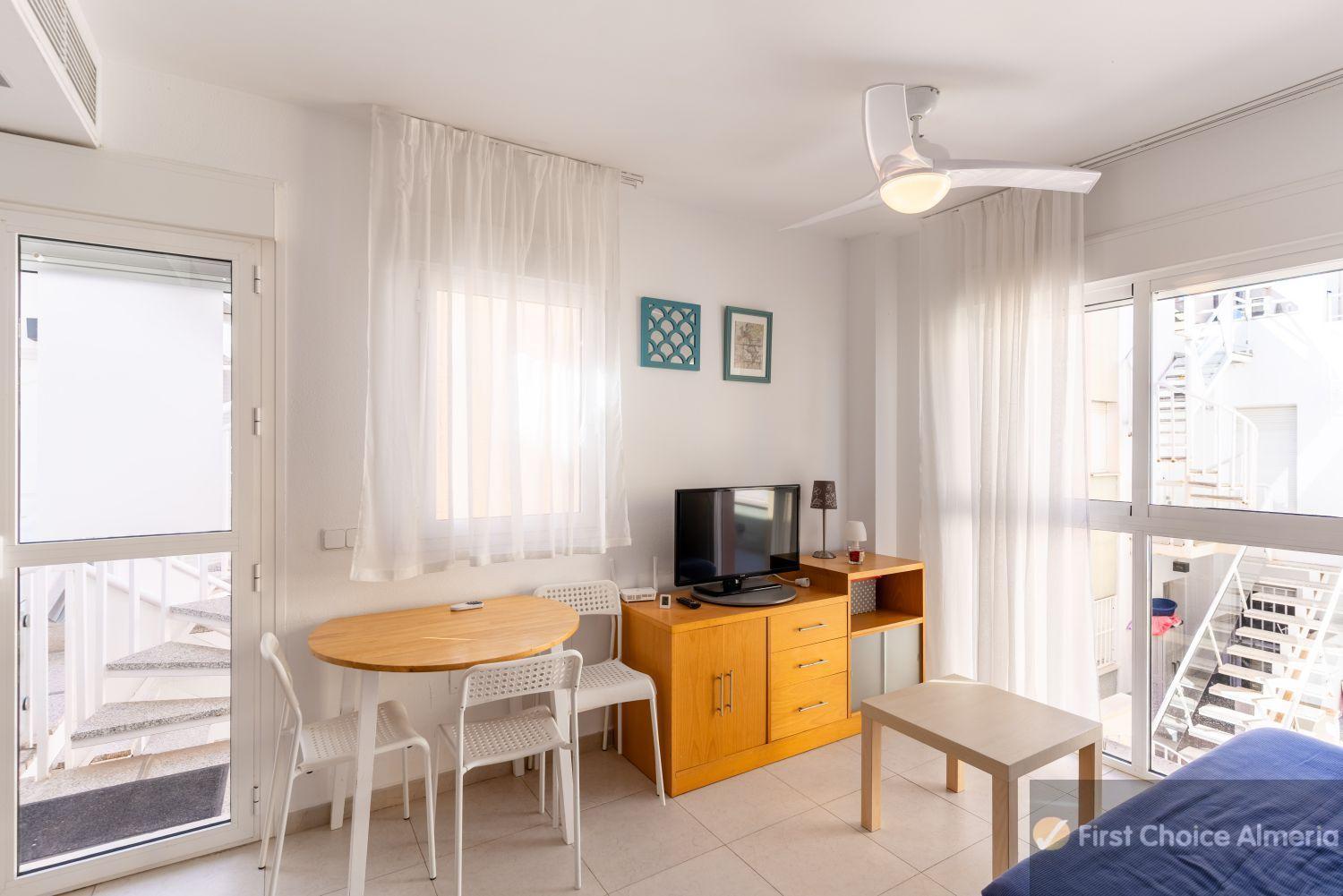 APARTAMENTO EN ALMERíA,VERAApartamento 1 dormitorios, 1 baños, 1 garajes, Buen estado, en Vera, Almería Ático con solárium y jacuzzi en Laguna Beach, a un paso del mar Te presentamos este atractivo ático situado en la urbanización Laguna Beach, a tan solo 5 minutos andando de la playa. Una ubicación perfecta para disfrutar del clima, el entorno y la tranquilidad sin renunciar a la comodidad del día a día. Está ubicado en una avenida amplia y poco transitada, pero con todos los servicios esenciales muy cerca: supermercados, farmacia, cafeterías, restaurantes y transporte público. La vivienda cuenta con un amplio solárium privado donde podrás relajarte, tomar el sol o disfrutar de un baño en tu propio jacuzzi con total privacidad. Es un espacio perfecto tanto para desconectar como para compartir buenos momentos con familia o amigos. Dispone de aire acondicionado por conductos, ideal para mantener una temperatura confortable durante todo el año, y se vende con plaza de parking subterránea incluida, lo que aporta un extra de comodidad y seguridad. Además, forma parte de una cuidada urbanización con piscina comunitaria y zonas comunes pensadas para el disfrute y el descanso. Una excelente opción tanto como vivienda habitual como para tus escapadas de vacaciones. No dejes pasar esta oportunidad de vivir cerca del mar, en un entorno cómodo, bien comunicado y con ese plus de calidad de vida que todos buscamos. Precio Actual + Impuestos (7% ITP). Este precio no incluye gastos de notaría y registrales. Los tipos aplicados son los más altos, pudiendo el comprador, por sus características, beneficiarse de algunas deducciones fiscales. EL COMPRADOR NO TIENE NINGÚN GASTO DE LA GESTIÓN DE LA INMOBILIARIA.Características básicas41 m2 construidos1 dormitorio1 BañoTerrazaPlaza de garaje incluida en el precioSegunda mano/Buen estadoEdificioPlanta 1, interiorSin ascensorCertificación energética D |