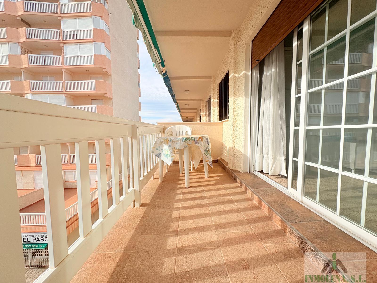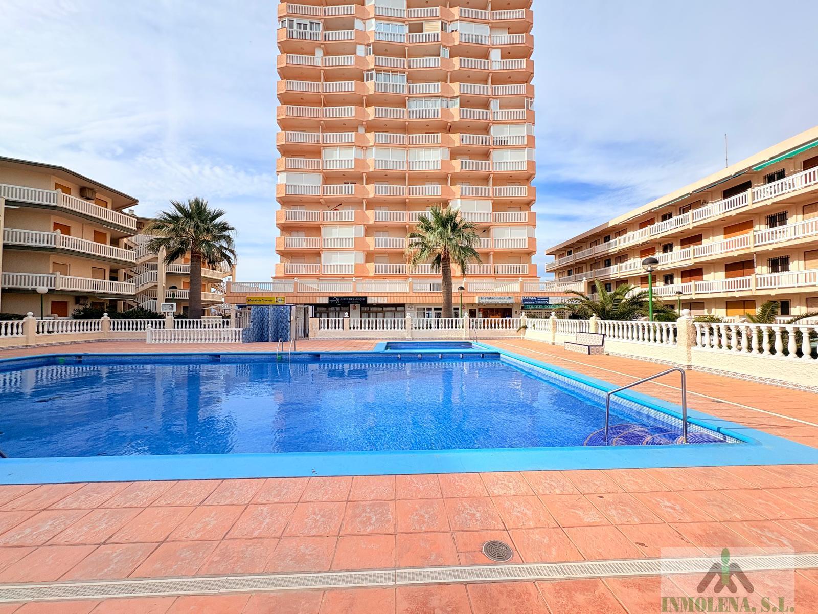 APARTAMENTO EN MURCIA,LA MANGA DEL MAR MENORApartamento 1 dormitorios, 1 baños, 0 garajes, Buen estado, en La Manga del Mar Menor, Murcia Tercer piso sin ascensor con vistas al Mar Menor en Urbanización Borinquen. Vivienda con dos terrazas y ventilación cruzada, orientación norte-sur. La vivienda tiene una superficie de 53 m2 distribuidos en un amplio salón-comedor con cocina americana, un dormitorios con armario empotrado, un baño y dos terrazas, una utilizada como lavadero.Piscina comunitaria y aparcamientos sin asignar, en el km 5,5 de La Manga |