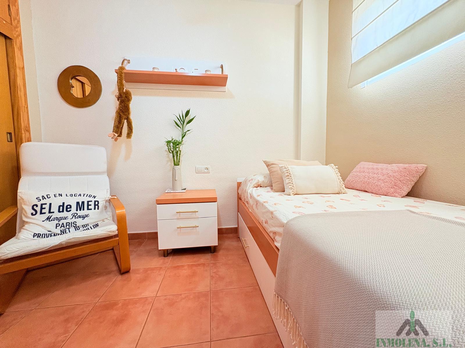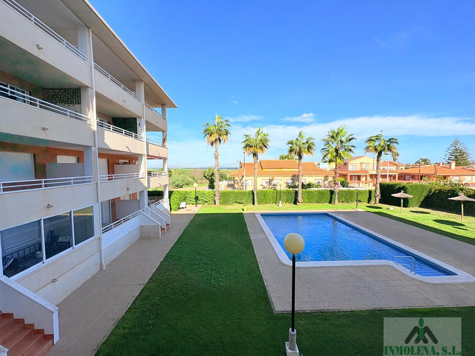 APARTAMENTO EN MURCIA,LOS NIETOSApartamento 2 dormitorios, 1 baños, 1 garajes, Buen estado, en Los Nietos, Murcia Vivienda en Urbanización en Los Nietos con piscina comunitaria. Se trata de un primer piso con ascensor, de 86 m2, 80m2 útiles, distribuidos en un gran salón comedor, cocina independiente con lavadero, dos dormitorios, ambos con armarios empotrados, un baño y una gran terraza con vistas a la piscina de la urbanización. Vistas parciales al Mar Menor desde la terraza.Incluye una plaza de aparcamiento numerada en superficie. Edificio seminuevo, del 2001, cuenta con ascensor.Vivienda amplia y en buen estado, lista para entrar a vivir.En una muy buena zona de Los Nietos, a un paso de todos los servicios necesarios a 15 minutos de Cartagena. |