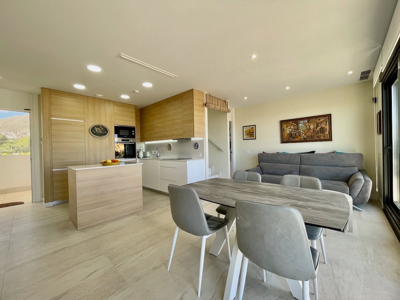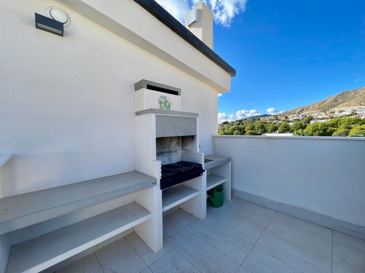 APARTAMENTO DúPLEX EN ALICANTE,FINESTRATApartamento Dúplex, 3 dormitorios, 3 baños, 1 garajes, Seminuevo, en Finestrat, Alicante Moderno ático dúplex en Sierra Cortina. Este ático con amplias terrazas está orientado al sureste y tiene vistas al mar y a las montañas. La vivienda tiene tres dormitorios y tres baños. El edificio dispone de amplias zonas comunes con una piscina con cascada, piscina infantil, zonas de sombra y sol, zona infantil y grandes jardines con zona de barbacoa. Además, tiene gimnasio, sauna y jacuzzi. El ático incluye un completo aire acondicionado, domótica, suelo radiante en los baños, barbacoa en la terraza, plaza de garaje y trastero. En la planta principal tenemos el salón con la cocina americana, un dormitorio con baño en suite, un segundo dormitorio y otro completo baño. Los dormitorios y el salón tienen acceso directo a la terraza. En la planta superior se encuentra un gran dormitorio con un baño en suite y una gran terraza con barbacoa y bonitas vistas. El edificio está ubicado a quince minutos andando de un gran centro comercial. En 10 minutos de conducción podemos acceder a tres playas, además hay varios campos de golf muy cerca. El acceso a la autopista está a tres minutos de conducción. |