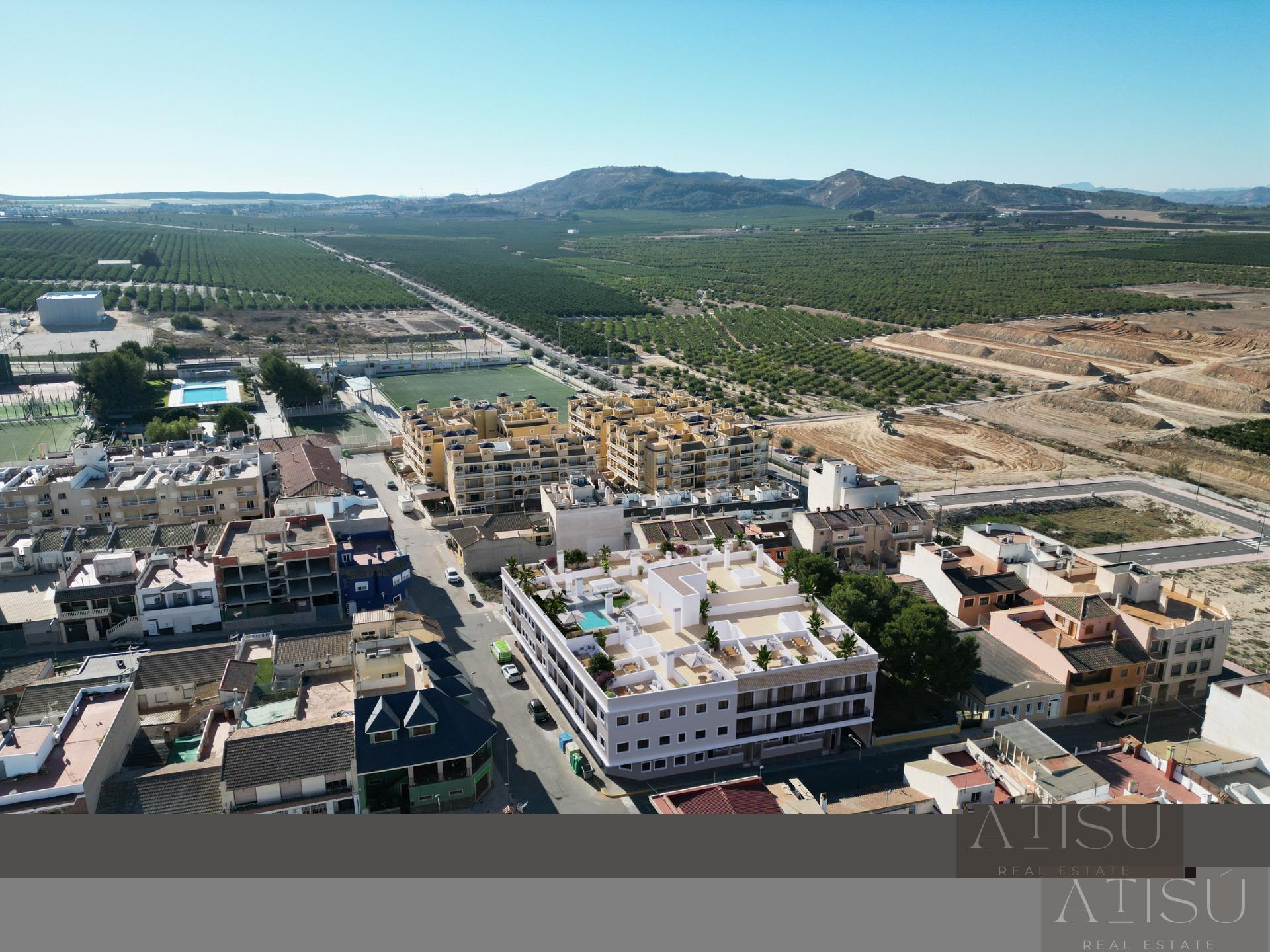 ATICO EN ALICANTE,ALGORFAAtico 3 dormitorios, 2 baños, 0 garajes, , en Algorfa, Alicante RESIDENCIAL DE OBRA NUEVA EN ALGORFAResidencial de obra nueva de 41 elegantes apartamentos y áticos en Algorfa.Residencial consta de apartamentos de 1, 2 y 3 dormitorios, con 1 o 2 baños, cocina americana con el salón, armarios empotrados.Los modernos áticos disponen de solarium privado.Preinstalación de aire acondicionado frío/calor, impulsión por conductos y retorno por rejillas en falso techo.Cocina y frente en compacto de PVC, equipada con armarios bajos y altos, frentes de cajones y puertas en combinación de laminado blanco y laminado de madera.Etiqueta energética A.Acceso a una piscina comunitaria para la relajación y el ocio. Gimnasio in situ para los entusiastas de la salud y la forma física.Enclavado en el corazón de un pueblo tradicional, Algorfa ofrece la mezcla perfecta de encanto español y comodidades modernas, por lo que es un destino ideal tanto para turistas como para locales.Residencial situado a poca distancia del centro del pueblo, colegios y el campo de golf La finca.A sólo 15 minutos de hermosas playas y hospitales.A 35 minutos en coche del aeropuerto. |