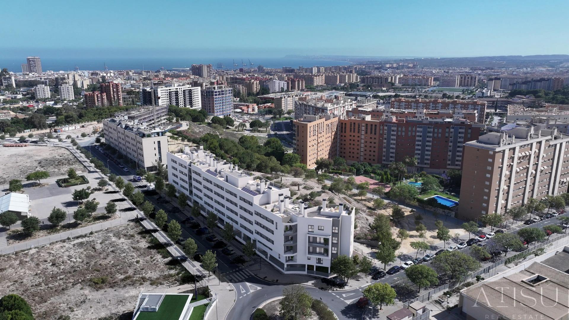 ATICO EN ALICANTE,ALICANTEAtico 4 dormitorios, 2 baños, 0 garajes, , en Alicante, Alicante Residencial de nueva construcción en Alicante, con vistas abiertas a la ciudadLa casa de sus sueños en una ubicación privilegiadaDescubra su nuevo hogar en el codiciado barrio de San Agustín de Alicante, donde la vida moderna se encuentra con paisajes pintorescos. Este exclusivo complejo residencial, situado cerca de Pau II, ofrece 47 apartamentos bellamente diseñados con 2, 3 ó 4 dormitorios. La comunidad cuenta con una piscina comunitaria, exuberantes jardines, e incluye una plaza de garaje y trastero para mayor comodidad.Servicios exclusivos para un estilo de vida confortableDisfrute de una serie de servicios diseñados para mejorar su calidad de vida. Los áticos del complejo cuentan con solariums privados accesibles directamente desde los apartamentos, que ofrecen impresionantes vistas de Alicante. Entre las comodidades adicionales se incluye un aparcamiento seguro para bicicletas, que facilita la adopción de un estilo de vida activo.Su nuevo hogar dispone de calefacción centralizada por aerotermia para una mayor eficiencia energética y confort durante todo el año, con aire acondicionado integrado (frío/calor) distribuido por conductos. La carpintería de PVC o aluminio de alta calidad con aislamiento térmico y acústico garantiza un entorno tranquilo y climáticamente eficiente.Convenientemente conectado con todo lo que necesitasSituada entre Gran Vía y Vía Parque, la promoción ofrece una excelente conectividad con el centro de la ciudad y las principales vías de comunicación como la autopista A7. La céntrica ubicación es ideal para familias y profesionales, con nueve instituciones educativas de todos los niveles muy cerca.Para las necesidades diarias, encontrará cerca cuatro grandes supermercados y el Centro Comercial Isla de Corfú, que ofrece gimnasios, restaurantes y una gran variedad de tiendas. Todo lo que necesita está a poca distancia, lo que le permite dejar su coche en casa.Un barrio rico en accesibilidad y belleza naturalEl barrio de San Agustín se asienta sobre una suave colina, ofreciendo vistas panorámicas del perfil de la ciudad, el Monte Benacantil y las montañas circundantes. El clima mediterráneo de Alicante hace que la vida al aire libre sea un placer durante todo el año, con un montón de espacios verdes y opciones de ocio cerca.Distancias clave:Centro de Alicante: 2 kmAeropuerto Alicante-Elche: 14 kmPlaya de San Juan: 6 kmCampo de golf de Alicante: 7 kmPuerto de Alicante: 5 kmExperimente lo mejor de la vida alicantinaEl excepcional clima de Alicante, su vibrante cultura y sus excelentes infraestructuras la convierten en una de las ciudades españolas más deseadas para vivir. Esta nueva promoción residencial en San Agustín combina un diseño elegante con una ubicación inmejorable, lo que la convierte en el lugar ideal para su próxima etapa.Póngase en contacto con nosotros hoy mismo para concertar una visita y hacer suya esta casa de ensueño. |
