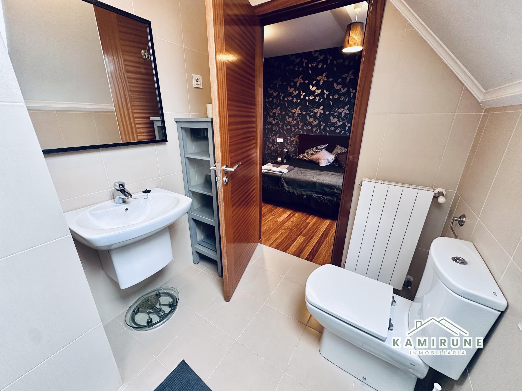 ATICO EN BIZKAIA-VIZCAYA,BILBAOAtico 2 dormitorios, 2 baños, 1 garajes, Buen estado, en Bilbao, Bizkaia-Vizcaya ¡OPORTUNIDAD CON GARAJE Y TRASTERO!Inmobiliaria KAMIRUNE vende en EXCLUSIVA ÁTICO con impresionantes vistas panorámicas a todo Bilbao, que destaca por su gran luminosidad natural en todas las estancias. Salón y habitación secundaria con orientación este y habitación principal con orientación oeste. La vivienda se ubica en un edificio moderno construido en 2008, en una planta con 2 áticos, por lo que sólo hay un vecino en planta, lo que garantiza un entorno muy tranquilo y sin ruidos.La distribución es cómoda y funcional, con dos amplias habitaciones y dos baños completos, uno de ellos en suite dentro del dormitorio principal, equipado con ducha, y un segundo baño con bañera.La vivienda se encuentra completamente amueblada, lista para entrar a vivir, y cuenta con suelos de madera de elondo, ventanas Climalit y excelentes calidades en general.La vivienda ofrece la posibilidad de adquirir, de manera opcional, una amplia plaza de garaje para coche grande y un trastero de 9 m² por un importe adicional de 35.000 , un valor añadido muy importante en la zona.Situación inmejorable, muy bien comunicada, cerca de Miribilla, del centro de Bilbao (Abando y Casco Viejo), con fácil acceso a tren y próxima a la futura estación del AVE, lo que convierte esta vivienda en una opción ideal tanto como residencia habitual como inversión.Una oportunidad única para disfrutar de un ático luminoso, moderno y con vistas privilegiadas en Bilbao.Para más información o concertar una visita, no dude en ponerse en contacto con nosotros. |