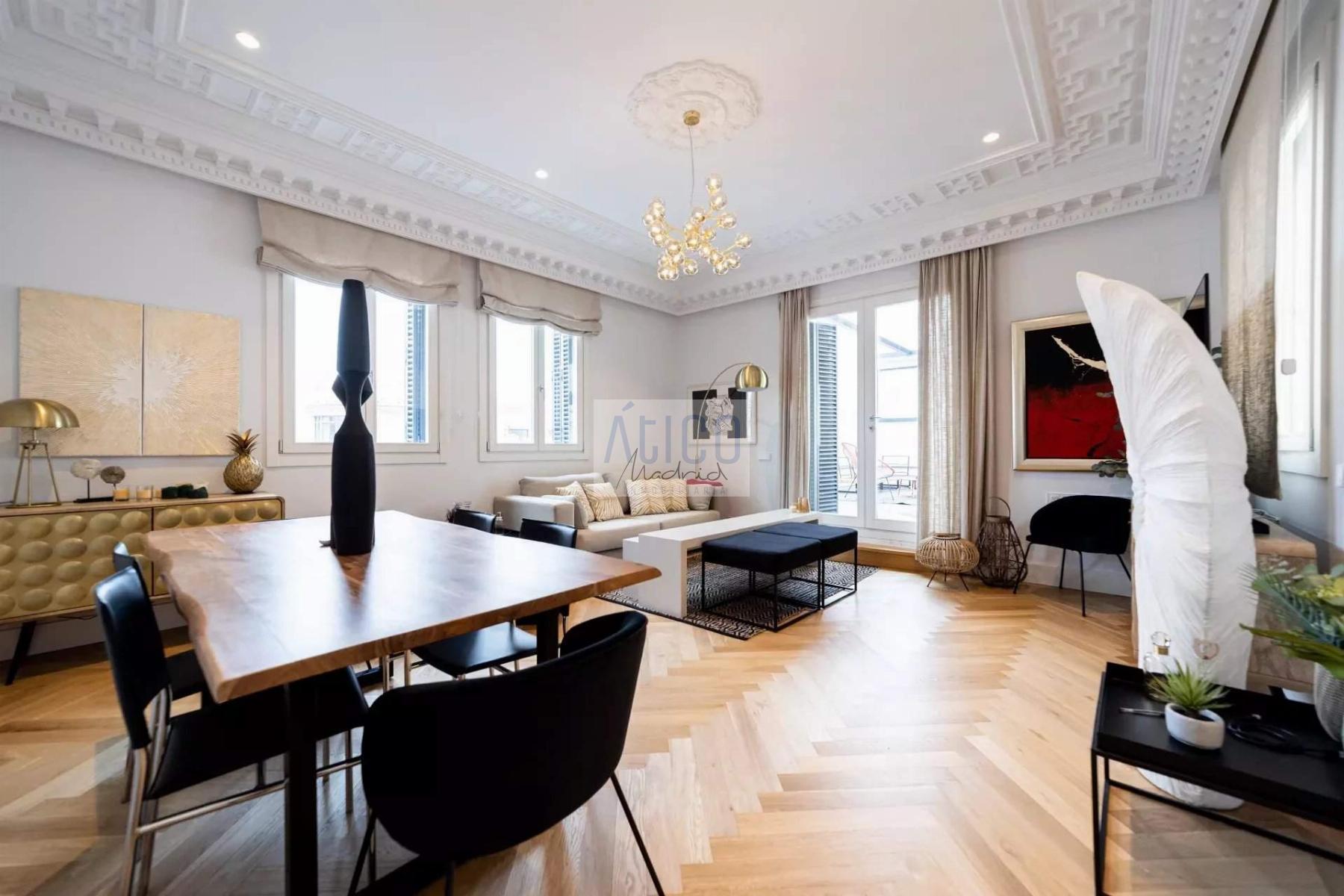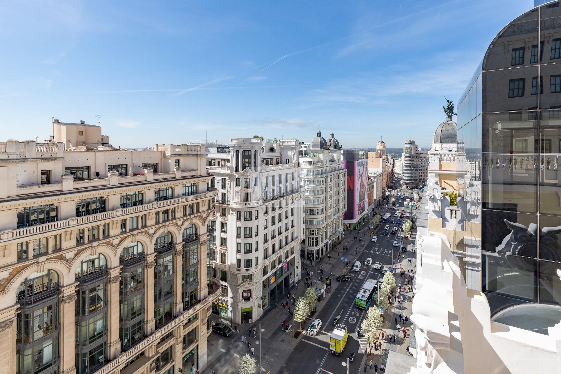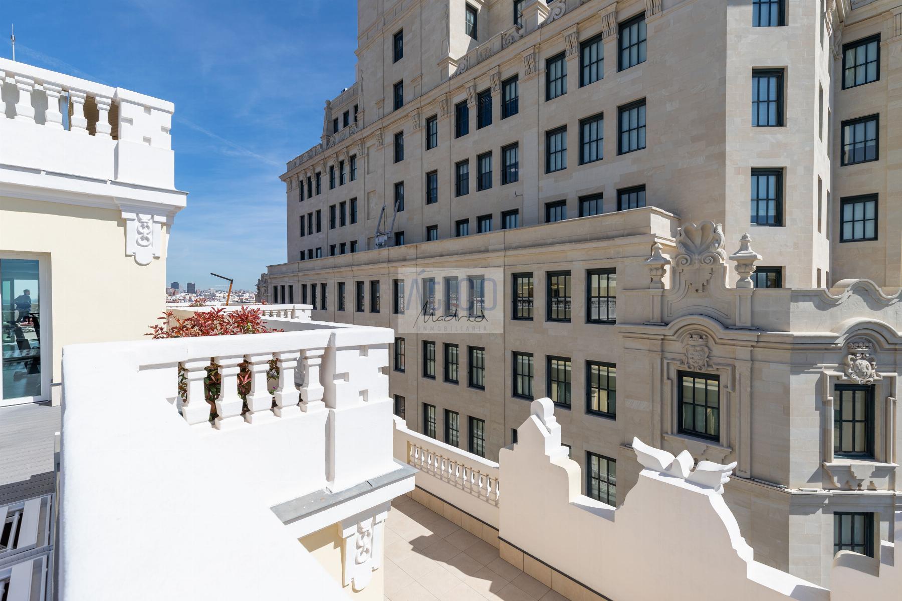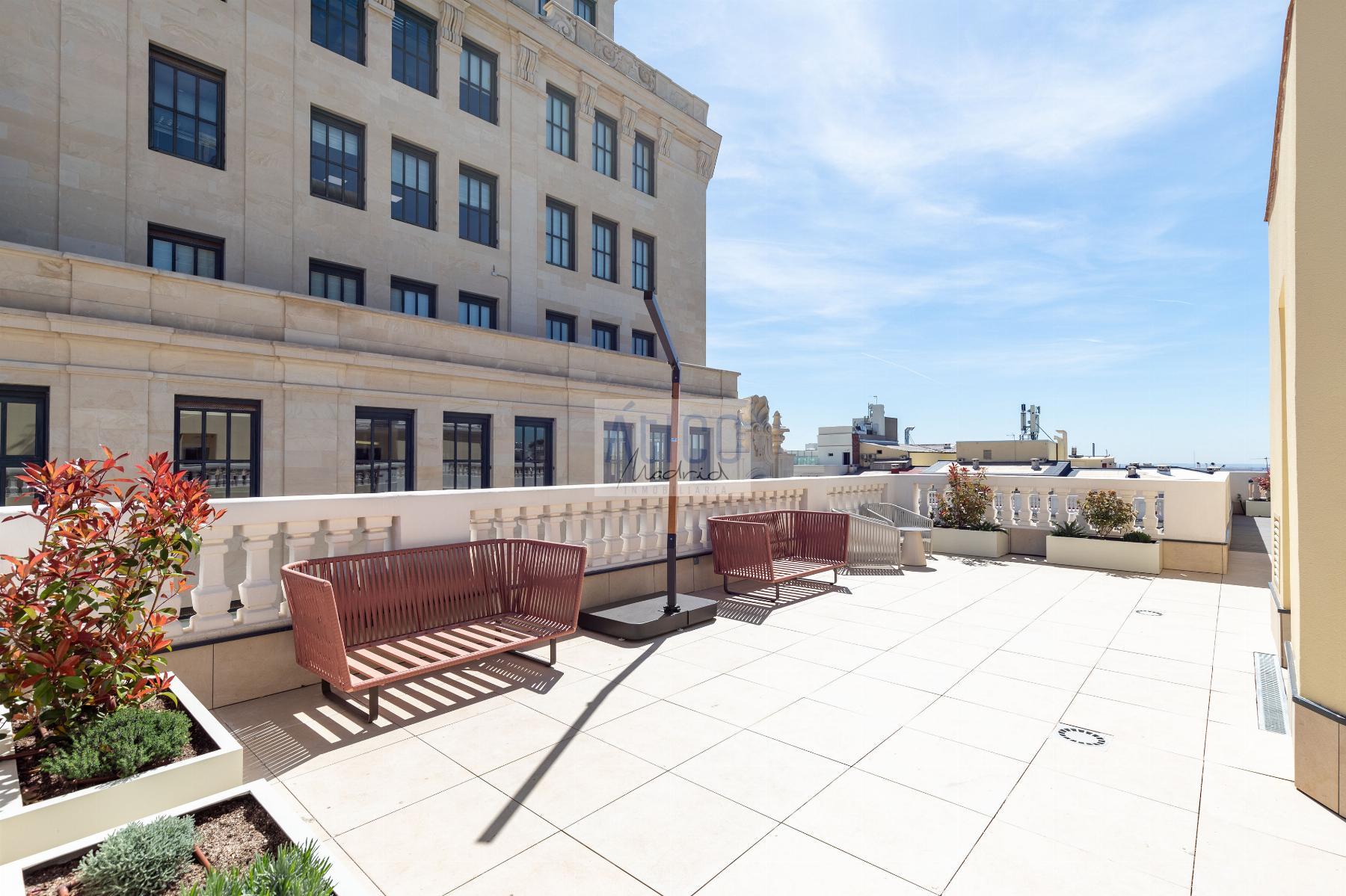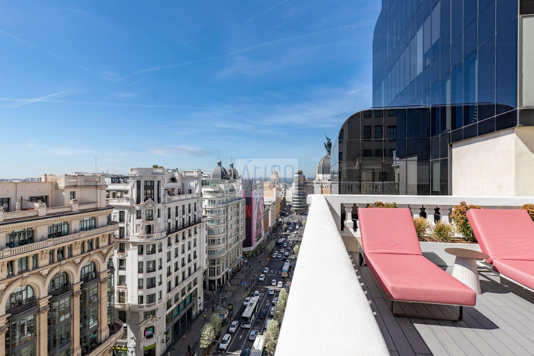 ATICO EN MADRID,MADRIDAtico 2 dormitorios, 2 baños, 0 garajes, Buen estado, en Madrid, Madrid Presume de terraza en pleno centro de Madrid, en la calle Gran Via.Una novena planta con 2 terrazas propias y también azotea comunitaria con solarium, gimnasio, ducha y zona de recibo para que disfrutes de las vistas.La vivienda está amueblada y equipada con mobiliario contemporáneo, amplio cuenta con salón-comedor.Cocina equipada con electrodomésticos y menaje.2 dormitorios dobles con baño, uno de ellos tipo suitte.2 Terrazas amuebladas.Calefacción por suelo radiante.Aire acondicionado.Todas las comodidades de un edificio de reciente restauración, conservando elementos arquitectónicos.El edificio, finalizado en 2022 por el estudio de arquitectos Rafael Robledo, se ubica en Gran Vía, una de las arterias más emblemáticas de Madrid. La finca cuenta con seguridad, conserje y videovigilancia.El barrio centro ofrece multitud de opciones culturales, gastronómica, shopping o simplemente caminar por sus calles disfrutando de sus edificios y monumentos. Muy cerca de Plaza España, Puerta del Sol, Plaza Mayor, Museo del Prado, Thyssen, Reina Sofía, Plaza Cibeles, calle Alcalá, parque del Retiro. |