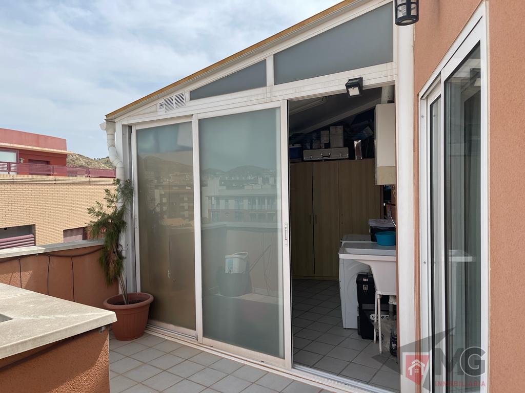 ATICO EN MURCIA,LORCAAtico 3 dormitorios, 2 baños, 1 garajes, Buen estado, en Lorca, Murcia Ático exterior con 90 metros, 3 habi. 2 baños, tiene una terraza de 104m cuadrados en la que hemos construido un lavadero y una pérgola de madera (acristalamiento cierre panorámico y parquet), con barbacoa. 5º planta con ascensor , garaje y trastero, se vende amueblado. Instalación de aire acondicionado y bomba de calor (Mitsubishi inverter), también dispone de calefacción por radiadores de Gas Natural |