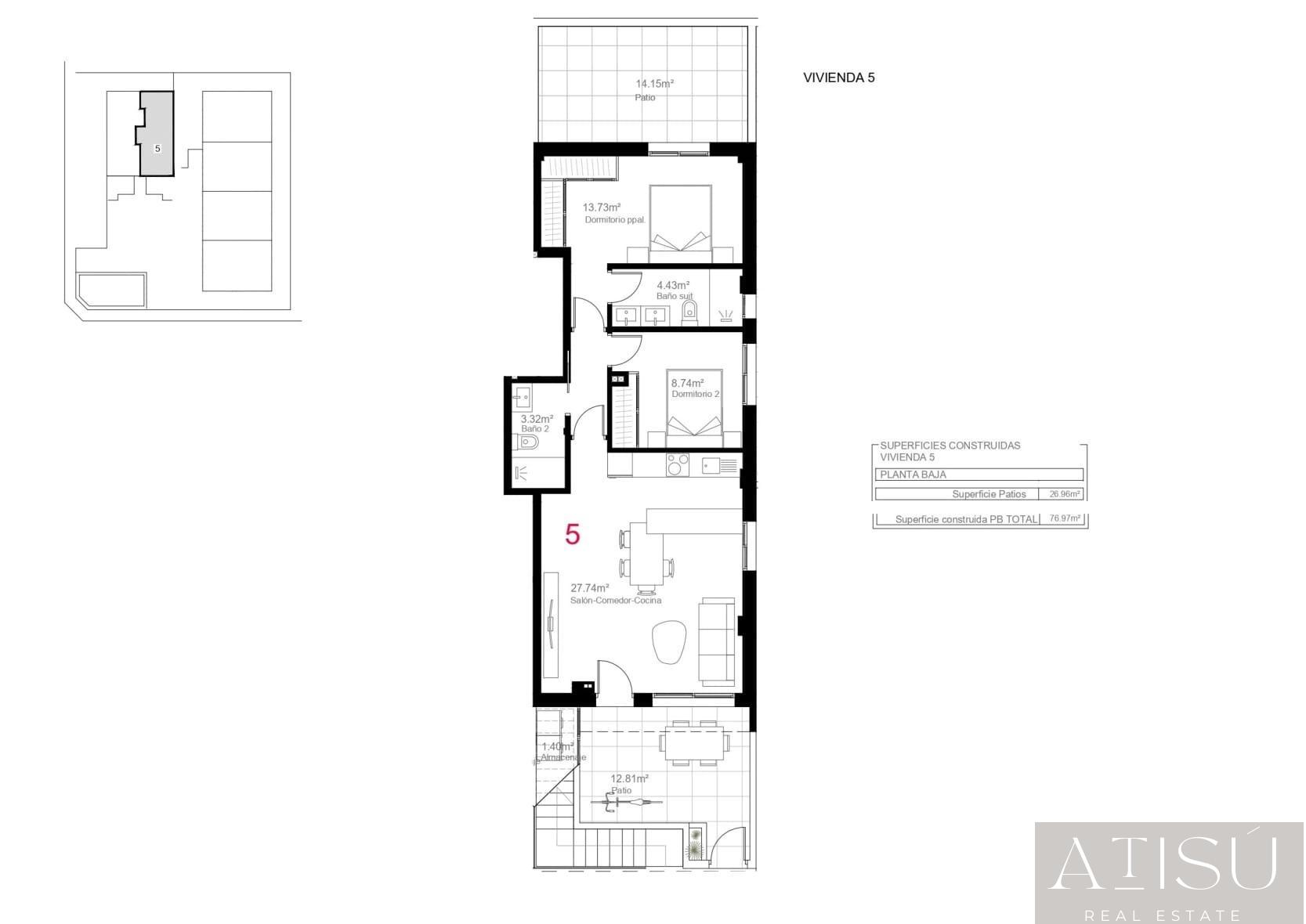 76m² útiles