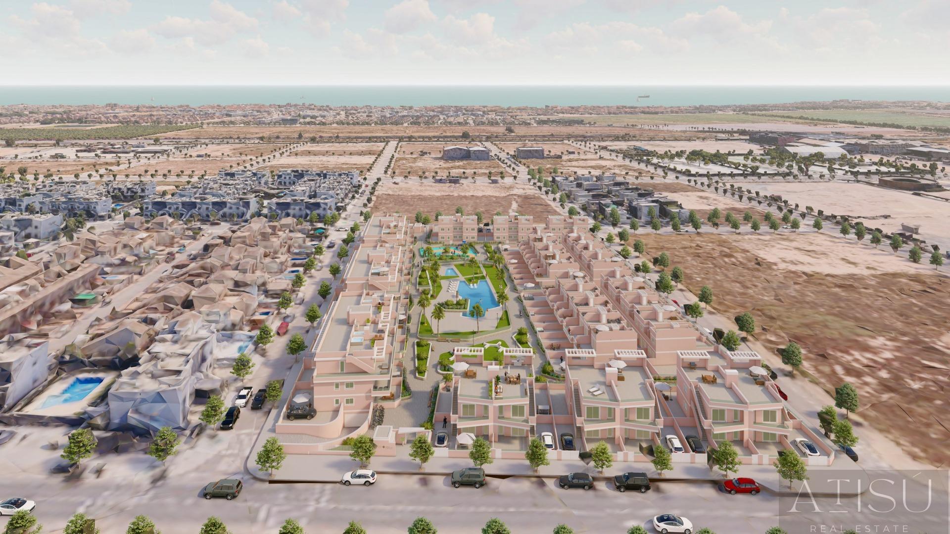 BUNGALOW EN ALICANTE,PILAR DE LA HORADADABungalow 3 dormitorios, 2 baños, 0 garajes, , en Pilar de la horadada, Alicante Exclusivo Residencial de Obra Nueva en Pilar de la Horadada, Costa BlancaViviendas Modernas Cerca del MarDescubra este nuevo complejo residencial en Pilar de la Horadada, una ubicación privilegiada en la Costa Blanca. A solo 2 km de la playa, este proyecto ofrece una amplia variedad de viviendas de 3 dormitorios y 2 baños, con aparcamiento privado incluido en el precio.El residencial cuenta con amplias zonas comunes, incluyendo una piscina comunitaria, jardines paisajísticos y una zona de juegos infantiles, ideales para el disfrute de toda la familia.Diferentes Tipologías para Adaptarse a su Estilo de VidaEsta promoción ofrece diversas opciones de vivienda:Plantas bajas con jardín privado.Apartamentos en planta intermedia con amplias terrazas.Áticos con solárium privado.Bungalows en planta baja con jardín privado.Bungalows en planta alta con jardín y solárium privado.Adosados y pareados con jardín y solárium.Todas las viviendas han sido diseñadas con un estilo moderno y funcional, utilizando materiales de alta calidad y acabados contemporáneos.Equipamiento y CalidadesLas viviendas cuentan con:Preinstalación de aire acondicionado por conductos.Carpintería exterior de aluminio con rotura de puente térmico y doble acristalamiento.Puerta de acceso acorazada para mayor seguridad.Sistema de aerotermia para producción eficiente de agua caliente.Armarios empotrados con iluminación LED.Muebles de baño y mamparas incluidos.Pilar de la Horadada: Un Lugar Privilegiado para VivirPilar de la Horadada es un municipio costero en el extremo sur de la Costa Blanca, con un clima excepcional y una excelente calidad de vida. Su animada calle principal ofrece una amplia variedad de tiendas, supermercados, restaurantes y servicios esenciales.A solo 5 minutos en coche, encontrará las impresionantes playas de Torre de la Horadada y Mil Palmeras, con arena dorada y un encantador paseo marítimo. Además, la zona cuenta con carriles bici, rutas de senderismo y múltiples actividades deportivas.Distancias a Puntos ClaveCampo de golf Lo Romero 5 km (10 minutos en coche).Aeropuerto de Corvera (Murcia) 40 km (40 minutos en coche).Aeropuerto de Alicante 55 km (55 minutos en coche).Centro Comercial Zenia Boulevard 15 km (15 minutos en coche).Puerto Deportivo Torre de la Horadada 3 km (5 minutos en coche).Solicite Más Información Hoy MismoNo deje pasar esta oportunidad de adquirir una vivienda de obra nueva en una de las mejores zonas de la Costa Blanca. Contáctenos ahora para recibir más detalles y concertar una visita. |