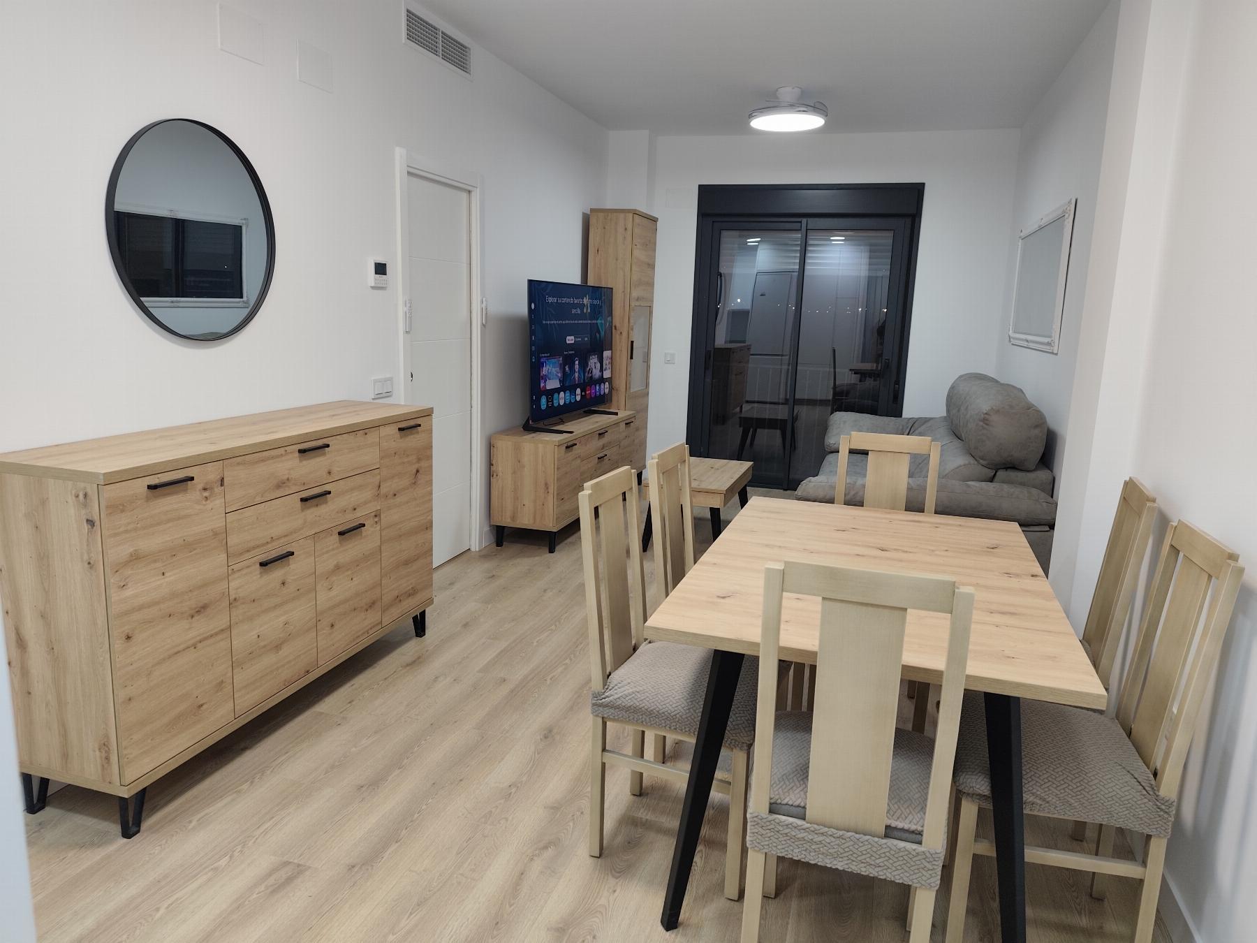 Piso 2 dormitorios, 2 baños, 1 garajes, Nuevo, en Camas, Sevilla NO COBRAMOS COMISIÓN AL CLIENTE. PRECIOSO PISO CON PISCINA y TERRAZA COMUNITARIA Y APARCAMIENTO EN SUPERFICIELOCALIZACIÓN: Junto al polideportivo, en zona de expansión y desarrollo, DONDE EMPEZAR UN NUEVO PROYECTO DE VIDA. Salida rápida a Sevilla capital, apenas 10 minutos del centro de la ciudad. CARACTERÍSTICAS: Piso AMUEBLADO de 74 m2 construidos, (66 m2 útiles), encontránd..onos en la entrada a parte de de su recibidor, un amplio salón-comedor con salida a balcón exterior, cocina con electrodomésticos de buena gama, a destacar muebles blancos con cajoneras, encimera de granito negro de grandes dimensiones y doble seno, paredes alicatadas, lavavajillas, lavadora-secadora LG, frigorífico Samsung, etc. Salón con mucha luz y salida a una pequeña terraza exterior con increíbles vistas a Sevilla. VIVIENDA AMUEBLADA Y EQUIPADA: Mobiliario y equipamiento excelente, en mayor parte a estrenar. Sofá de tres plazas TV Samsung QLED de 65 ´ Mueble bajo de televisión Columna de salón con vitrina central Espejo de grandes dimensiones Mesa de comedor de 140 cm extensible con seis sillas de madera Aparador Baños: Uno con ducha y otro con bañera en el dormitorio principal.CARACTERÍSTICAS Y EQUIPAMIENTO: Climatización frío/calor Agua caliente por aerotermia Iluminación LED en toda la vivienda, con posibilidad de regular la tonalidad en las principales estancias. 3 ventiladores de techo con luz y aspas plegables Suelo de tarima laminada Carpinteria exterior con aislamiento térmico y sonoro. Puerta de seguridad con acceso a la viviendaVideoporteroCONJUNTO RESIDENCIAL: Piscina comunitaria Area Infantil Espacio habilitado para bicicletasESPACIO Y COMUNICACIONES: A 5 Km al centro de Sevilla capital, tiempo estimado de unos 10 minutos. Rodeado del polideportivo, centros educativos, transportes, comercios, etc. CONDICIONES DEL ALQUILER: Máximo 3 personas Mes de renta + mes de fianza + (mes de la inmobiliaria para alquiler de 11 meses) . Para alquiler de 5 años ( año a año prorrogables hasta 5 años) - NO SE ABONA HONORARIOS por parte del futuro inquilino/a tal y como establece la Ley de Vivienda. (ley 12/2023) SE REALIZARÁ ESTUDIO DE SOLVENCIA NO MASCOTAS POSIBILIDAD DE GESTIONARLE LOS SUMINISTROS GRATIS.EL/LA INQUILINO/A debe contratar un seguro de CONTENIDO de la vivienda. Leer mas >>
