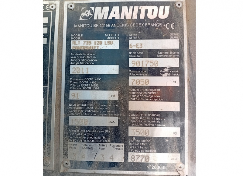 CARRETILLA TELESCÓPICA MANITOU MLT 735 MATRICULADA.CARRETILLA TELESCÓPICA MANITOU MLT 735 MATRICULADA. ¡¡¡ ATENCION !!! LLEVA ROTAS LAS DOS ELECTROVÁLVULAS DEL CAMBIO. – Fabricada en 2.011. – Brazo telescópico de 7 m. – Matriculada. – Aire acondicionado. Carretilla telescópica o manipulador telescópico con averia de eletroválvulas. También tenemos mas tractores y maquinaria que puedes verlos en nuestra web: ***** WWW.CASASYCOCHES.ES **** PARA MAS INFORMACIÓN LLAMAR AL 610436457 – Diego. |