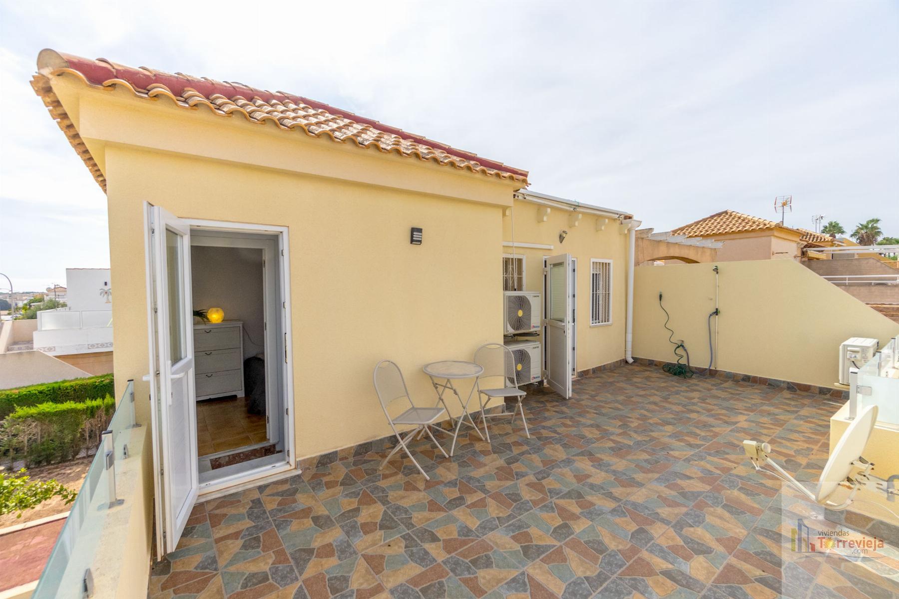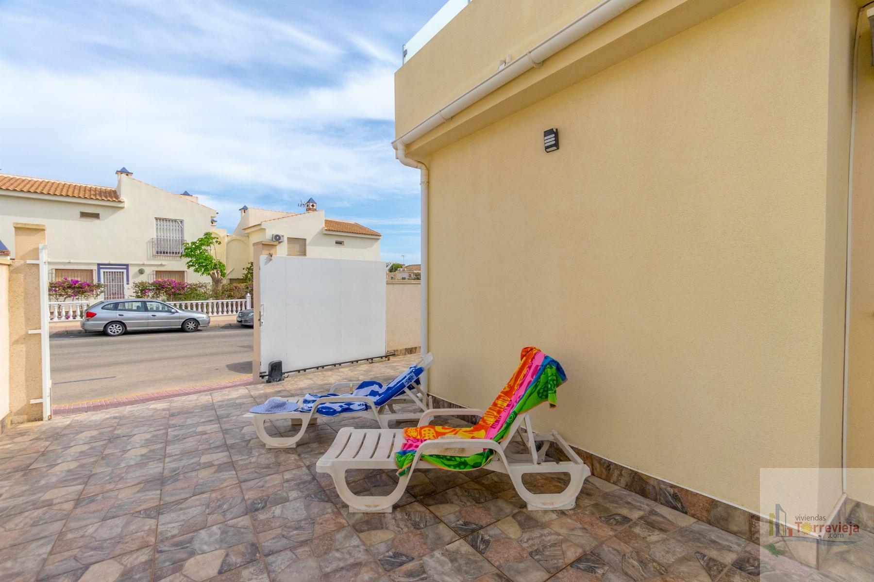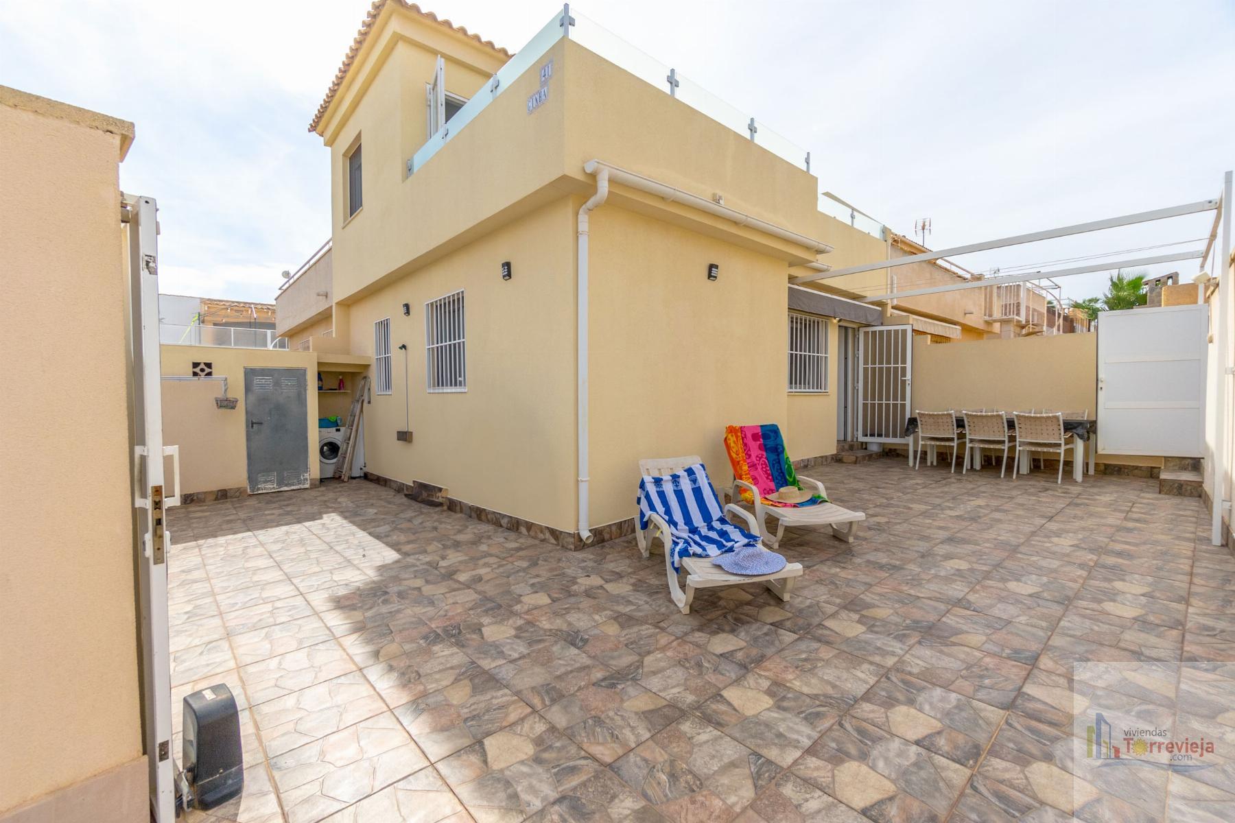 CASA EN ALICANTE,TORREVIEJACasa 3 dormitorios, 2 baños, 1 garajes, Buen estado, en Torrevieja, Alicante ¡Presentamos este magnífico chalet renovado en Los Altos de Torrevieja! Ideal para quienes buscan comodidad y una ubicación estratégica, esta vivienda se encuentra cerca del colegio, lo que la convierte en una excelente opción para familias. Con 3 dormitorios y 2 baños, ofrece un diseño práctico y funcional. En la planta baja, encontrarás un dormitorio perfecto para aquellos que prefieren evitar escaleras, además de un amplio espacio exterior donde podrás disfrutar de comidas al aire libre y aparcar tu coche cómodamente.En la planta superior, hay dos luminosos dormitorios, ambos con acceso directo a un solárium donde podrás relajarte y disfrutar del clima. La propiedad forma parte de un residencial con piscina comunitaria, ideal para disfrutar en los días soleados.¡No pierdas la oportunidad de vivir en una de las mejores zonas de Torrevieja con todos los servicios cerca! |