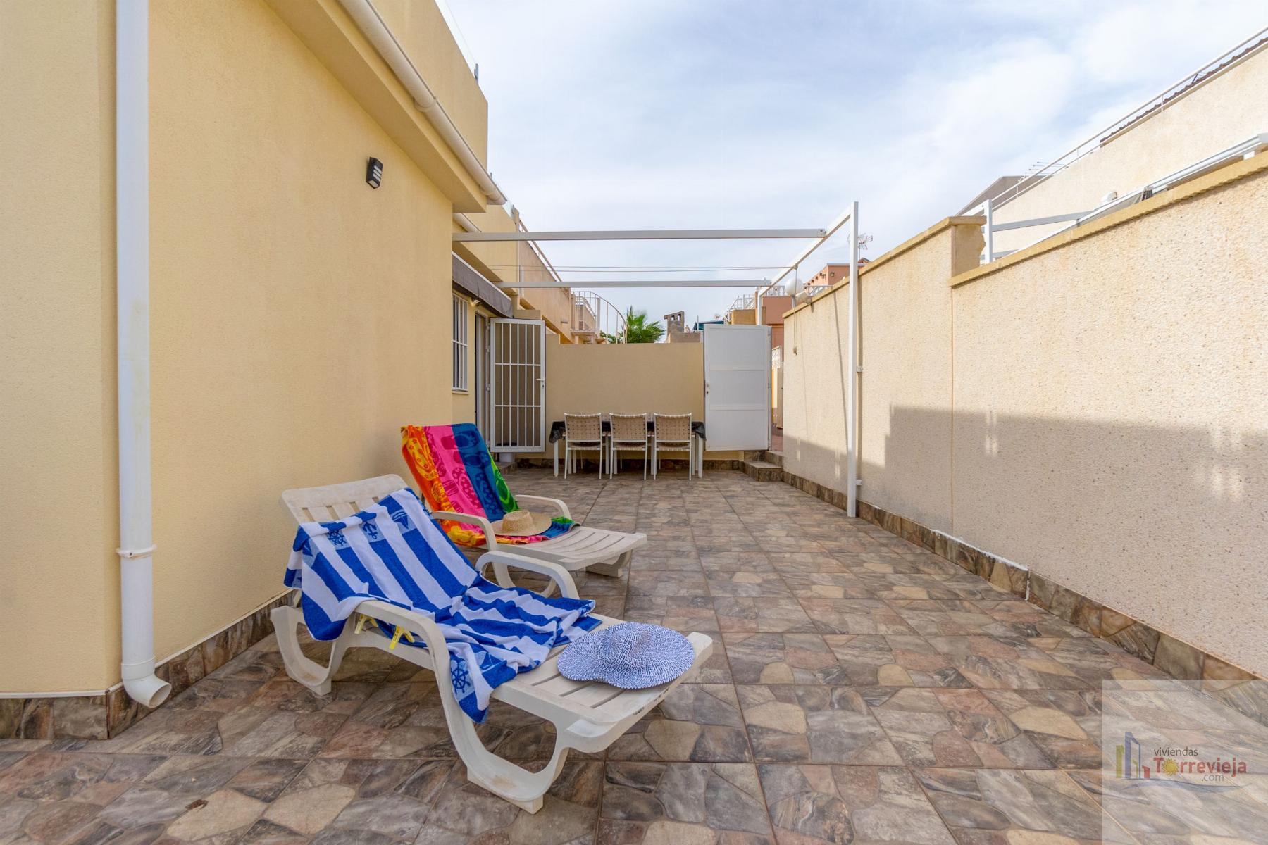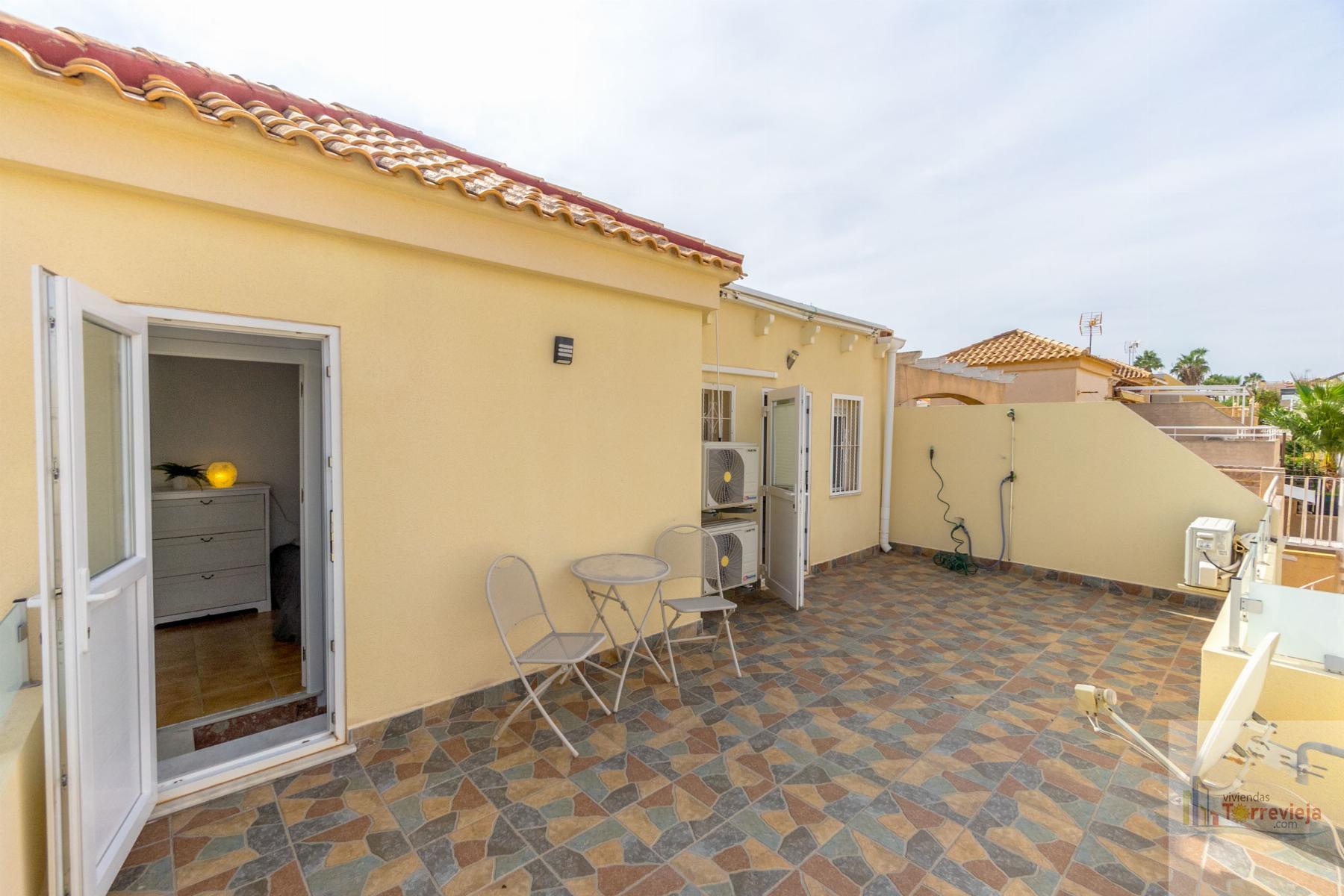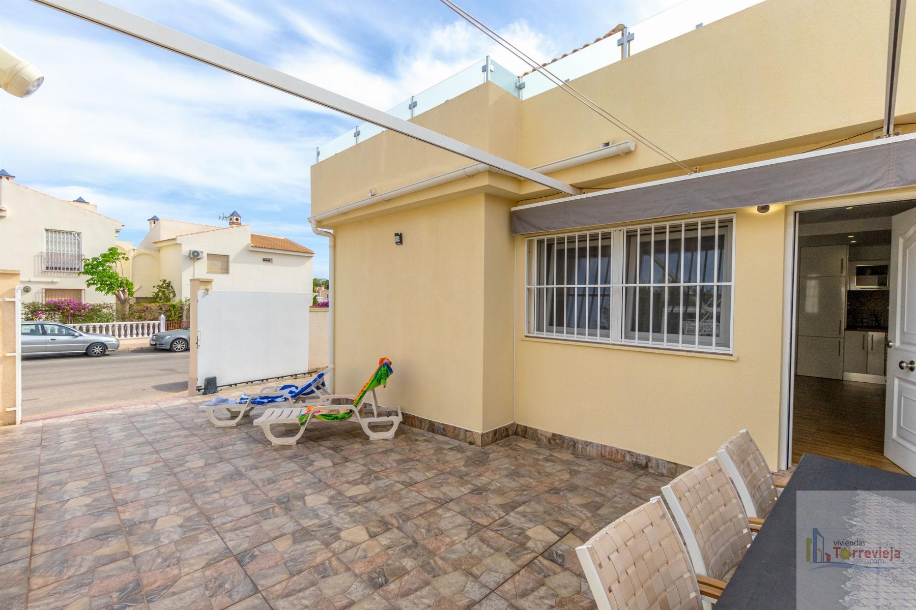 CASA EN ALICANTE,TORREVIEJACasa 3 dormitorios, 2 baños, 1 garajes, Buen estado, en Torrevieja, Alicante ¡Presentamos este magnífico chalet renovado en Los Altos de Torrevieja! Ideal para quienes buscan comodidad y una ubicación estratégica, esta vivienda se encuentra cerca del colegio, lo que la convierte en una excelente opción para familias. Con 3 dormitorios y 2 baños, ofrece un diseño práctico y funcional. En la planta baja, encontrarás un dormitorio perfecto para aquellos que prefieren evitar escaleras, además de un amplio espacio exterior donde podrás disfrutar de comidas al aire libre y aparcar tu coche cómodamente.En la planta superior, hay dos luminosos dormitorios, ambos con acceso directo a un solárium donde podrás relajarte y disfrutar del clima. La propiedad forma parte de un residencial con piscina comunitaria, ideal para disfrutar en los días soleados.¡No pierdas la oportunidad de vivir en una de las mejores zonas de Torrevieja con todos los servicios cerca! |