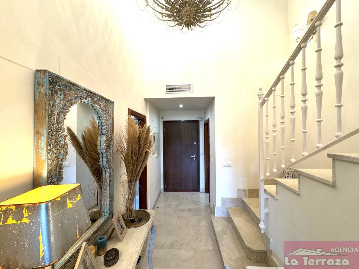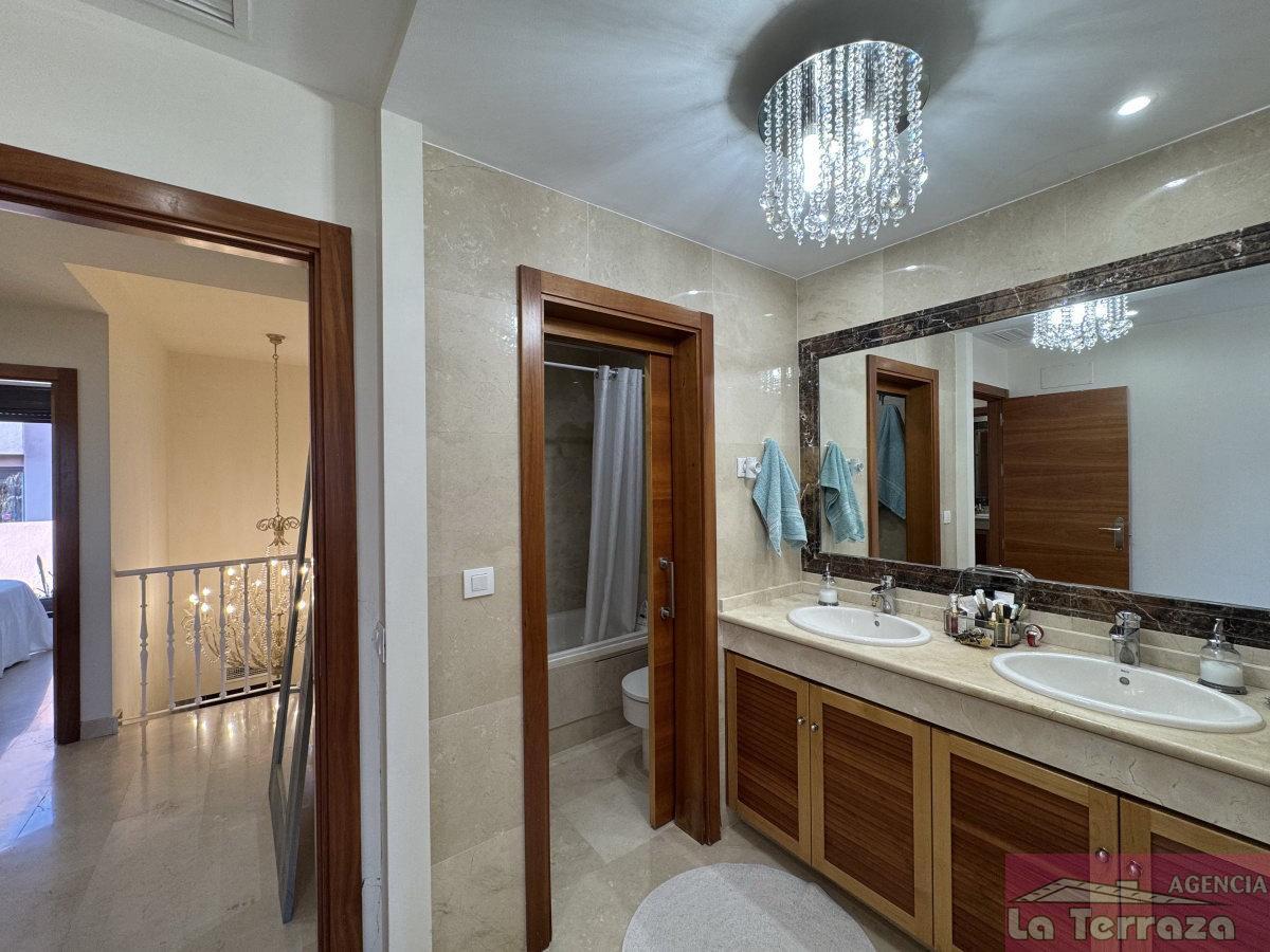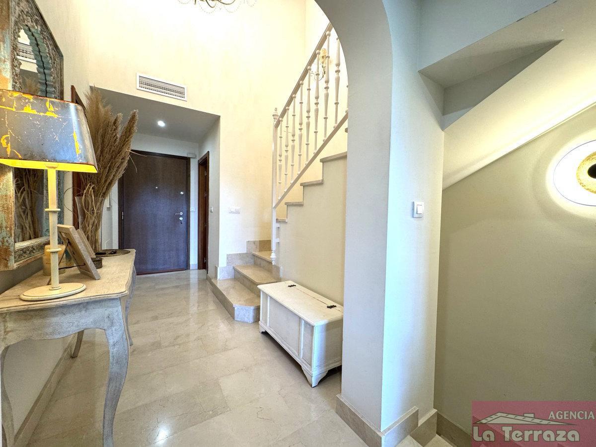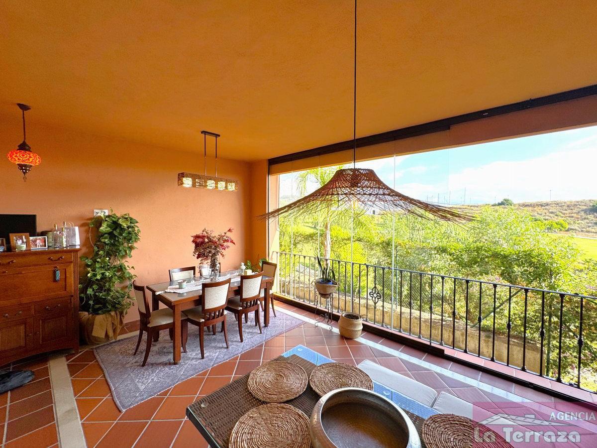 CASA EN MáLAGA,ESTEPONACasa 3 dormitorios, 2 baños, 1 garajes, Buen estado, en Estepona, Málaga La vivienda se levanta sobre tres plantas en total. En la planta sótano encontramos una amplia zona de aparcamiento con capacidad para un vehículo, además de espacio para moto, bicicletas y almacenamiento a modo de trastero. Al acceder a la planta principal, un elegante hall de entrada con techos altos da la bienvenida a la casa, con un aseo de cortesía, la cocina independiente situada a la derecha y las escaleras que conducen a la planta superior. Al fondo, un salón de generosas dimensiones presidido por una acogedora chimenea conecta directamente con la terraza, desde donde se disfrutan unas magníficas vistas abiertas al campo de golf de Azata. Esta terraza ha sido cerrada con cortinas de cristal, lo que permite aprovecharla durante todo el año como un espacio extra de confort y relax. En la planta alta se distribuye la zona de descanso con dormitorios luminosos y bien orientados: dos de ellos, al igual que el salón, se orientan al sureste, permitiendo contemplar espectaculares amaneceres, mientras que el tercer dormitorio y la cocina miran hacia el oeste, disfrutando también de la agradable luz del sol de tarde. Otras calidades: suelos radiantes en baño, puerta de entrada acorazada y bañera con hidromasaje en baño del dormitorio.La urbanización es especialmente tranquila y está rodeada de cuidados jardines, con dos zonas de piscina y agradables miradores hacia el golf que aportan un entorno natural y relajante.En definitiva, se trata de una vivienda que reúne todas las condiciones para convertirse en su próximo hogar: espacio, comodidad, orientación privilegiada y unas vistas únicas al golf.No deje escapar esta oportunidad de adquirir un adosado impecable en una de las mejores zonas residenciales de Estepona. |