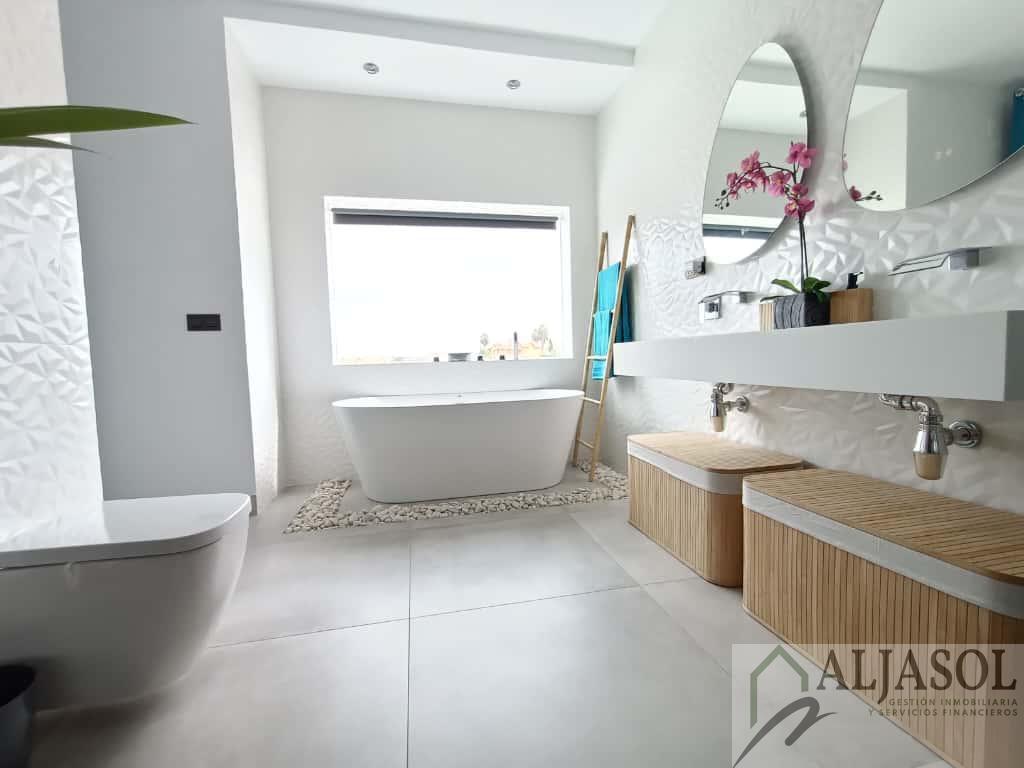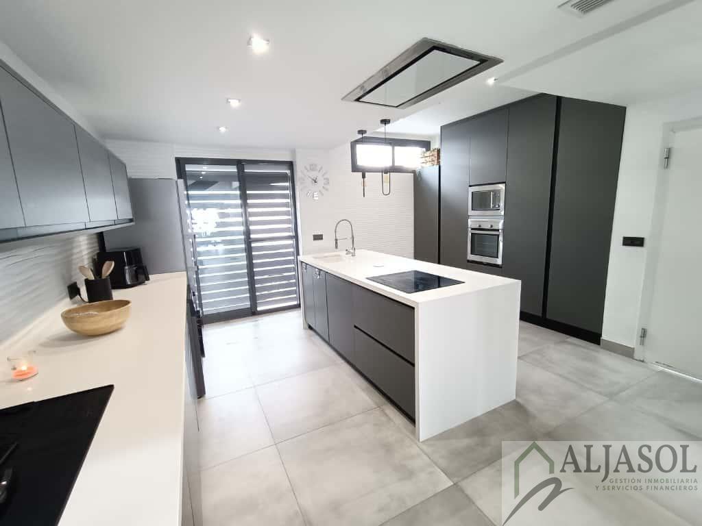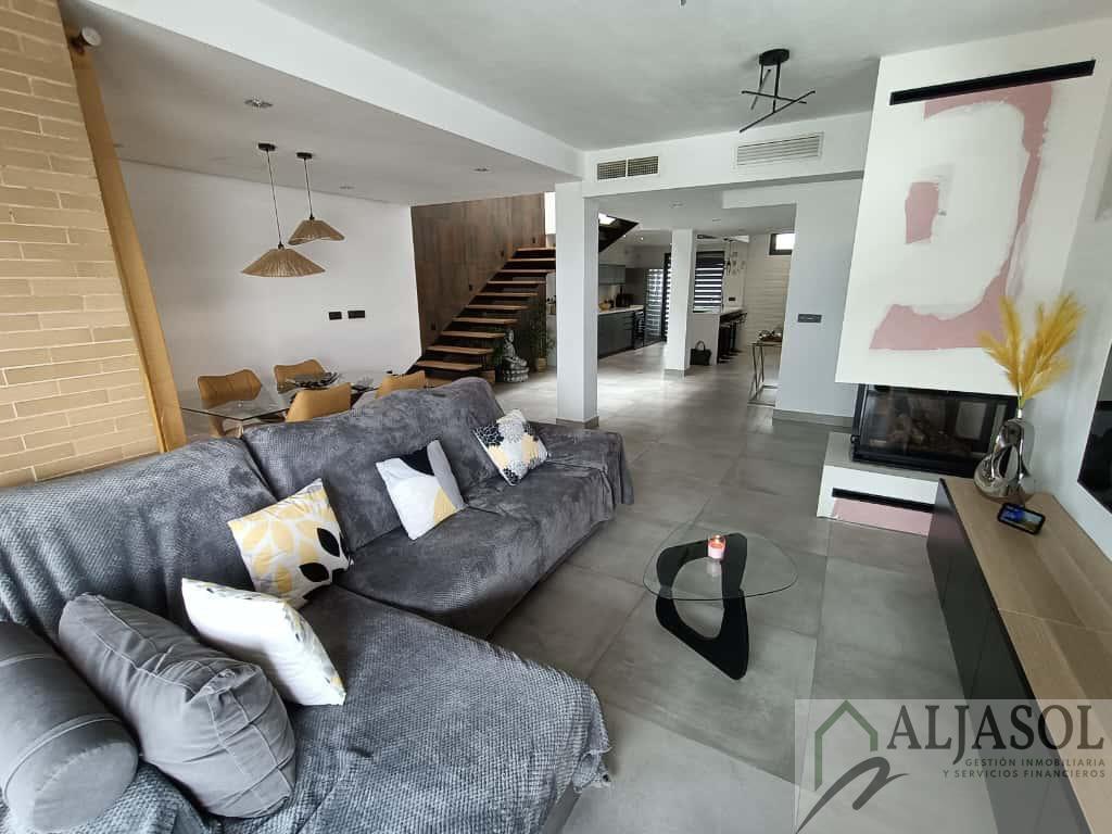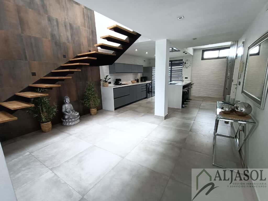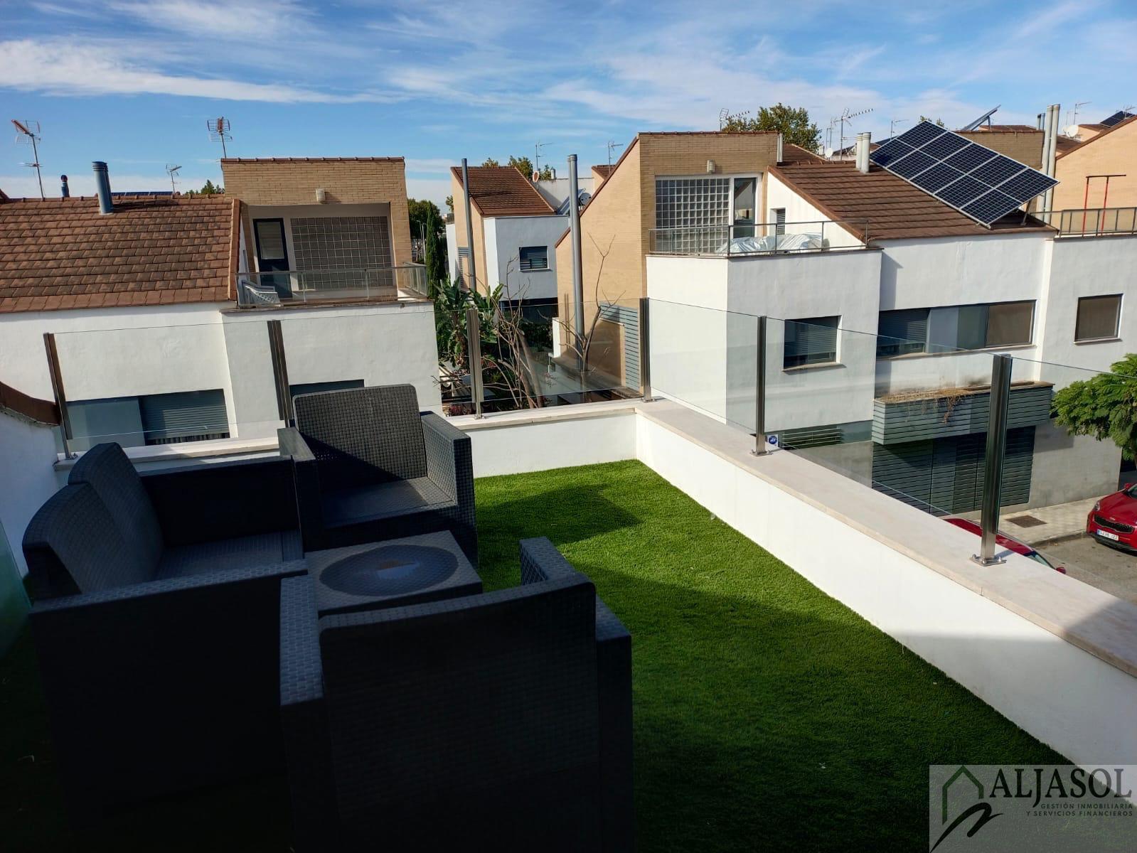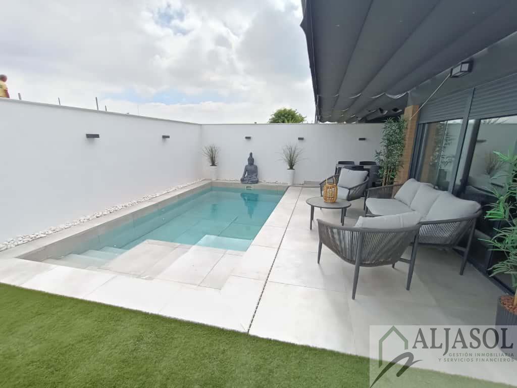CASA PAREADO EN SEVILLA,ESPARTINASCasa Pareado, 4 dormitorios, 3 baños, 1 garajes, Reformado, en Espartinas, Sevilla Ref: 2756 Aljasol vendeEspectacular chalet pareado de diseño moderno, construido en 2007 y reformado íntegramente en 2024, situado en una de las zonas más demandadas de Espartinas, con excelentes comunicaciones y todos los servicios a un paso.La vivienda cuenta con 183 m² construidos, 168 m² útiles, distribuidos en tres plantas, sobre una parcela de 191 m² con piscina privada de 3x7 m.Distribución y características principales:4 dormitorios3 baños completosAparcamiento privado con puerta independiente2 trasterosPorche trasero con pérgola y toldosPiscina privada con iluminación LED, escalera romana, banco integrado y depuradora automatizadaJardín con césped artificial y barbacoa integradaCalidades y equipamiento:Suelos porcelánicos en tonos ocresVentanas de aluminio Climalit lacadas en gris antracita (RAL 7016), con mosquiteras y persianas de aluminioPuerta de entrada de seguridadPuertas interiores lacadas en gris antracitaEscalera voladiza de madera con iluminación integradaClimatización centralizada frío/calor por plantasChimenea de diseño con casete en el salónEnergía solar térmica (300 L + apoyo eléctrico 75 L)Placas fotovoltaicas con bateríaIluminación LED en toda la vivienda, luces regulables y control por vozPersianas eléctricas en el salónArmarios empotrados y altillos totalmente revestidosPlanta baja:Amplio recibidor con espectacular patio de luz interior, cocina office de diseño totalmente equipada con:Encimera Silestone blancaMobiliario en gris antracita mate con uñerosIsla central con zona de relaxElectrodomésticos Beko inox antihuellas (lavavajillas integrado, horno, microondas, inducción y campana de techo)Baño completo con ducha y ventilación natural, y luminoso salón-comedor con chimenea, con acceso directo al jardín y piscina.Planta primera:Dormitorio principal con vestidor, terraza y baño en suite con bañera exenta, ducha y lavabo doble de resina2 dormitorios adicionales con armarios empotradosSegundo baño completo con ducha, lavabo doble y ventilación naturalPlanta tercera:Dormitorio con acceso a una gran terraza privada, equipada con césped artificial, barandillas de cristal, castillete de cristal, ventanas correderas, toma de agua y luz independiente. Dispone además de dos buhardillas completamente acondicionadas.Ubicación inmejorable:Zona tranquila y residencial de Espartinas, junto a supermercados, colegios, restaurantes, transporte público y con rápido acceso a la A-49 y futura SE-40. A pocos kilómetros de Sevilla capital.Una vivienda exclusiva, luminosa y lista para entrar a vivir, ideal para quienes buscan confort, diseño y calidad de vida.Si desea ampliar la información o concertar una visita, puede ponerse en contacto con el anunciante o agente inmobiliario responsable de la gestión.Gastos de Notaria, Registro, Honorarios de agencia e Impuestos no incluidos en el precio.F. I. A. (Ficha Informativa Abreviada), a disposición del consumidor. |