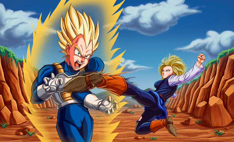 Se trata de una Impresión de alta calidad de Vegeta y el Androide 18, en una escena que están luchando. Se imprime en una lona de alta calidad. Incluye bastidor de madera para poder colgar el dibujo en la pared. Tamaño 50x30 cm. Tengo otras imágenes de Bola de Dragon en otros tamaños. Pida información sin compromiso!