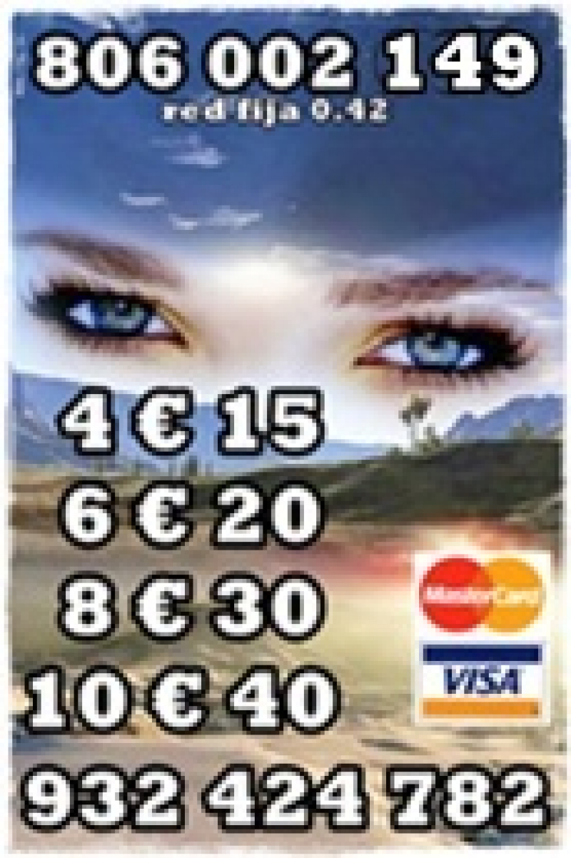 Te sientes sola ó solo? Quieres recuperar a tu pareja? Problemas en tu trabajo o negocio? Despejamos y resolvemos tus dudas de una forma clara y directa, no importa cual sea tu pregunta, te diremos lo que vemos y lo que nos transmiten las cartas, estas reflejan verdades y realidades que nos ayudan a elegir el mejor camino. Nuestros clientes nos avalan, llámanos gratis y te ayudaremos a encontrar esa felicidad que tanto anhelas. Llamada directa con vidente tarotista al 806499566 las 24 horas.