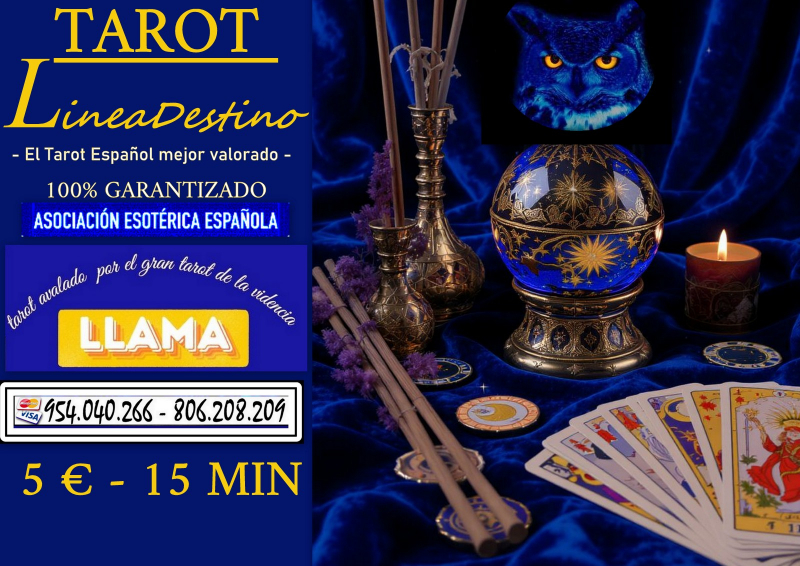 Lineadestino ofrece como siempre la mejor videncia al mejor precio. tarot lineadestino , el tarot mas consultado, líder en aciertos y videncia . Avalados por la asociación esotérica Española Somos el único tarot Español que garantiza los aciertos 100% Contamos con grandes videntes de renombre de gran capacidad adivinatoria, las médiums mas sensitivas, avaladas por sus conexiones extrasensoriales, tarotistas altamente cualificadas. En Lineadestino solo seleccionamos lo mejor de lo mejor pa..ra ofrecerte calidad, veracidad y compromiso. Si no crees en el tarot llámanos cambiaras de opinión. Lama al 95.404.02.66 servicio por visa, 15 minutos 5 euros 30 minutos 9 euros o al 806.208.209 tiene un precio máximo del minuto 0,91cts red fija.Leer mas >>