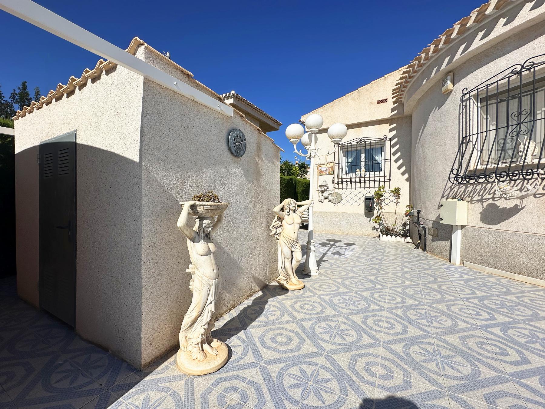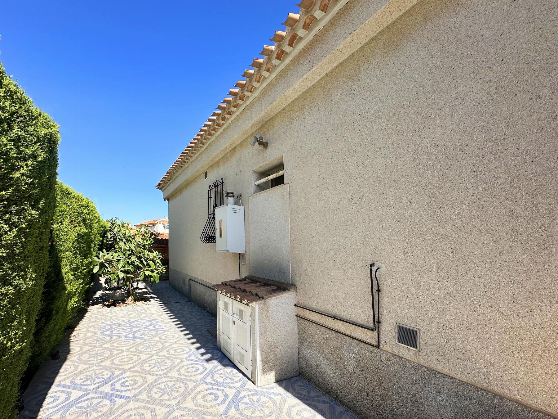 CHALET EN ALICANTE,ORIHUELA COSTAChalet 3 dormitorios, 2 baños, 0 garajes, Buen estado, en Orihuela Costa, Alicante Tu sueño de una casa totalmente amueblada y lista para entrar a vivir, rodeada de la belleza de Playa Flamenca - Orihuela Costa, está a punto de hacerse realidad. ¡No dejes pasar esta oportunidad perfecta!Esta villa de estilo mediterráneo ofrece el mejor estilo de vida costero, situada a solo unos minutos de las doradas playas del Mediterráneo, del prestigioso campo de golf de Villamartín y del famoso bulevar de La Zenia. Orihuela Costa lo tiene todo: relajación, aventura o una mezcla de ambas cosas.Esta casa familiar de estilo mediterráneo ha sido meticulosamente diseñada para su comodidad y cuenta con acabados de alta calidad y todas las comodidades modernas esenciales. Tiene todo lo que necesita para una mudanza sin complicaciones.Esta impresionante villa de lujo, hecha a medida y totalmente amueblada, con piscina de agua salina climatizada, ofrece el mejor estilo de vida en un entorno privilegiado.Nada más entrar, le recibirá un ambiente luminoso y acogedor gracias a su orientación sur, que permite que la luz natural inunde cada rincón. La villa está convenientemente situada en una sola planta y cuenta con tres amplios dormitorios dobles, perfectos para descansar y relajarse, así como dos baños con ducha a ras de suelo. La suite principal, con un armario empotrado de pared a pared y baño en suite, ofrece un toque de sofisticación, incluyendo calefacción por suelo radiante para mayor comodidad.La cocina independiente, totalmente equipada con acabados de alta calidad, es un sueño para los amantes de la gastronomía y se comunica perfectamente con el comedor, creando el espacio ideal para compartir momentos con la familia y los amigos.Desde el amplio salón y la zona de estar panorámica, con una mesa de billar y una mesa de comedor a medida, y una nevera-congelador de tamaño americano, se puede disfrutar de una encantadora vista de la piscina y el jardín. Esta villa también incluye muchos extras y una serie de comodidades excepcionales: aire acondicionado por conductos para un confort personalizado, armarios empotrados que optimizan el espacio y, además, en el jardín trasero, para un almacenamiento adicional, se puede disfrutar de un práctico cobertizo para mayor comodidad.Disfrute de las instalaciones perfectas para relajarse y mantenerse activo. La ubicación es inmejorable, a solo 1,8 km de la playa y rodeada de servicios como centros comerciales, médicos, colegios y parques, lo que la convierte en el lugar ideal para vivir. |