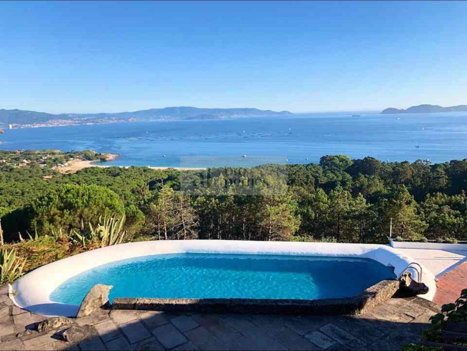 CHALET EN PONTEVEDRA,CANGASChalet 5 dormitorios, 5 baños, 4 garajes, Buen estado, en Cangas, Pontevedra AF Properties, comercializa en exclusiva esta Espectacular propiedad en las Rías Bajas.Situada a escasos metros de las mejores playas de la comarca del Morrazo.Vistas Panorámicas de 180 grados sobre la Ría de Vigo e Islas Cíes.Finca de 10.000m2.Casona de 500 m2 en una planta.Gran salón comedor a dos alturas con salida directa al jardín.Cocina office.Cuatro dormitorios dobles y uno de servicio.Cinco cuartos de baño.Porche cubierto y piscina panorámica sobre la Ría.Situación unica. |