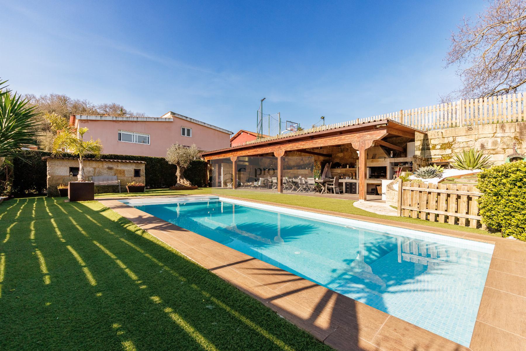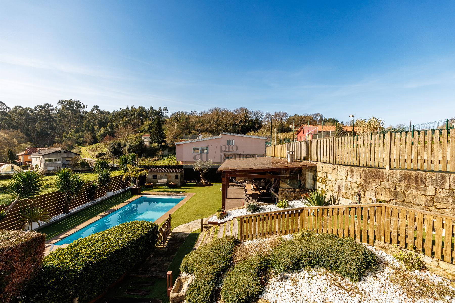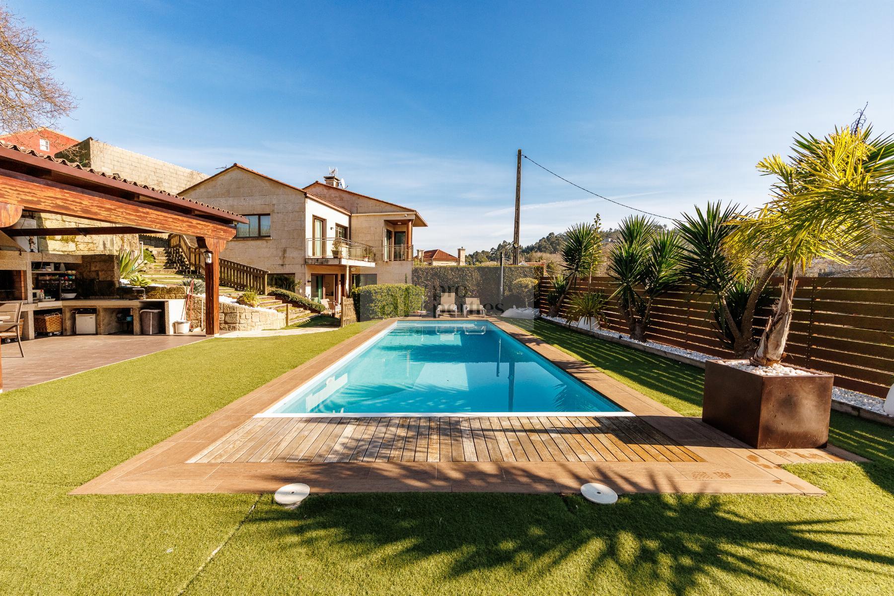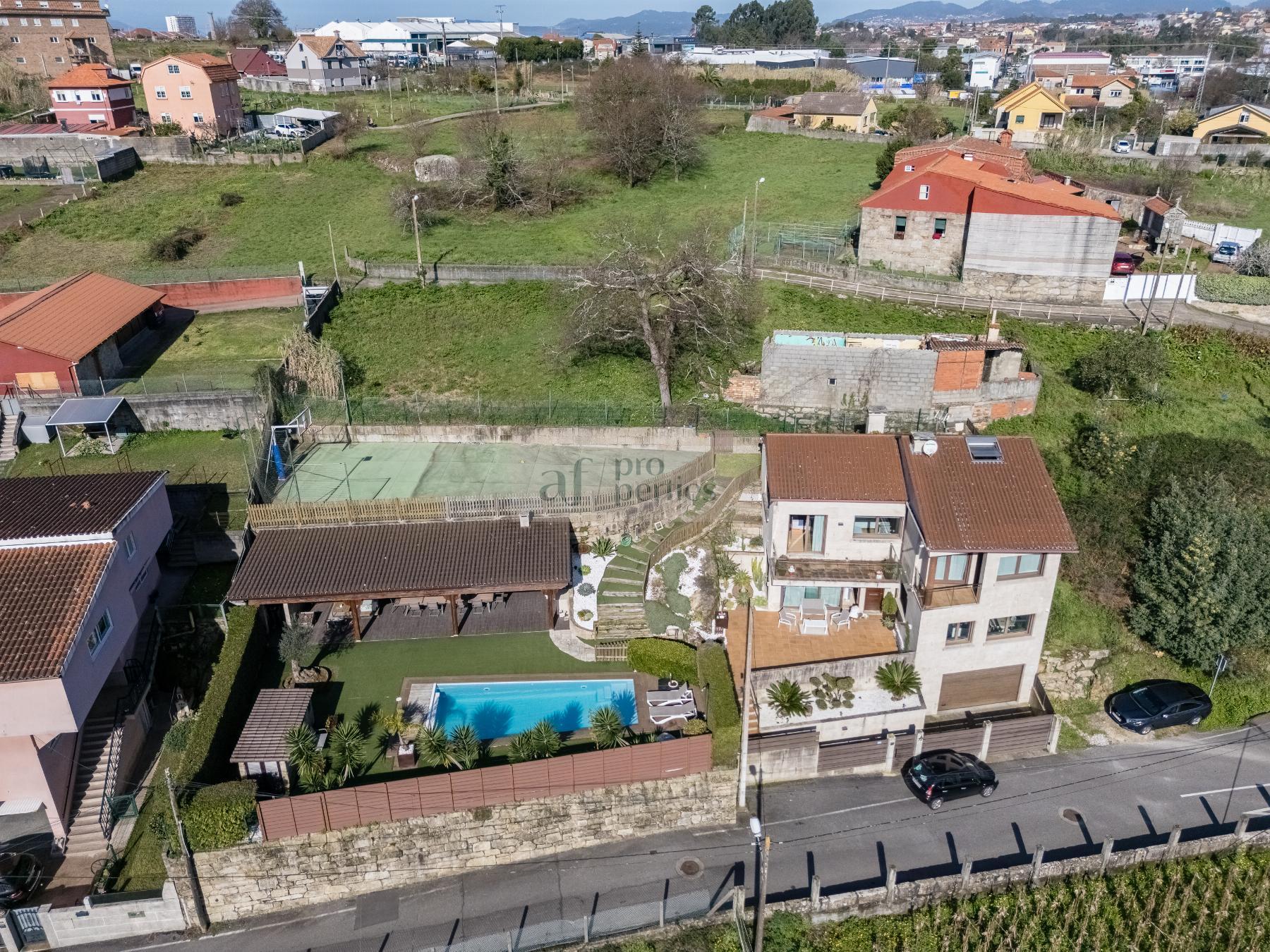 CHALET EN PONTEVEDRA,VIGOChalet 4 dormitorios, 4 baños, 4 garajes, Seminuevo, en Vigo, Pontevedra AF Properties comercializa en Exclusiva esta magnífica VILLA SEMI NUEVA DE ESTILO CONTEMPORANEO.La vivienda se distribuye de la siguiente forma:PLANTA PRINCIPAL-Amplio salón comedor con salida directa al jardín.-Cocina office totalmente equipda.-Cuarto de baño.PRIMERA PALNTA-Cuatro amplio dormitorios, el principal en suitte con vestidor.-Tres cuarto de baño.BAJO CUBIERTA- Salón multiusosPLANTA CALLE-Garaje-Gimnasio-Cuarto de instalaciones-Lavandería.-Bonito jardín consolidado, con riego automático e iluminación. -Cenador de 65 m2. Equipado con barbacoa y aseo piscina.-Campo de deportes.-Piscina cloración salina. Climatizada con bomba de calor.-Aspiración centralizada.-Persianas motorizadas, etc...Información peronalizada en nuestro Lounge en Calle Alfonso XIII Nº 28 Bajo |