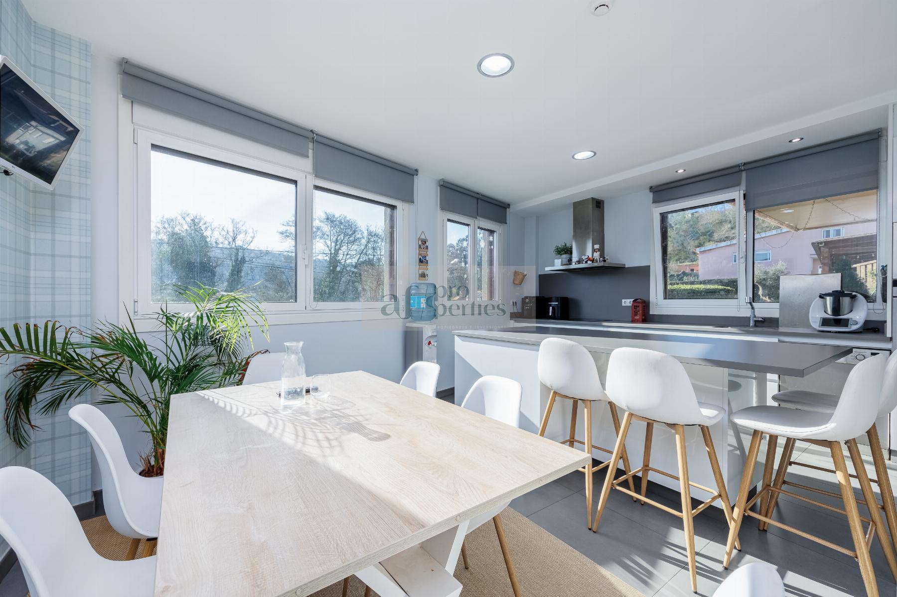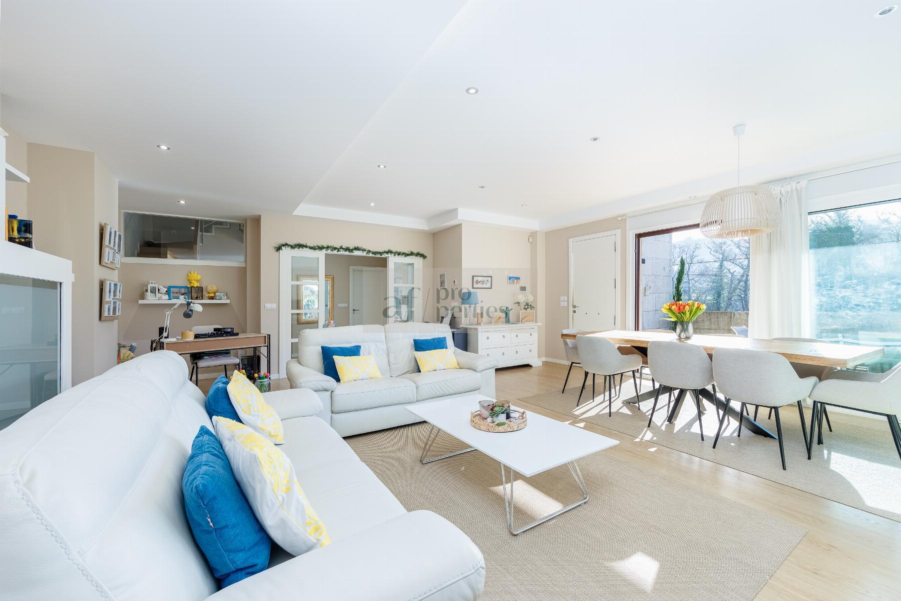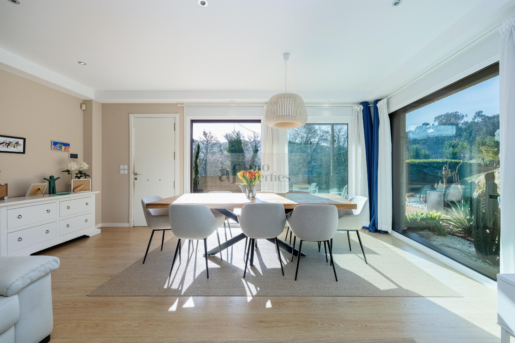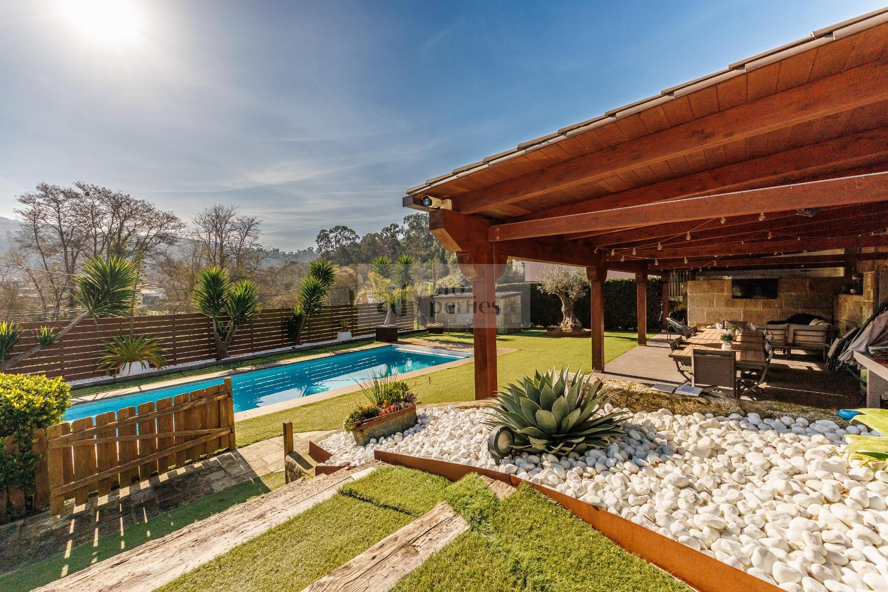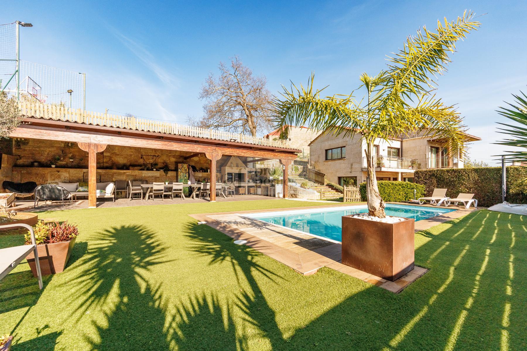 CHALET EN PONTEVEDRA,VIGOChalet 4 dormitorios, 4 baños, 4 garajes, Seminuevo, en Vigo, Pontevedra AF Properties comercializa en Exclusiva esta magnífica VILLA SEMI NUEVA DE ESTILO CONTEMPORANEO.La vivienda se distribuye de la siguiente forma:PLANTA PRINCIPAL-Amplio salón comedor con salida directa al jardín.-Cocina office totalmente equipda.-Cuarto de baño.PRIMERA PALNTA-Cuatro amplio dormitorios, el principal en suitte con vestidor.-Tres cuarto de baño.BAJO CUBIERTA- Salón multiusosPLANTA CALLE-Garaje-Gimnasio-Cuarto de instalaciones-Lavandería.-Bonito jardín consolidado, con riego automático e iluminación. -Cenador de 65 m2. Equipado con barbacoa y aseo piscina.-Campo de deportes.-Piscina cloración salina. Climatizada con bomba de calor.-Aspiración centralizada.-Persianas motorizadas, etc...Información peronalizada en nuestro Lounge en Calle Alfonso XIII Nº 28 Bajo |
