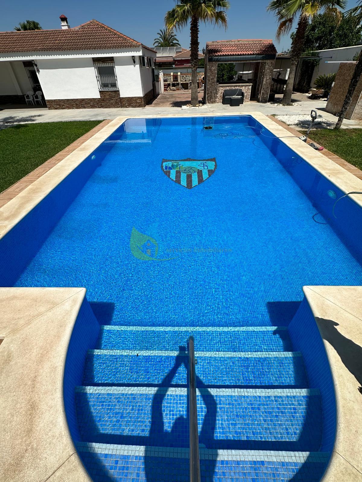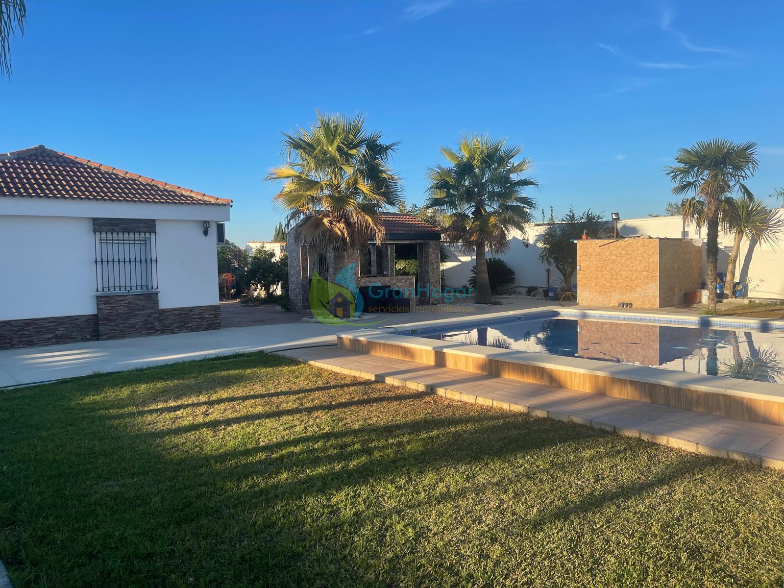 CHALET EN SEVILLA,CARMONAChalet 5 dormitorios, 3 baños, 1 garajes, Buen estado, en Carmona, Sevilla ESPECTACULAR CHALET EN URBANIZACIÓN CERRADA LOS NARANJOS CARMONA (SEVILLA) Se vende magnífico chalet en parcela de 1.524 m², con vivienda principal y apartamento independiente dentro de la misma parcela, además de gran piscina. Ubicado en la exclusiva Urbanización cerrada Los Naranjos (Carmona, Sevilla), a tan solo 10 minutos en coche de Sevilla, combinando tranquilidad y excelente conexión con la ciudad. Vivienda principal:Amplio porche delantero que da acceso a un gran salón con chimenea, perfecto para disfrutar en familia. Gran cocina amueblada con electrodomésticos y posibilidad de instalar chimenea adicional.Dispone de 3 magníficas habitaciones y 2 baños completos. Apartamento independiente (dentro de la parcela):Construcción ideal para invitados, familiares o incluso como espacio independiente. Cuenta con porche delantero, salón, 2 amplias habitaciones, cocina y baño completo. Zona exterior y extras:Parcela de 1.524 m²Más de 350 m² construidosImpresionante piscina de 10x6 metros, alicatada y con iluminaciónCasetilla depuradoraPozo propio con cuartilloCuartillo de herramientasUna propiedad con múltiples posibilidades: vivienda habitual, segunda residencia o ideal para familias que necesiten dos espacios independientes en la misma finca, disfrutando de privacidad y amplitud a pocos minutos de Sevilla. ¡¡NO SE LO PIENSE, PÓNGASE EN CONTACTO Y VISÍTELO SIN COMPROMISO!!Si necesita ayuda con la financiación, no dude en consultarnos.Honorarios, impuestos y otros gastos derivados de la compraventa (Registro de la Propiedad, Notaría, gestoría y posible financiación) NO incluidos en el precio. |
