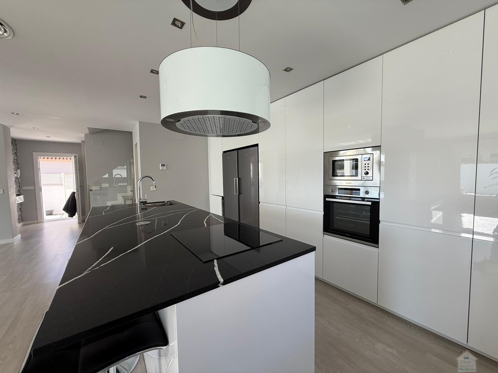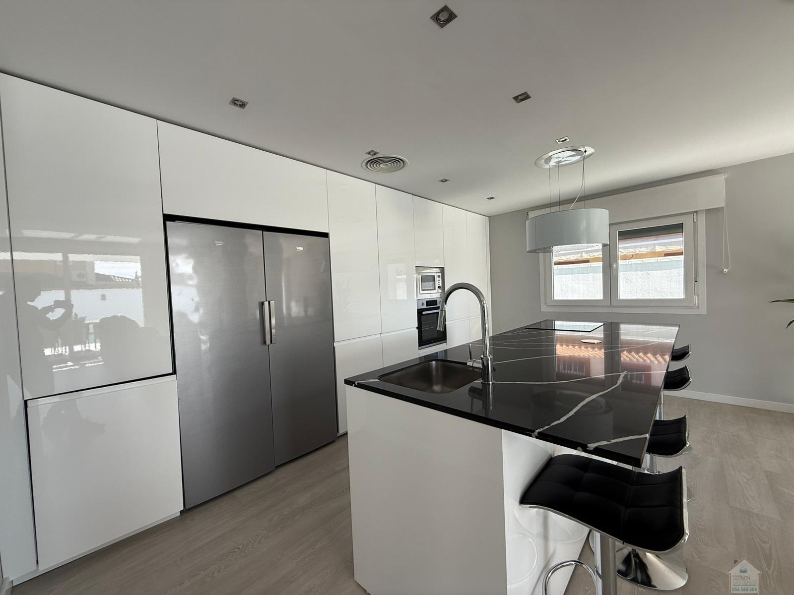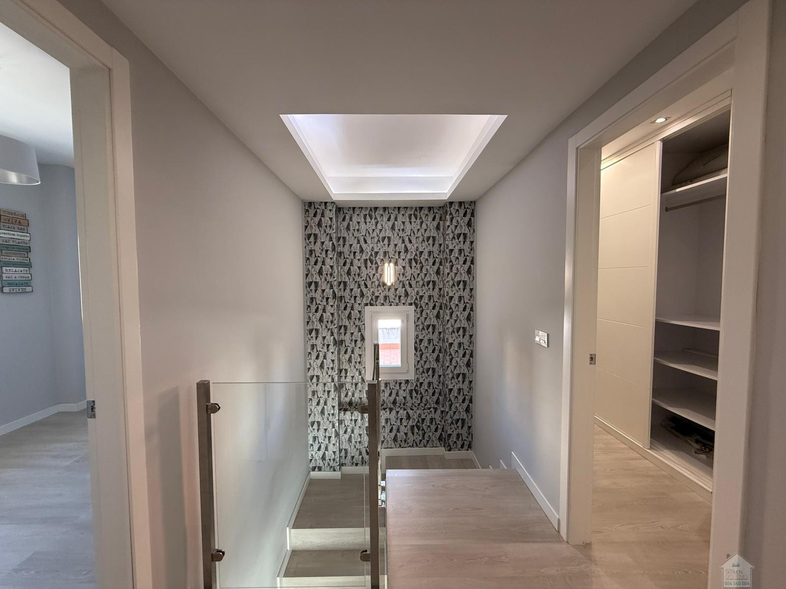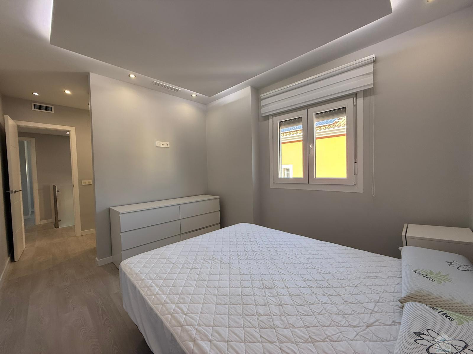 CHALET EN SEVILLA,DOS HERMANASChalet 5 dormitorios, 2 baños, 2 garajes, Buen estado, en Dos Hermanas, Sevilla Alquiler chalet independiente en Olivar de quintos, Montequinto. Situado dentro de un pasaje privado, ofreciendo tranquilidad, seguridad e intimidad. La vivienda consta de 230 metros cuadrados construidos y 418 metros de parcela. En su entrada, un recibidor que nos conduce al salón y cocina integrada, todo diáfano, luminoso y con salida al porche y piscina. En esta planta hay una habitación y un aseo. La planta superior cuenta con un distribuidor que nos dirige a cuatro habitaciones. Una de ellas la habitación principal, con baño propio y vestidor. El último de los baños también se encuentra en esta planta. La zona exterior, amplia, zona de estar cubierta y con una gran piscina en la que disfrutar de la familia y amigos. La casa cuenta con garaje cubierto y capacidad para dos/tres coches. Además, en la fachada de la vivienda, dentro del pasaje se puede también estacionar. No dudes en llamar y estaremos encantados de hacer una visita. |