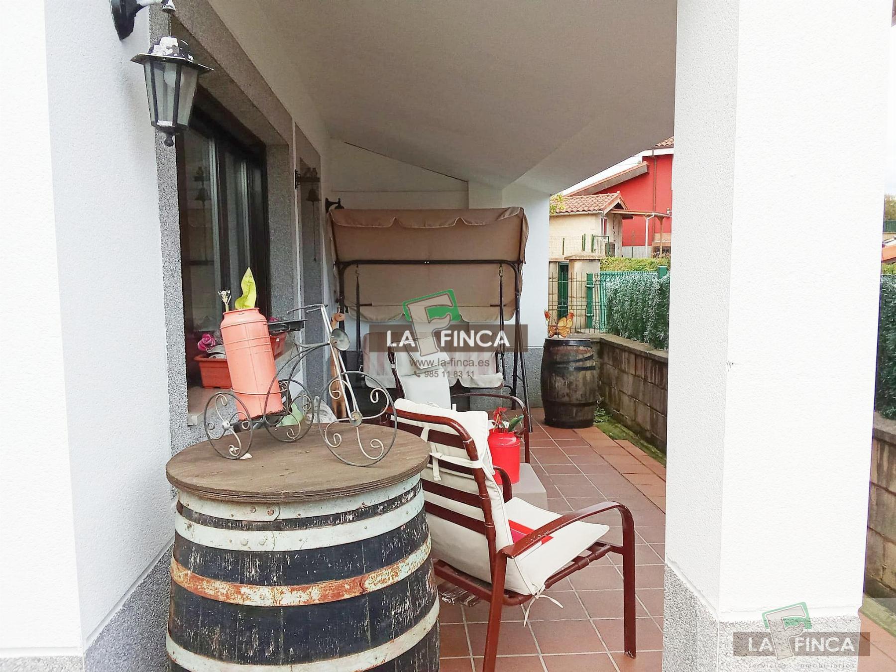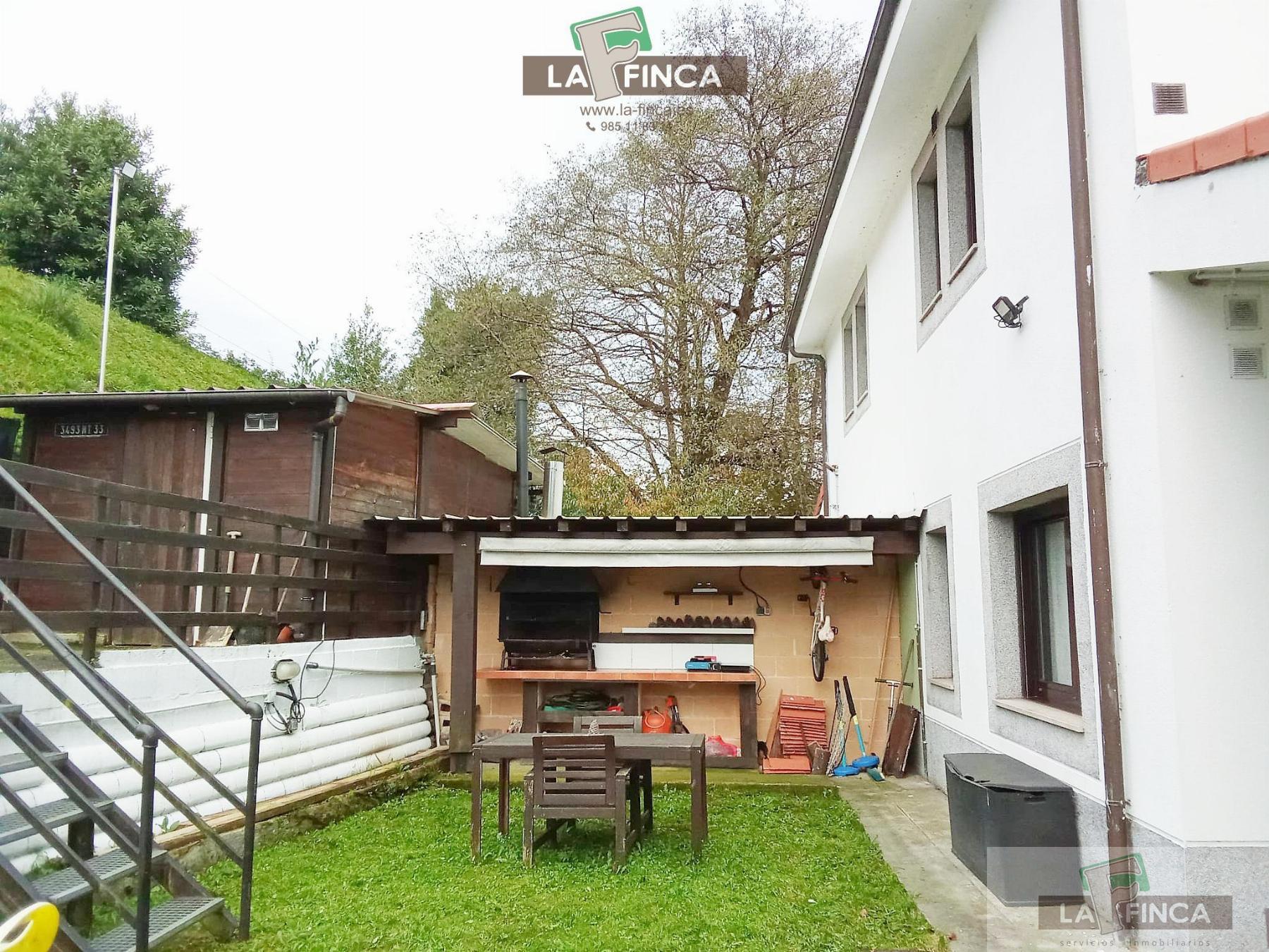 CHALET ADOSADO EN ASTURIAS,SOTO DEL BARCOChalet Adosado, 3 dormitorios, 2 baños, 1 garajes, Buen estado, en Soto del Barco, Asturias Inmobiliaria La Finca pone a la venta esta bonita casa adosada ubicada en Soto del Barco.La vivienda tiene 134 m² y posee dos plantas.En la planta baja:Encontramos un amplio salón con chimenea de leña, desde el que se accede a la zona exterior.Una cocina independiente semi equipada con electrodomésticos a convenir, un dormitorio y un baño completo con ducha.En la primera planta:Subiendo la escalera de terrazo con barandilla de madera disponemos de dos dormitorios amplios con acceso a la terraza y un baño completo con bañera.En el exterior encontramos tres zonas diferenciadas:Una de ellas cubierta frente a la zona de parrilla y la zona de jardín y una caseta de aperos elevada sobre una superficie de hormigón.La casa se encuentra cerrada por portón dentro de la urbanización, tiene sistema de calefacción de gas y leña, carpintería exterior de PVC con doble acristalamiento y rotura de puente térmico y suelos de tarima y cerámica.No dudes en consultarnos si quieres visitar esta propiedad.¡¡¡DESCUBRE TU NUEVO HOGAR!!! |