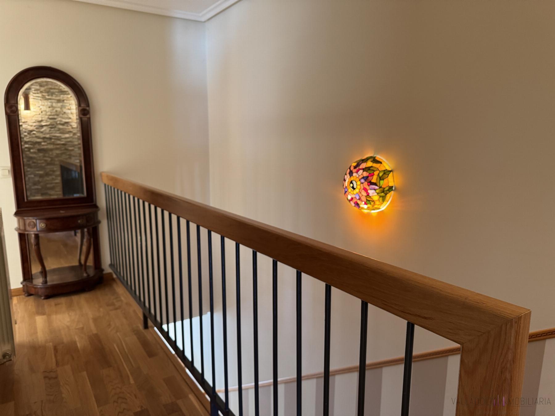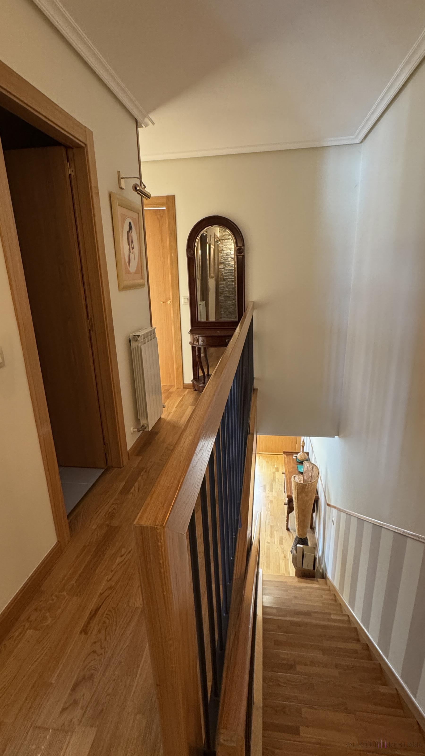 CHALET ADOSADO EN VALLADOLID,ZARATáNChalet Adosado, 4 dormitorios, 3 baños, 1 garajes, Seminuevo, en Zaratán, Valladolid Chalet seminuevo en Zaratán, con excelentes calidades y mejoras.La vivienda dispone en planta baja de un amplio salón, muy luminoso, cocina con muebles nuevos a estrenar, a falta únicamente de encimera y algunos electrodomésticos, y con acceso directo al patio trasero de unos 40 m, totalmente embaldosado. En esta planta encontramos también un dormitorio, un baño completo con ducha y un armario empotrado en el pasillo. La entrada a la vivienda cuenta con un porche y un agradable patio delantero con vegetación que da la bienvenida al chalet.Las escaleras de acceso a la primera planta han sido remodeladas y son de madera. En esta planta se ubican tres dormitorios. El principal dispone de un gran baño en suite dividido en dos estancias y un amplio armario empotrado de esquina. Además, hay otro baño completo con bañera que da servicio al resto de dormitorios. Desde esta planta se accede a dos terrazas, una a cada lado de la vivienda.En la planta sótano se encuentra la espectacular bodega, que se ha hecho completamente nueva y se ha acondicionado al detalle como un auténtico espacio de disfrute. Cuenta con chimenea, barra, fregadero, vitrocerámica, lavavajillas y frigorífico, ideal para reuniones y celebraciones. Y junto a ella, el garaje cerrado donde se ha dispuesto también un aseo y un cuarto trastero.La vivienda dispone de calefacción de gas natural, suelos de parquet y muy buenas calidades en general. Un chalet prácticamente a estrenar, con amplios espacios y múltiples posibilidades, en una localidad tranquila, con todos los servicios, junto a Valladolid. |