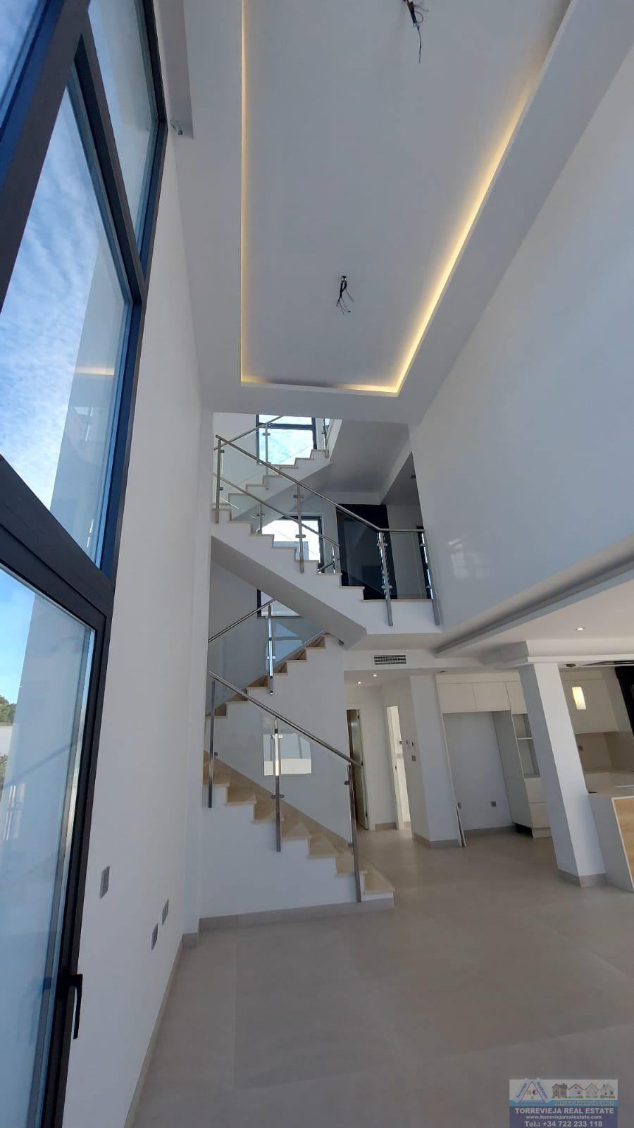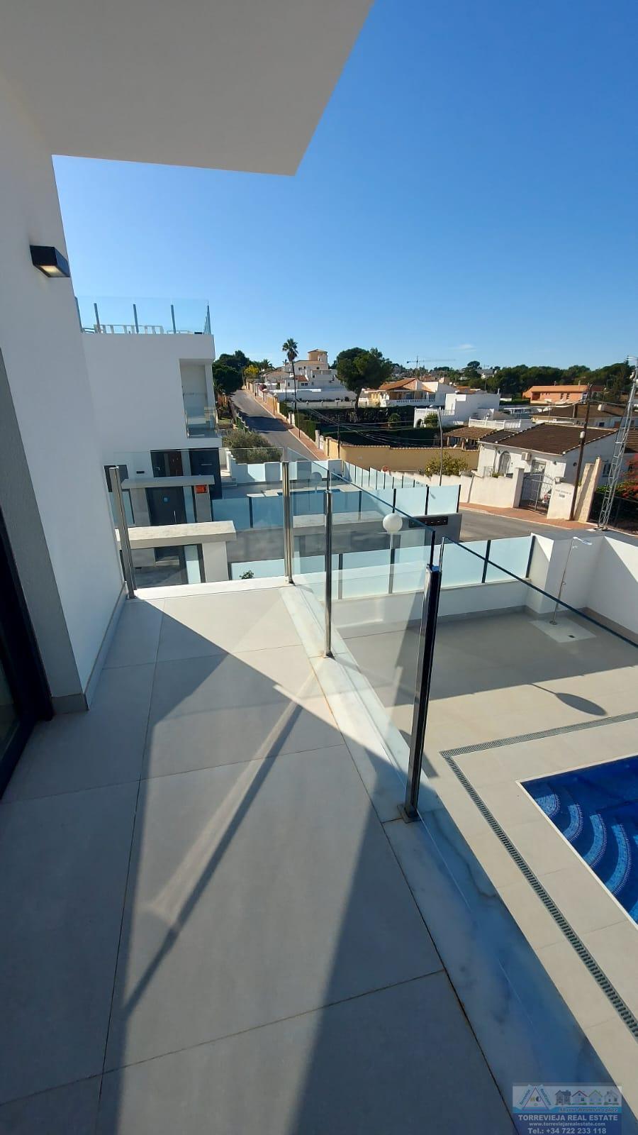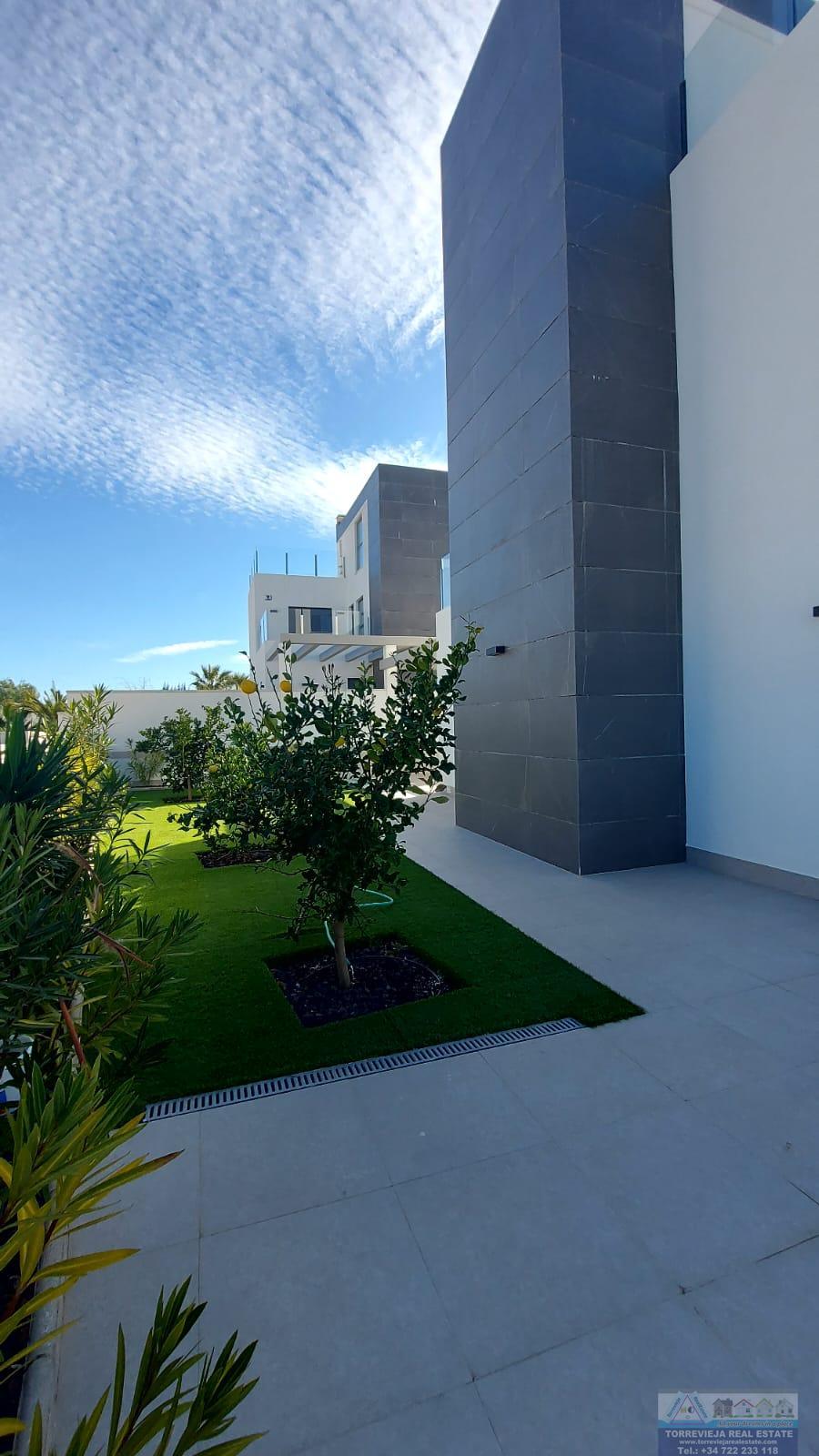 CHALET INDEPENDIENTE EN ALICANTE,TORREVIEJAChalet Independiente, 3 dormitorios, 3 baños, 1 garajes, Nuevo, en Torrevieja, Alicante Enclavado en la codiciada zona de Los Balcones en Torrevieja, este impresionante chalet ofrece una oportunidad inigualable para disfrutar de la vida mediterránea en su máxima expresión. Con una generosa superficie construida de 190 m² y una parcela de 450 m², este inmueble combina confort y elegancia en cada uno de sus rincones. Su diseño exterior, moderno y atractivo, se integra perfectamente en el entorno, creando un espacio acogedor y funcional.El chalet cuenta con tres amplios y luminosos dormitorios, ideales para garantizar el descanso y la privacidad de sus habitantes. Cada habitación está diseñada con atención al detalle, ofreciendo un ambiente cálido y relajante. Además, dispone de tres baños perfectamente equipados, que añaden un toque de comodidad y estilo a la vivienda. La cocina, completamente amueblada, es un verdadero sueño para los amantes de la gastronomía, proporcionando un espacio práctico y agradable para preparar deliciosas comidas.Uno de los mayores atractivos de esta propiedad son sus dos terrazas, que suman un total de 80 m². Estos espacios al aire libre son perfectos para disfrutar del cálido clima de la región, ya sea para relajarse bajo el sol, organizar reuniones con amigos o simplemente contemplar las vistas que ofrece el entorno. La conexión con la naturaleza se ve realzada por las zonas verdes que rodean la vivienda, creando un ambiente sereno y apacible.La joya de este chalet es, sin duda, su piscina privada, un oasis en el que refrescarse durante los cálidos días de verano. Este espacio exterior no solo proporciona diversión y entretenimiento, sino que también se convierte en el lugar ideal para disfrutar de momentos inolvidables en familia o con amigos. Además, la propiedad acepta animales, lo que la convierte en una opción perfecta para quienes desean compartir su hogar con sus mascotas.Situado en una zona privilegiada de Torrevieja, Los Balcones ofrece una excelente calidad de vida, con acceso a todos los servicios necesarios, como supermercados, restaurantes y centros de salud, así como una proximidad a hermosas playas y áreas recreativas. Este chalet no solo es una vivienda, sino un estilo de vida que invita a disfrutar de momentos únicos en un entorno inigualable. |