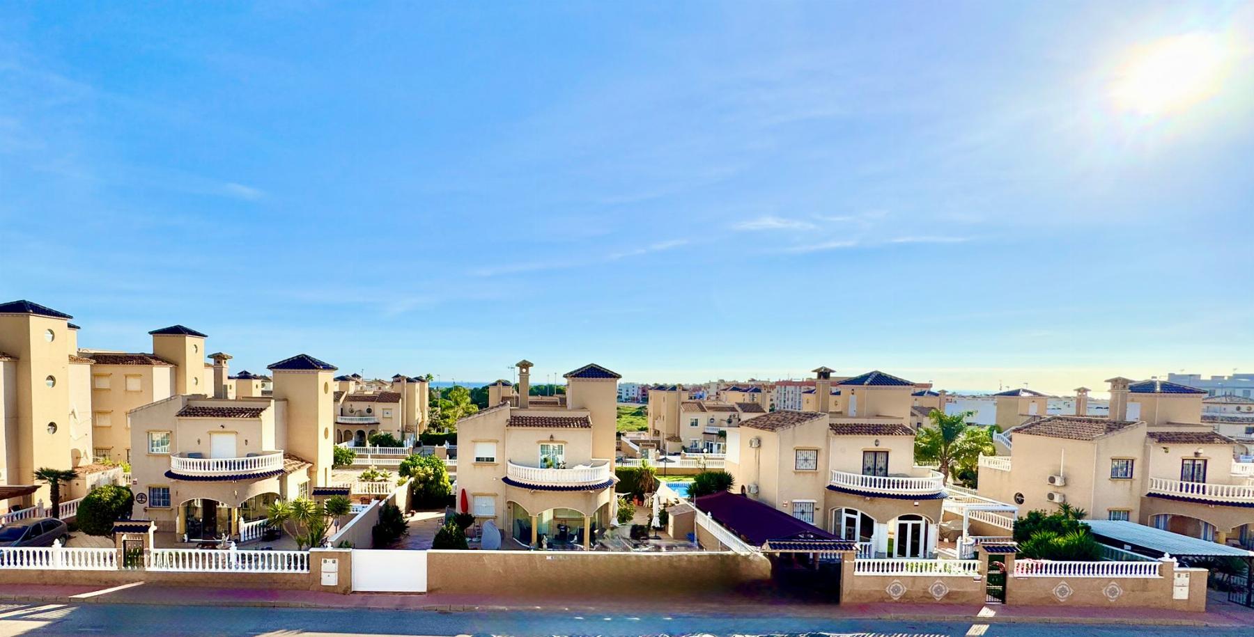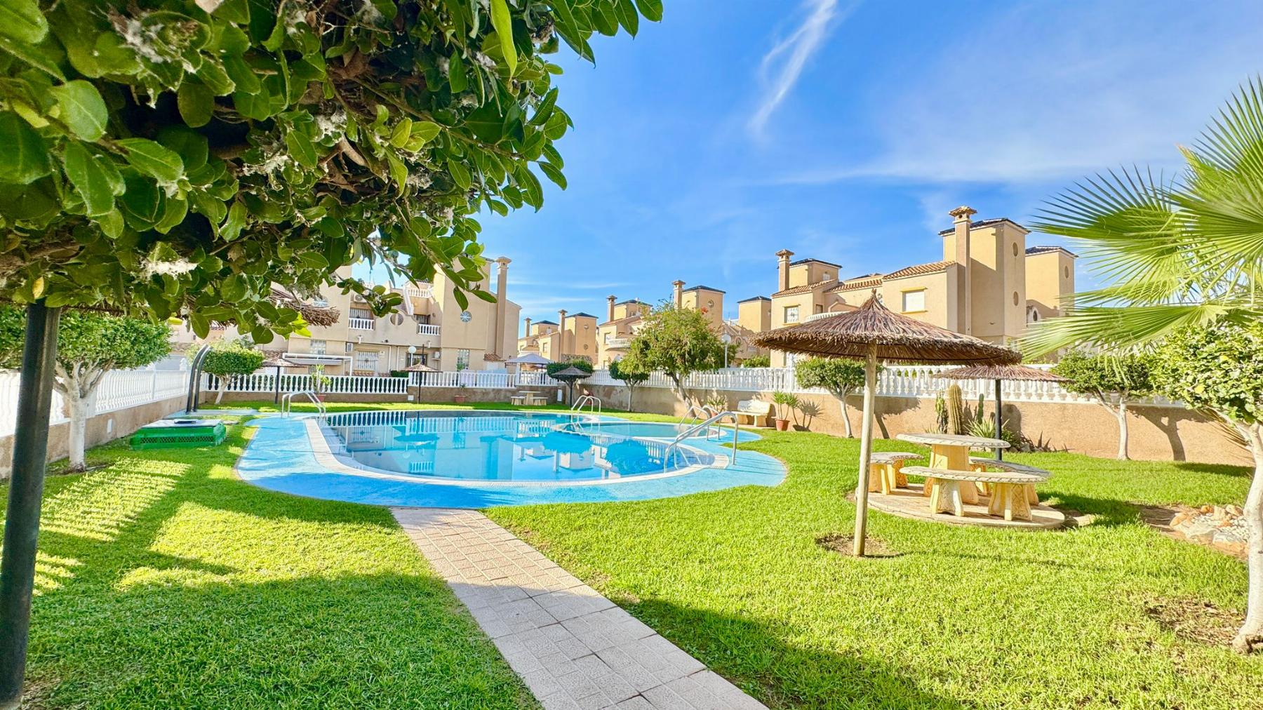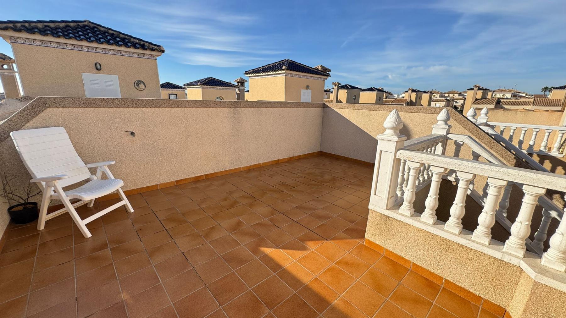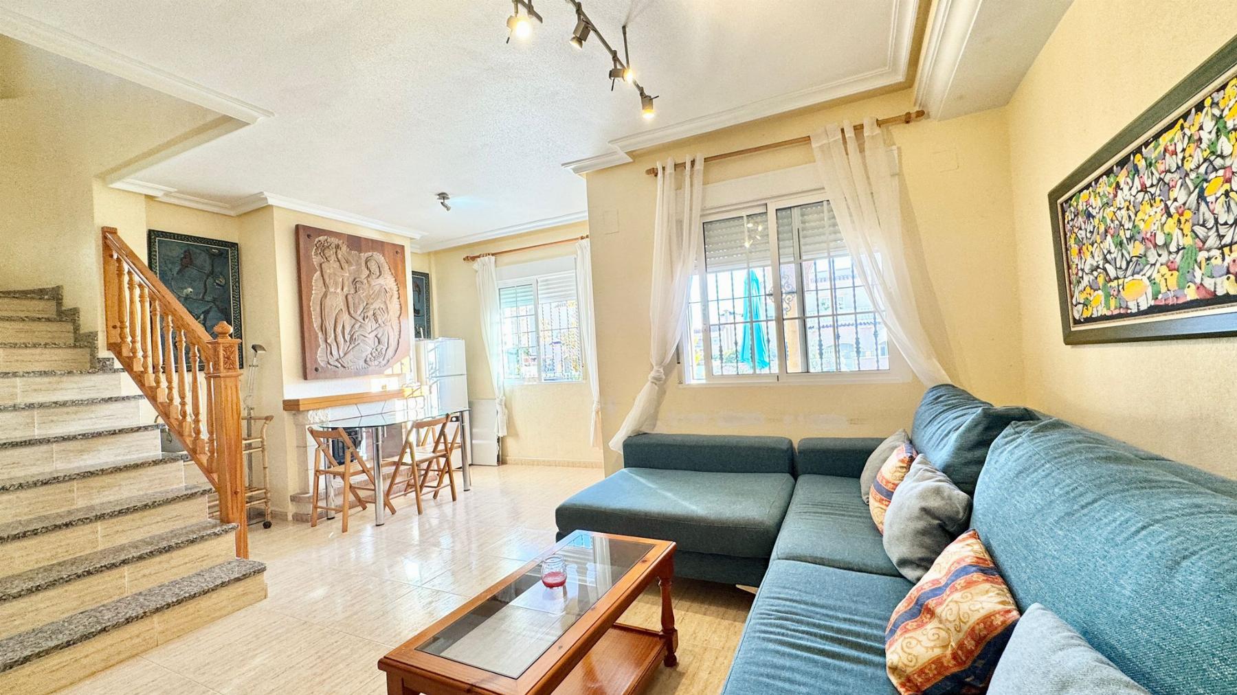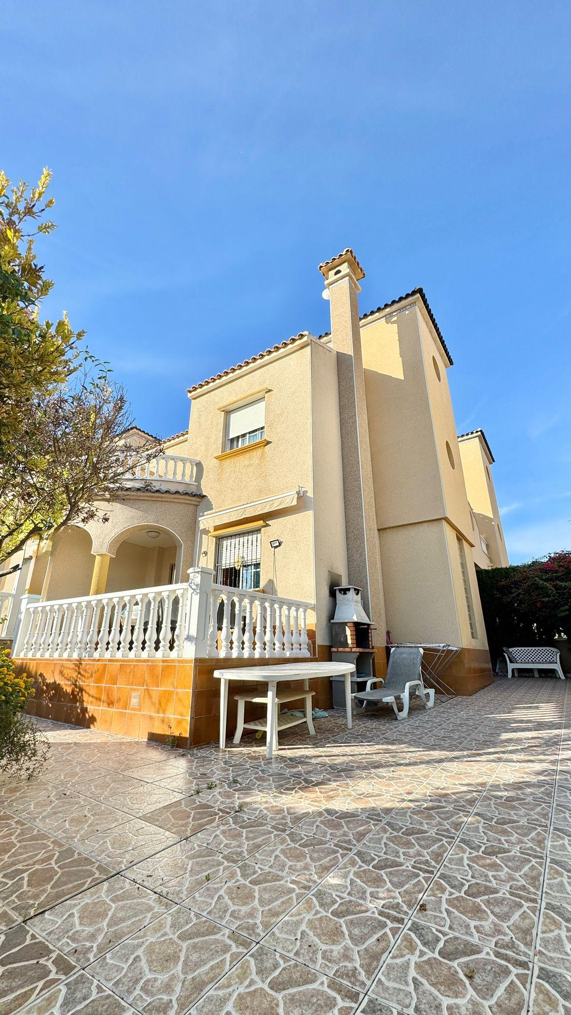 CHALET PAREADO EN ALICANTE,ORIHUELA COSTAChalet Pareado, 4 dormitorios, 2 baños, 0 garajes, Buen estado, en Orihuela Costa, Alicante Magnífico pareado situado en una de las zonas más demandadas de Orihuela Costa, rodeado de campos de golf, naturaleza y todos los servicios.La vivienda se encuentra dentro de un residencial privado con piscina comunitaria y zona de aparcamiento, ideal para disfrutar de la tranquilidad y el confort durante todo el año.Características principales:- Parcela privada: 221,94 m²- Superficie construida: 135 m²- Superficie útil: 124 m²- Año de construcción: 2007- Orientación principal: EsteDistribución:- Amplio salón-comedor con acceso a terraza- Cocina independiente totalmente equipada- 4 dormitorios (3 con armarios empotrados y gran luminosidad)- 2 baños completos (uno en planta baja y otro en la primera planta)- Terraza superior con vistas abiertas, perfecta para relajarse o tomar el solLo mejor de esta propiedad:Una vivienda espaciosa, luminosa y bien cuidada, ubicada en una urbanización tranquila y muy bien comunicada.Ideal tanto como residencia habitual como vivienda vacacional, por su excelente ubicación, tamaño, vecindario y relación calidad-precio. |