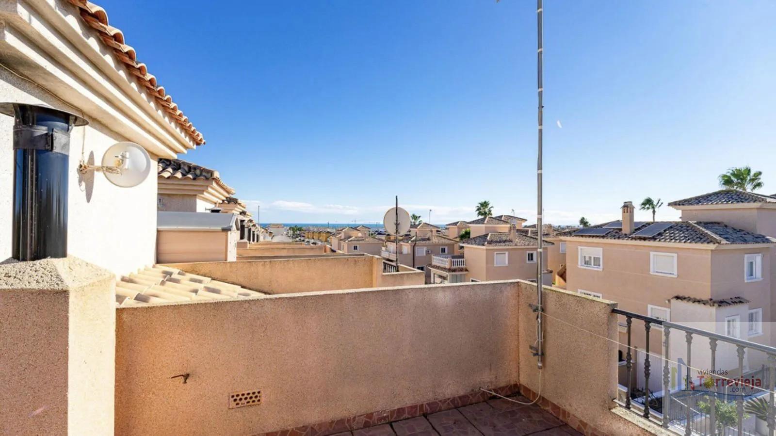 DúPLEX EN ALICANTE,ORIHUELA COSTADúplex 2 dormitorios, 2 baños, 0 garajes, Buen estado, en Orihuela Costa, Alicante Precioso dúplex adosado en Los Altos Orihuela Costa, con vistas al marTe presentamos este encantador dúplex adosado situado en la demandada zona de Los Altos, Orihuela Costa, ideal tanto como vivienda habitual como para disfrutar de vacaciones junto al mar.La vivienda cuenta con 2 amplios dormitorios y 2 baños, uno de ellos ubicado en planta baja, aportando un extra de comodidad. Dispone de un luminoso salón-comedor con acceso directo a la terraza frontal y trasera, perfectas para disfrutar del clima mediterráneo durante todo el año. La cocina es independiente y cuenta con galería, ofreciendo funcionalidad y espacio extra de almacenamiento.En la planta superior encontramos un fantástico solárium privado con vistas al mar, ideal para relajarse, tomar el sol o disfrutar de agradables veladas al aire libre.La vivienda se vende totalmente amueblada y forma parte de una urbanización con piscina comunitaria. Está situada cerca de todo tipo de servicios, supermercados, restaurantes, centros comerciales y a pocos minutos de las playas de Orihuela Costa.Una oportunidad perfecta para quienes buscan confort, buena ubicación y calidad de vida en la Costa Blanca. |
