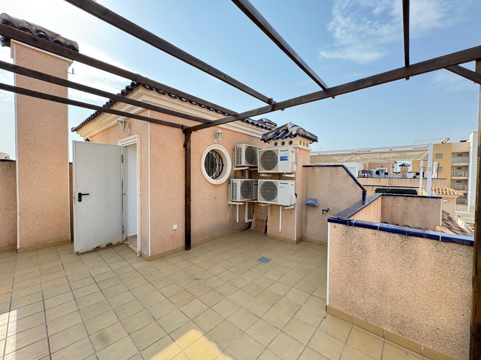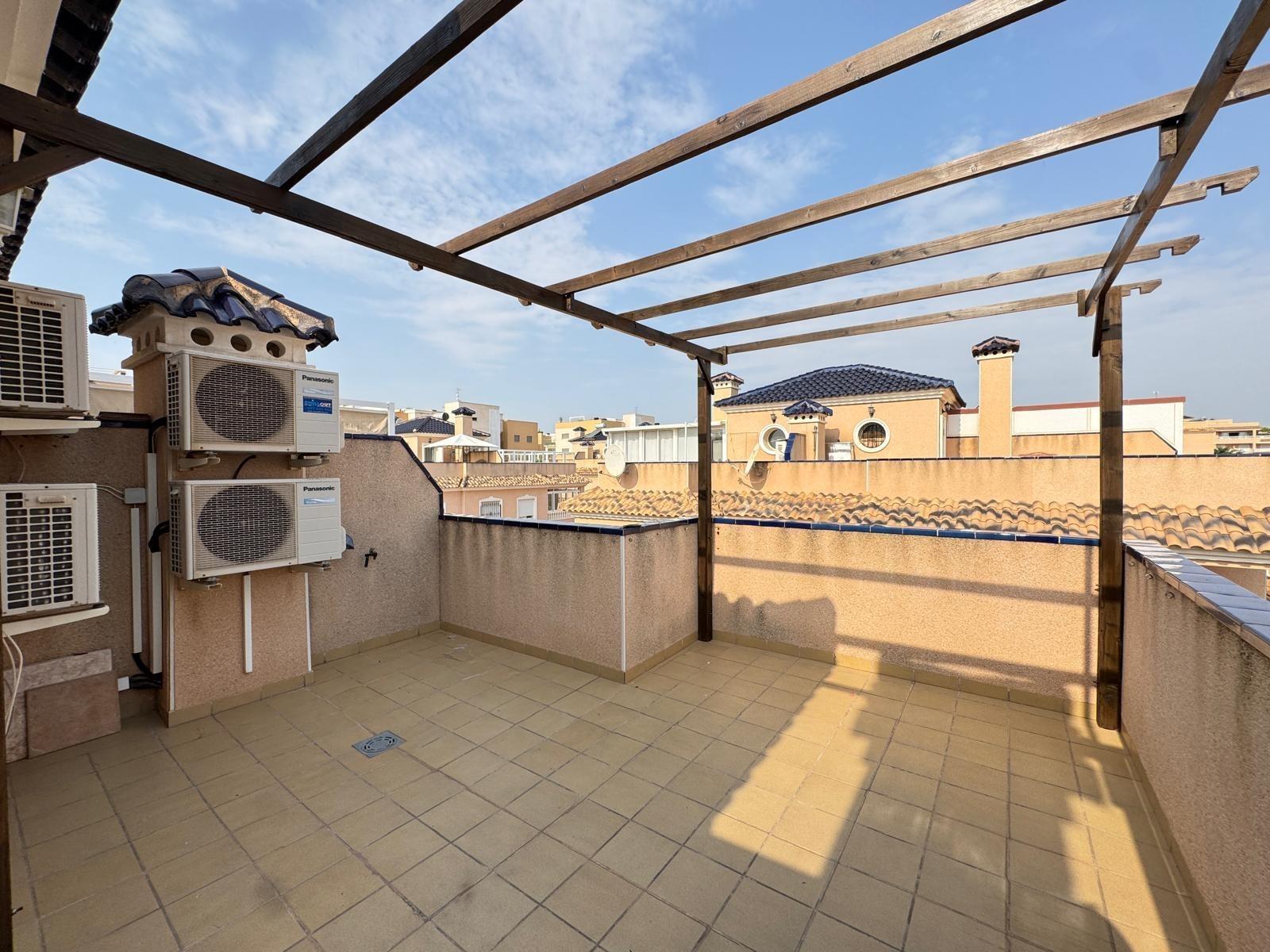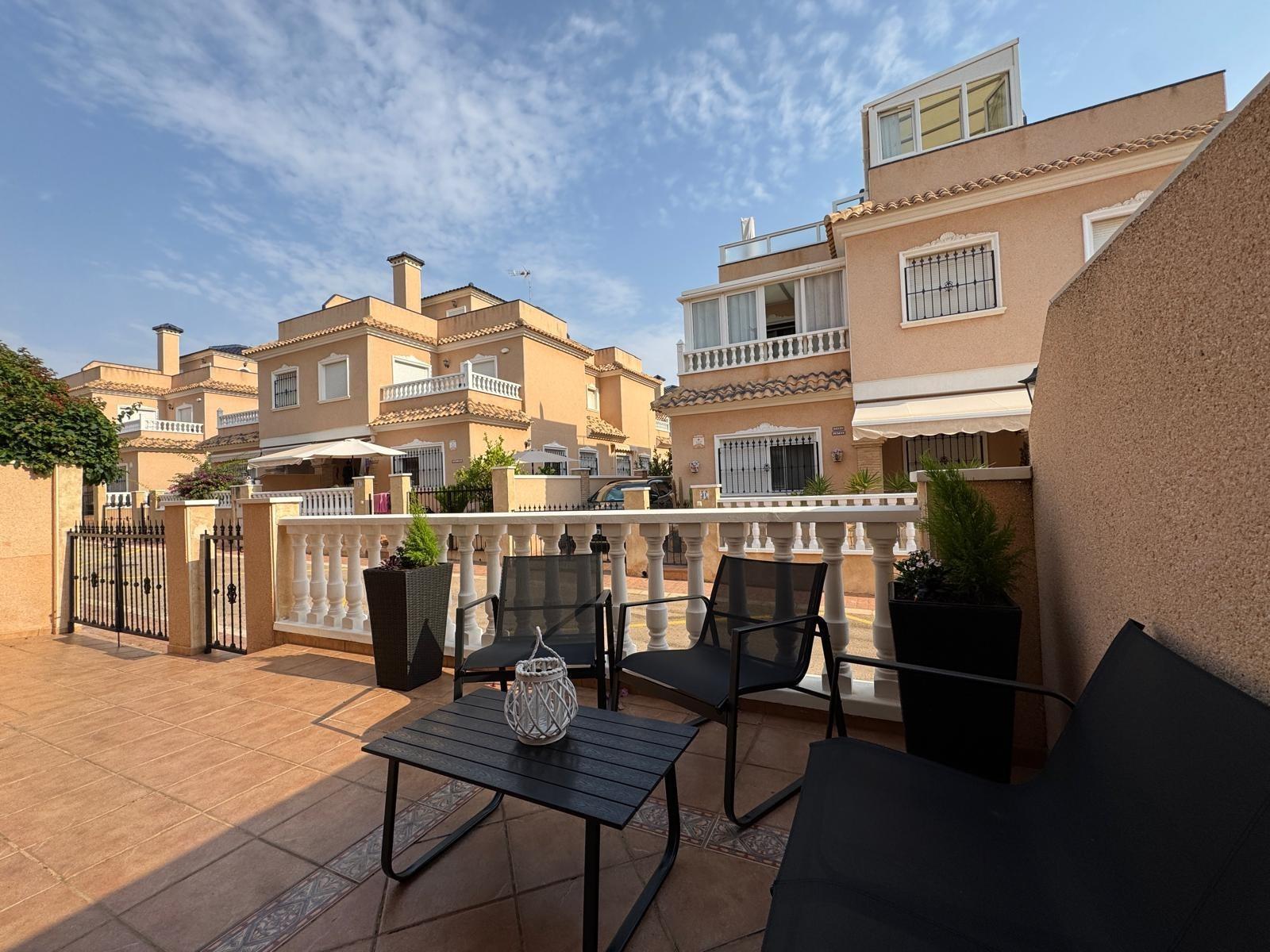 DúPLEX ADOSADO EN ALICANTE,ORIHUELA COSTADúplex Adosado, 3 dormitorios, 2 baños, 0 garajes, Reformado, en Orihuela Costa, Alicante Se vende adosado de 101 m² con parcela privada de aproximadamente 50 m² en la zona de Orihuela Costa, Torrevieja (Alicante).La vivienda se encuentra en buen estado, tras una reforma cosmética, y está lista para entrar a vivir. Se vende con muebles y elementos de decoración, tal como se aprecia en las fotografías.Distribución y características: Amplio salón-comedor integrado con gran cocina, ideal para reuniones familiares y con amigos. Tres niveles: En la segunda planta terraza con vistas a la urbanización. En la tercera planta solárium privado, perfecto para relajarse y disfrutar del sol. Parcela de unos 50 m² con espacio para zona de descanso o aparcamiento para coche.Zonas comunes del residencial: Urbanización cerrada con áreas ajardinadas. Dos piscinas comunitarias: una piscina exterior, otra piscina cubierta y climatizada, ideal para el invierno.La vivienda cuenta con aire acondicionado. Es una excelente opción tanto como residencia habitual como para disfrutar de las vacaciones en la Costa Blanca. |