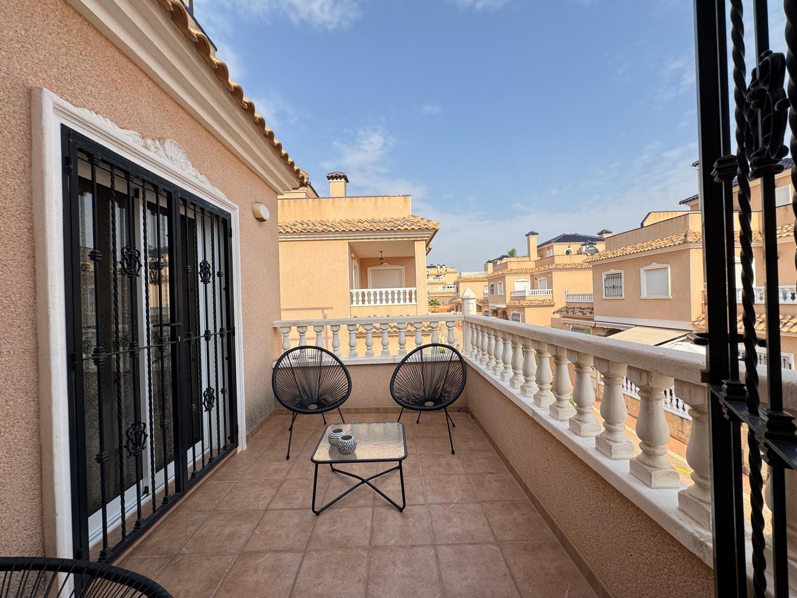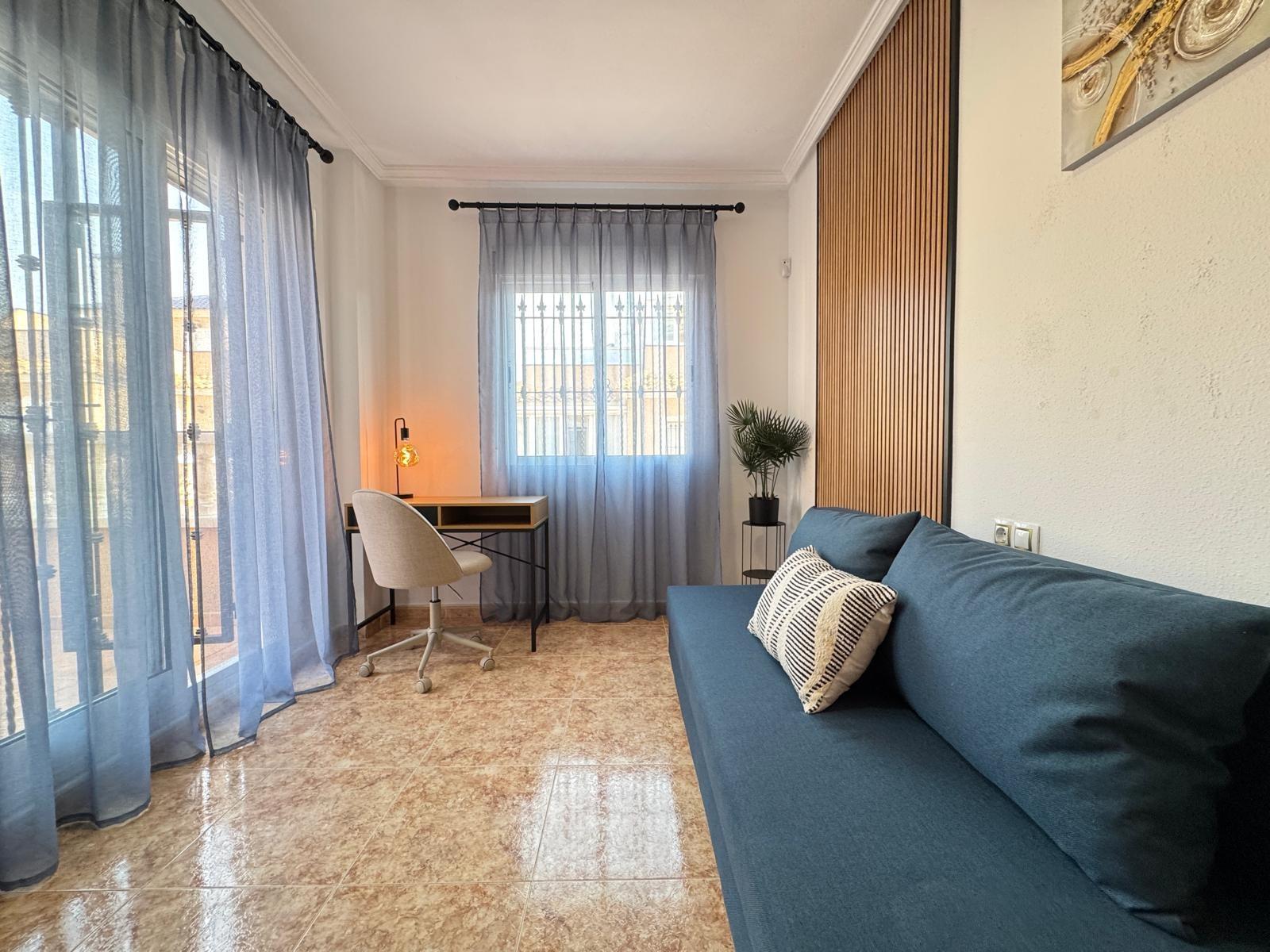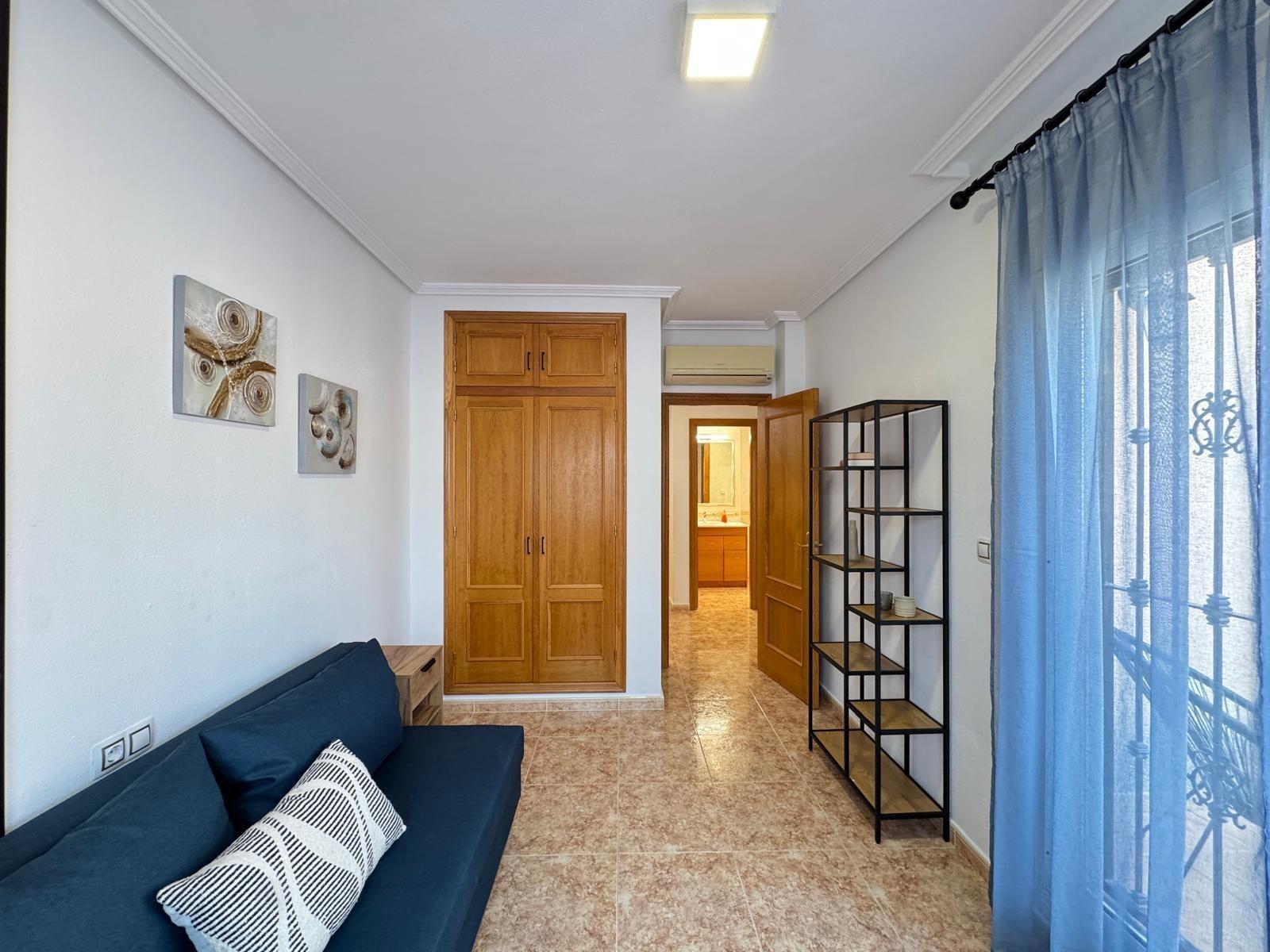 DúPLEX ADOSADO EN ALICANTE,ORIHUELA COSTADúplex Adosado, 3 dormitorios, 2 baños, 0 garajes, Reformado, en Orihuela Costa, Alicante Se vende adosado de 101 m² con parcela privada de aproximadamente 50 m² en la zona de Orihuela Costa, Torrevieja (Alicante).La vivienda se encuentra en buen estado, tras una reforma cosmética, y está lista para entrar a vivir. Se vende con muebles y elementos de decoración, tal como se aprecia en las fotografías.Distribución y características: Amplio salón-comedor integrado con gran cocina, ideal para reuniones familiares y con amigos. Tres niveles: En la segunda planta terraza con vistas a la urbanización. En la tercera planta solárium privado, perfecto para relajarse y disfrutar del sol. Parcela de unos 50 m² con espacio para zona de descanso o aparcamiento para coche.Zonas comunes del residencial: Urbanización cerrada con áreas ajardinadas. Dos piscinas comunitarias: una piscina exterior, otra piscina cubierta y climatizada, ideal para el invierno.La vivienda cuenta con aire acondicionado. Es una excelente opción tanto como residencia habitual como para disfrutar de las vacaciones en la Costa Blanca. |