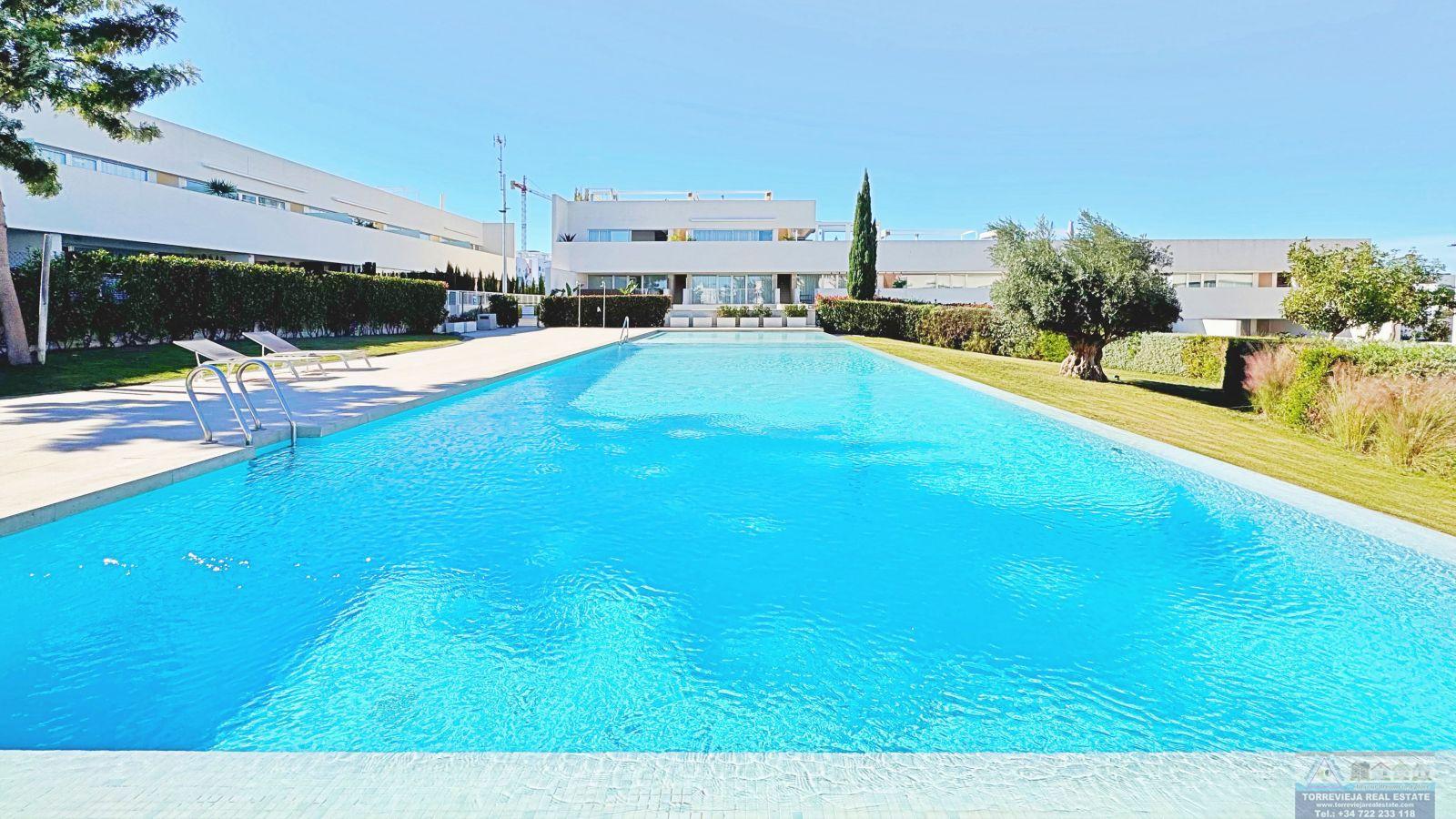 Villa 3 dormitorios, 3 baños, 0 garajes, , en Torrevieja, Alicante Este adosado dúplex de tres dormitorios y tres baños se encuentra en la exclusiva zona residencial de Los Balcones, en Torrevieja. La vivienda destaca por su diseño moderno, la luminosidad en cada estancia y sus amplias terrazas que permiten disfrutar del estilo de vida mediterráneo durante todo el año. En la planta baja, la vivienda dispone de un jardín privado de 22 m² con ..espacio para comedor exterior. El interior cuenta con un salón de concepto abierto, decorado con un elegante revestimiento en la pared principal, conectado a una cocina moderna totalmente equipada con electrodomésticos y barra americana. En esta planta también se sitúa un dormitorio con armario empotrado, actualmente adaptado como zona de trabajo, además de un baño completo con ducha. En la planta superior se encuentran dos dormitorios, ambos con armarios empotrados, siendo el principal muy luminoso y con acceso directo a una terraza privada con vistas a la urbanización y a la piscina. En esta planta se ubican también dos baños completos con acabados de alta calidad. La vivienda cuenta con un amplio solárium privado con vistas despejadas a la laguna de Torrevieja, equipado con zona chill-out, pérgola, barbacoa y tumbonas, perfecto para disfrutar de reuniones al aire libre o de la tranquilidad del entorno. El residencial ofrece amplias zonas comunes con piscina comunitaria de gran tamaño rodeada de palmeras y zonas verdes, lo que genera un ambiente ideal tanto para familias como para quienes buscan un entorno relajado. La urbanización de Los Balcones es una de las más consolidadas de Torrevieja, con todos los servicios al alcance: supermercados, colegios, farmacias, zonas deportivas y el Hospital Universitario de Torrevieja. Las playas de Punta Prima y Torrevieja se encuentran a menos de 4 km, lo que convierte esta propiedad en una excelente opción tanto como residencia permanente como para inversión vacacional. Leer mas >>