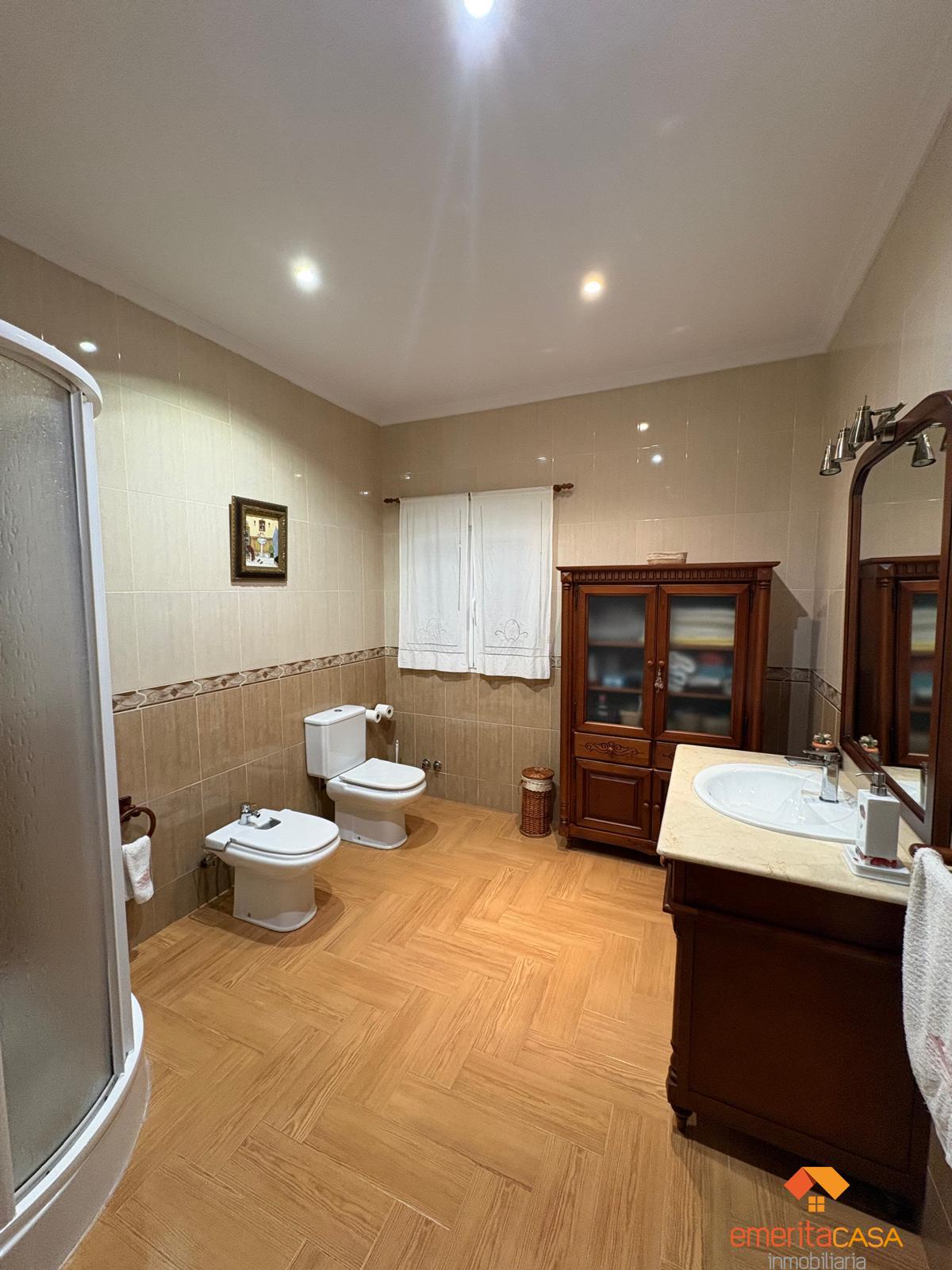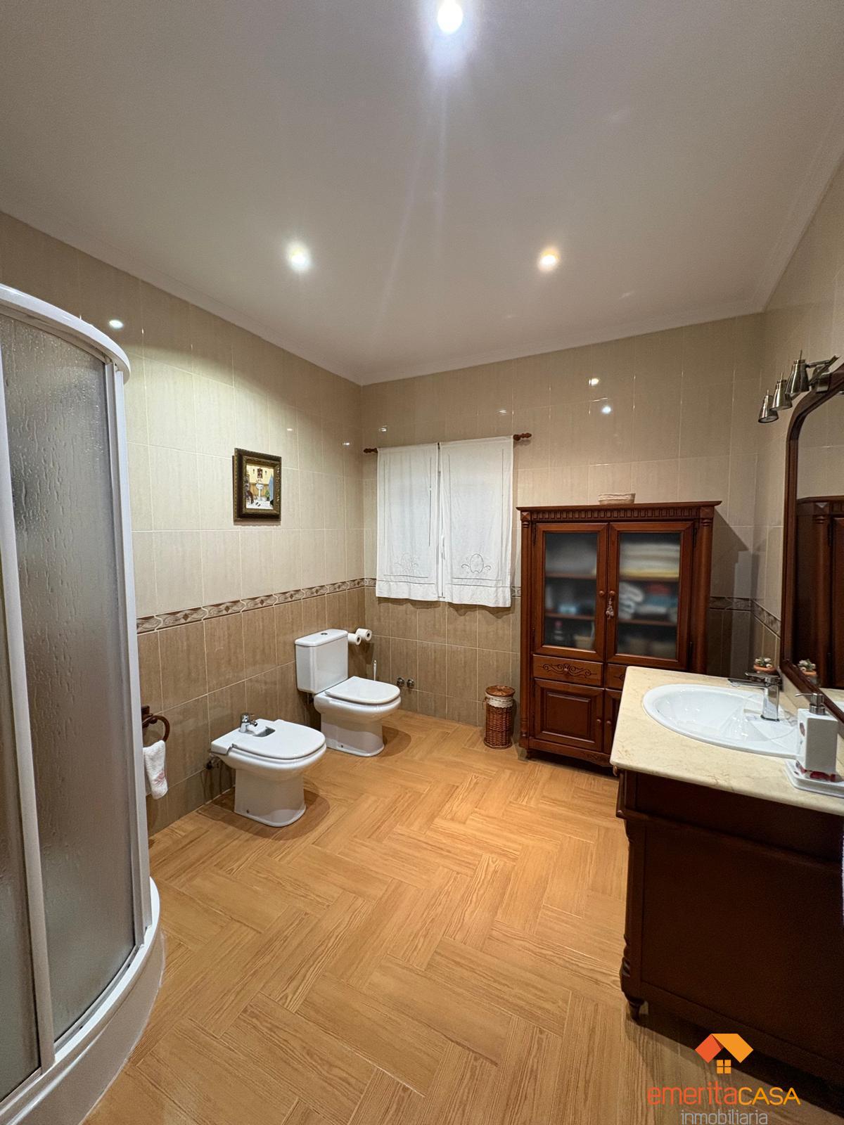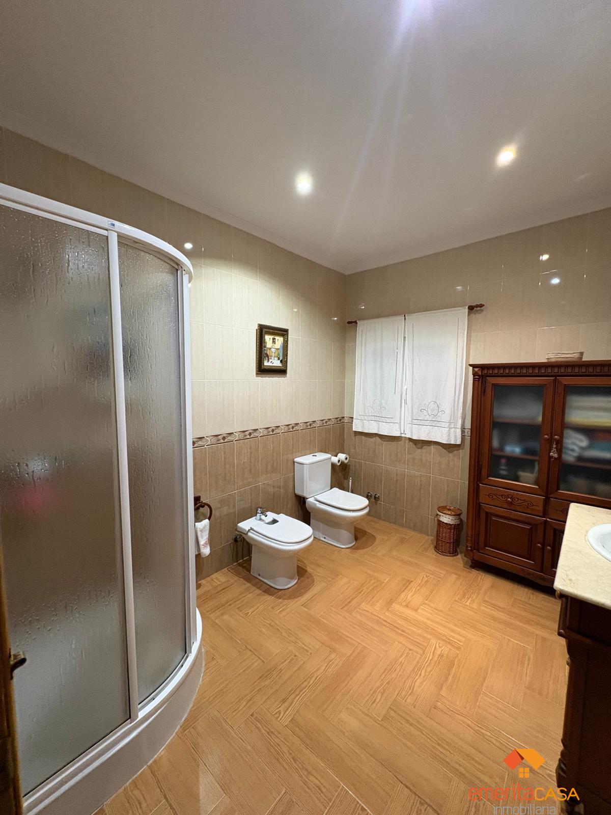 PISO EN BADAJOZ,MéRIDAPiso 5 dormitorios, 2 baños, 2 garajes, Buen estado, en Mérida, Badajoz Magnífico piso en el corazón de la ciudad, resultado de la unificación de dos viviendas, que ofrece una superficie total de 190 m² con una distribución amplia y muy funcional.Se trata de una vivienda en planta baja, destacando por su gran patio privado, un espacio perfecto para disfrutar al aire libre, reuniones familiares o momentos de relax en plena zona centro.La vivienda dispone de cinco amplias habitaciones, siendo la principal una elegante suite con baño privado. Cuenta además con dos baños completos, diseñados para ofrecer comodidad y practicidad a toda la familia.Incluye dos plazas de garaje, un valor añadido imprescindible en el centro, y trastero integrado dentro de la propia vivienda, aportando un extra de espacio y comodidad.Un piso único por dimensiones, ubicación y características, ideal para familias que buscan amplitud, confort y la comodidad de vivir en el centro sin renunciar a espacios exteriores. |
