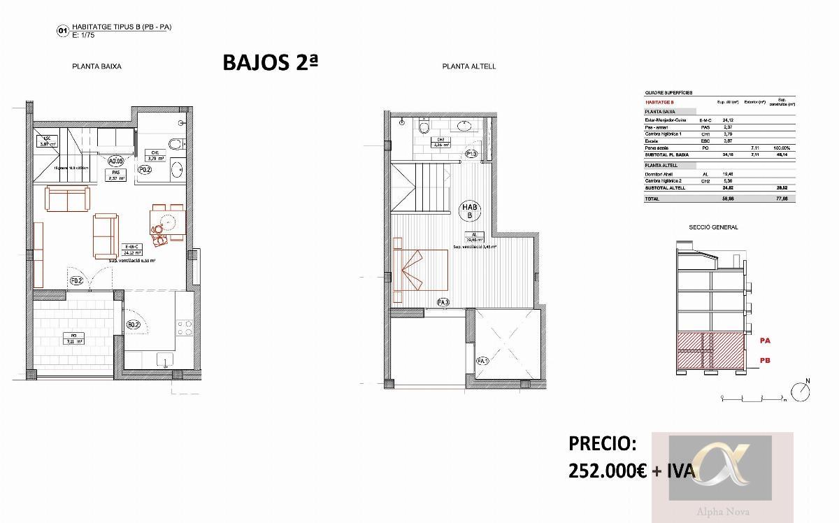 PLANTABAJA BAJO EN BARCELONA,BADALONAPlantabaja Bajo, 1 dormitorios, 2 baños, 0 garajes, Nuevo, en Badalona, Barcelona ¡Descubre este encantador dúplex en venta que combina comodidad y estilo en una ubicación inmejorable! Con una superficie construida de 77,66 m² y un diseño de concepto abierto, este hogar es perfecto para quienes buscan un espacio moderno y acogedor. En la planta baja, disfrutarás de una amplia cocina, comedor y sala, además de un baño completo. El patio es de 7,11 m² es ideal para relajarse.Subiendo al altillo, encontrarás la zona de noche con los dormitorios y otro baño completo, brindando privacidad y confort. Este dúplex cuenta con entrada individual desde la calle, lo que garantiza un acceso fácil y directo. Además, está situado a solo 75 metros de la Plaza Trafalgar, rodeado de servicios y con acceso a diversas líneas de autobús.La propiedad se encuentra a tan solo 450 metros de la parada de metro Llefiá L10-Nord y a 650 metros de Artigues-Sant Adria L2, facilitando tus desplazamientos por la ciudad. Con calefacción eléctrica, aire acondicionado y una clasificación energética A, este hogar es eficiente y sostenible. No pierdas la oportunidad de vivir en un espacio que lo tiene todo: comodidad, ubicación y estilo. ¡Contacta ahora para más información y visita! |