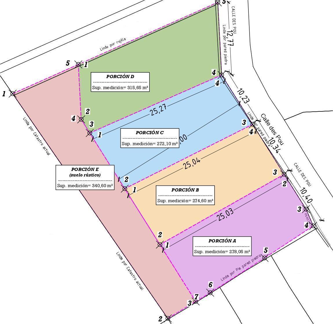 Terreno Parcela Urbana, 0 dormitorios, 0 baños, 0 garajes, Urbanizable, en Selva, Baleares Solar urbano con gran potencial residencialSe ofrece solar de aproximadamente 1.481 m², de los cuales 1.100 m² son suelo urbano, actualmente en proceso de parcelación para la creación de cuatro solares urbanos y una franja posterior de suelo rústico destinada a zonas verdes y servidumbres.El proyecto de parcelación se encuentra en fase de aprobación, con ..previsión de resolución en breve. El suelo rústico trasero se plantea como zona común/jardín, sin posibilidad edificatoria, repartiendo su valor proporcionalmente entre las parcelas urbanas de la siguiente manera:- Parcela A: 278,05 m²- Parcela B: 274,60 m²- Parcela C: 272,10 m²- Parcela D: 315,65 m²- Parcela E (zona rural, no edificable): 340,60 m²Potencial edificatorio destacado:Posibilidad de hasta 7-8 viviendas unifamiliares.Edificación permitida en sótano + planta baja + una planta piso.Profundidad edificable de 12 m, más hasta 13 m adicionales para construcciones auxiliares como porches, piscina, barbacoas, etc.Ideal para proyecto residencial unifamiliar o desarrollo a medida para inversores.El solar se comercializa en conjunto. Existe la posibilidad de venta futura con proyecto básico, aunque actualmente no se ha definido una tipología cerrada para mantener flexibilidad.Como mejora adicional, se está gestionando la eliminación de una torre de media tensión.Una excelente oportunidad para promotores o inversores que busquen un solar con alta capacidad de desarrollo en un entorno tranquilo. Leer mas >>