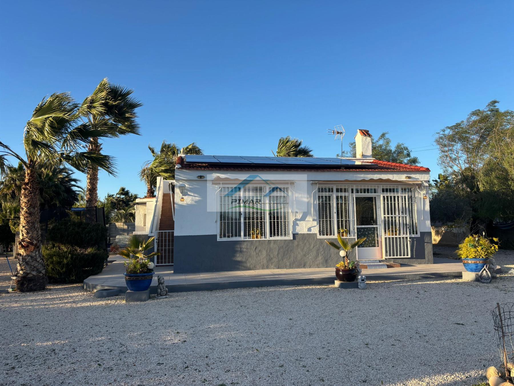 Casa 2 dormitorios, 2 baños, 0 garajes, Buen estado, en Elche-Elx, Alicante Chalet en venta en Elche Zona La Hoya con piscina y parcela de 1.700 m²( PRO-INDIVISO)ESTA PROPIEDAD NO ADMITE HIPOTECASe vende precioso chalet independiente en La Hoya (Elche), situado en una amplia parcela de 1.700 m² totalmente vallada, cuidada al máximo detalle y con diferentes zonas ajardinadas, árboles de sombra, suelo de gravilla (ideal para fácil mantenimiento) y área.. de hormigón impreso con decoración rústica.La vivienda cuenta con una superficie construida aproximada de 150 m², distribuidos en:Vivienda principal de 110 m²2 dormitorios2 baños completosSalón-comedorCocina independienteHabitación destinada a despensa y lavanderíaTerraza solárium de 70 m², accesible por escalera exterior de obraEn el exterior encontramos una espectacular piscina de 9 x 4 m con depuradora, pérgolas de sombra y un acogedor cenador ideal para grandes reuniones familiares, con iluminación ambiental tanto de día como de noche.Extras y equipamiento: Parking techado para 3 vehículos Fuente decorativa en la entrada Barbacoa independiente Barbacoa cerrada con cocina junto a la piscina Aire acondicionado Suelos de gres estilo rústico Ventanas de aluminio climalitLa vivienda funciona actualmente con sistema solar propio:12 placas solares de alto rendimiento + 3 baterías de litio, con una potencia diaria aproximada de 6.000 W, ampliable. Existe la posibilidad de contratar luz eléctrica convencional si se desea.El agua es similar a potable (riego por contador) y se puede contratar agua potable. Nota importante:La vivienda no está inscrita en el Registro de la Propiedad, aunque se paga IBI. Precio: 158.000 (PRO-INDIVISO) Leer mas >>