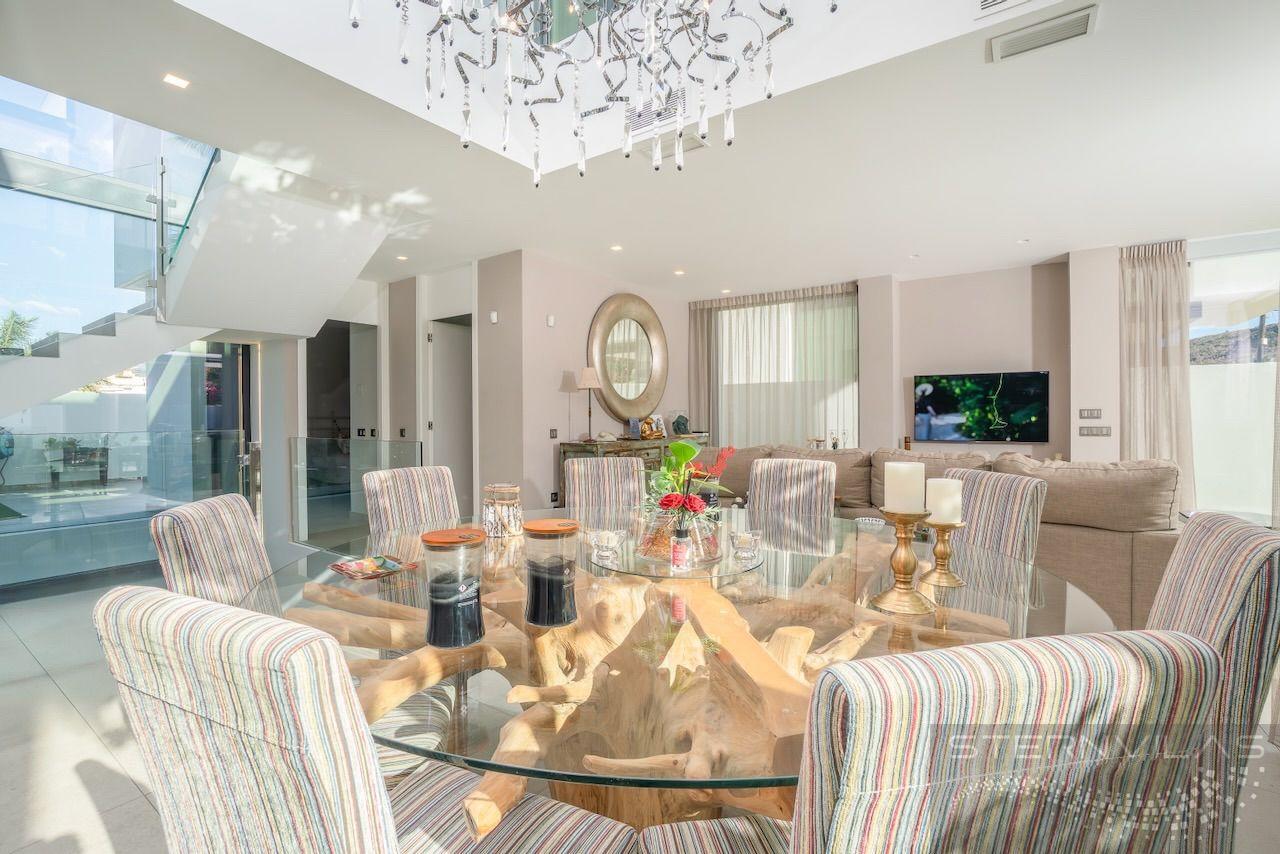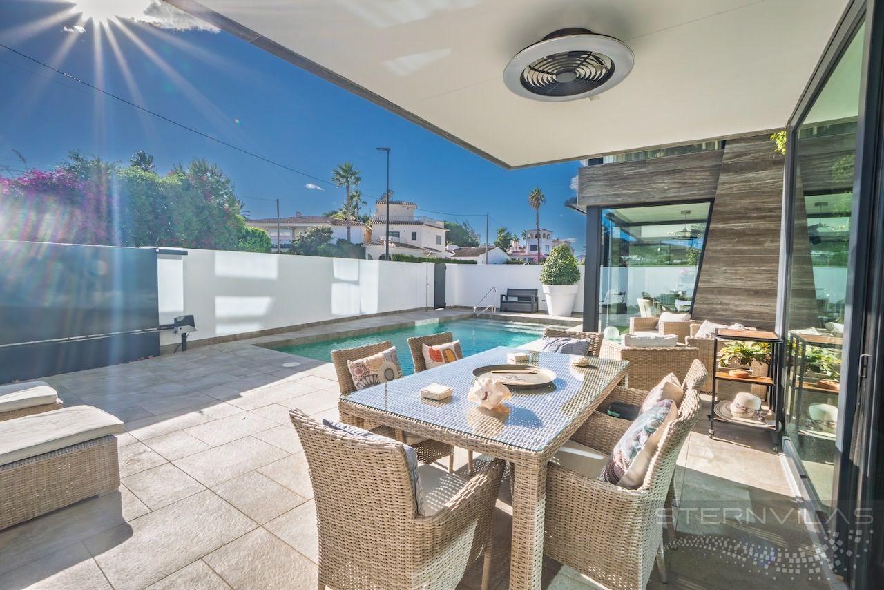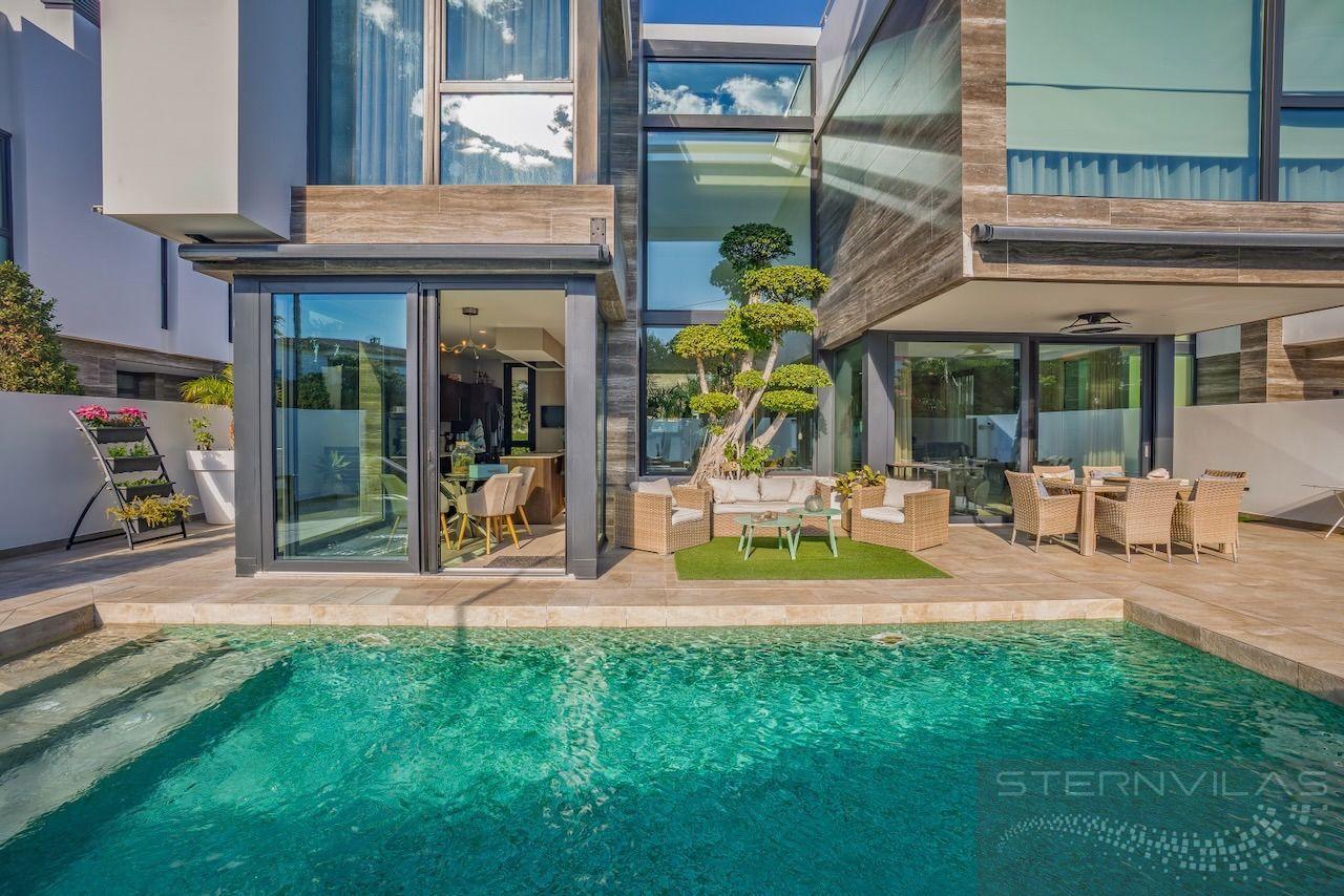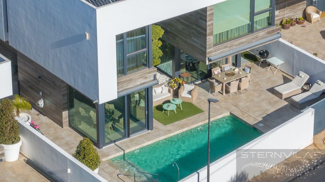 VILLA EN ALICANTE,ALFAZ DEL PIVilla 4 dormitorios, 5 baños, 1 garajes, Nuevo, en Alfaz del Pi, Alicante Moderna Villa en el centro de El Albir. La Villa está en la zona plana de la población y esta excepcional ubicación nos permite, en pocos minutos, ir andando a todas las mejores zonas comerciales y de restauración del Albir. La Villa tiene un jardín de poco mantenimiento con una piscina salina y una bonita terraza. También tenemos una zona de aparcamiento exterior con puerta motorizada. La Villa se compone de una planta principal, la planta superior con los dormitorios, el solario y un exclusivo sótano de diseño en el que se ha ubicado un gran salón multiusos con zona de billar, bar, cine, despensa y un completo baño con ducha. En esta planta sótano tenemos un luminoso patio interior que nos permite tener luz natural. También tenemos la zona de lavandería, el cuarto de maquinaria y un espacioso garaje. Todas las plantas se unen por una bonita escalera interior y un ascensor. En la planta principal tenemos un gran y luminoso salón con su cocina americana, un dormitorio y un baño. En la planta superior tenemos el dormitorio principal y dos dormitorios más. Todos los dormitorios tienen su baño en suite y amplias ventanas.En el solario tenemos una vista excepcional y también las instalaciones de placas fotovoltaicas para reducir el consumo y emisiones. En la vivienda se intenta mantener la mayor privacidad y está equipada con toldos y en las habitaciones estores opacos y cortinas. La vivienda dispone de un completo sistema de aire acondicionado, suelo radiante, aerotermia, domótica, alarma, cámaras, aspirador centralizado, instalación para descalcificación |
