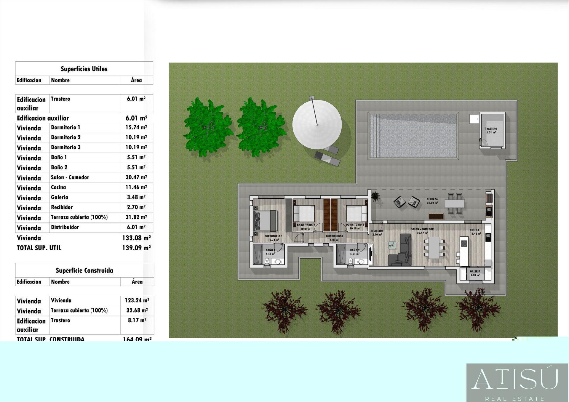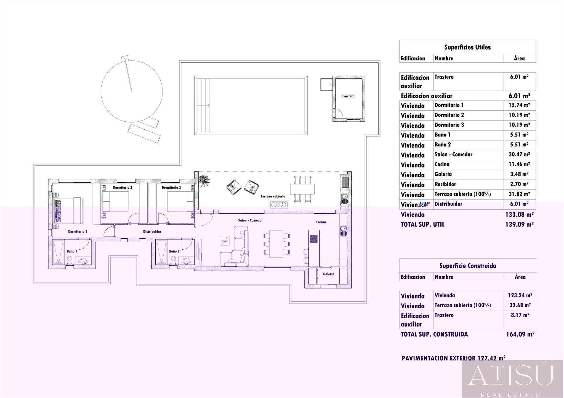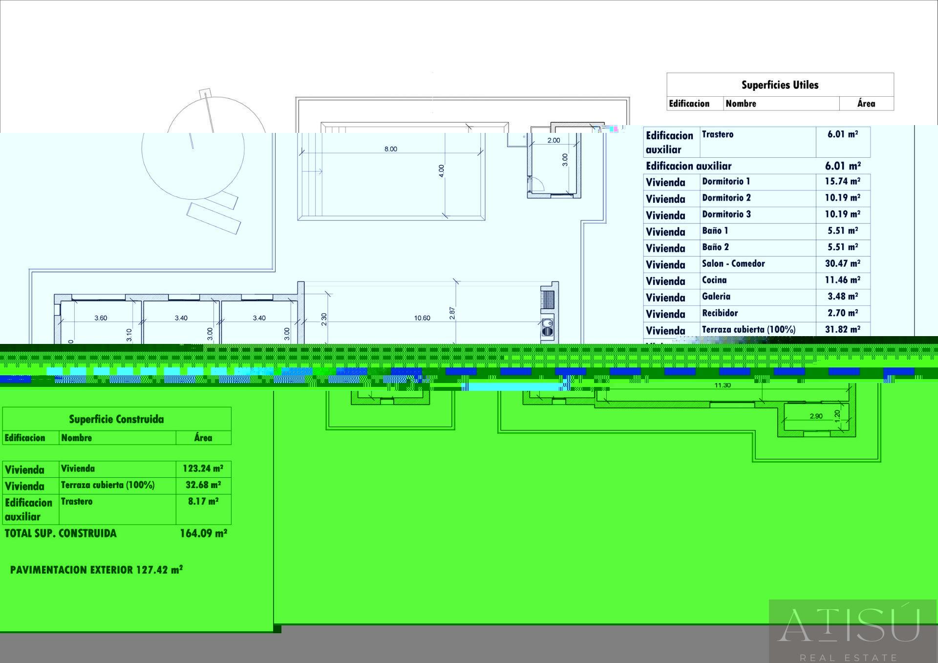 164m² útiles
