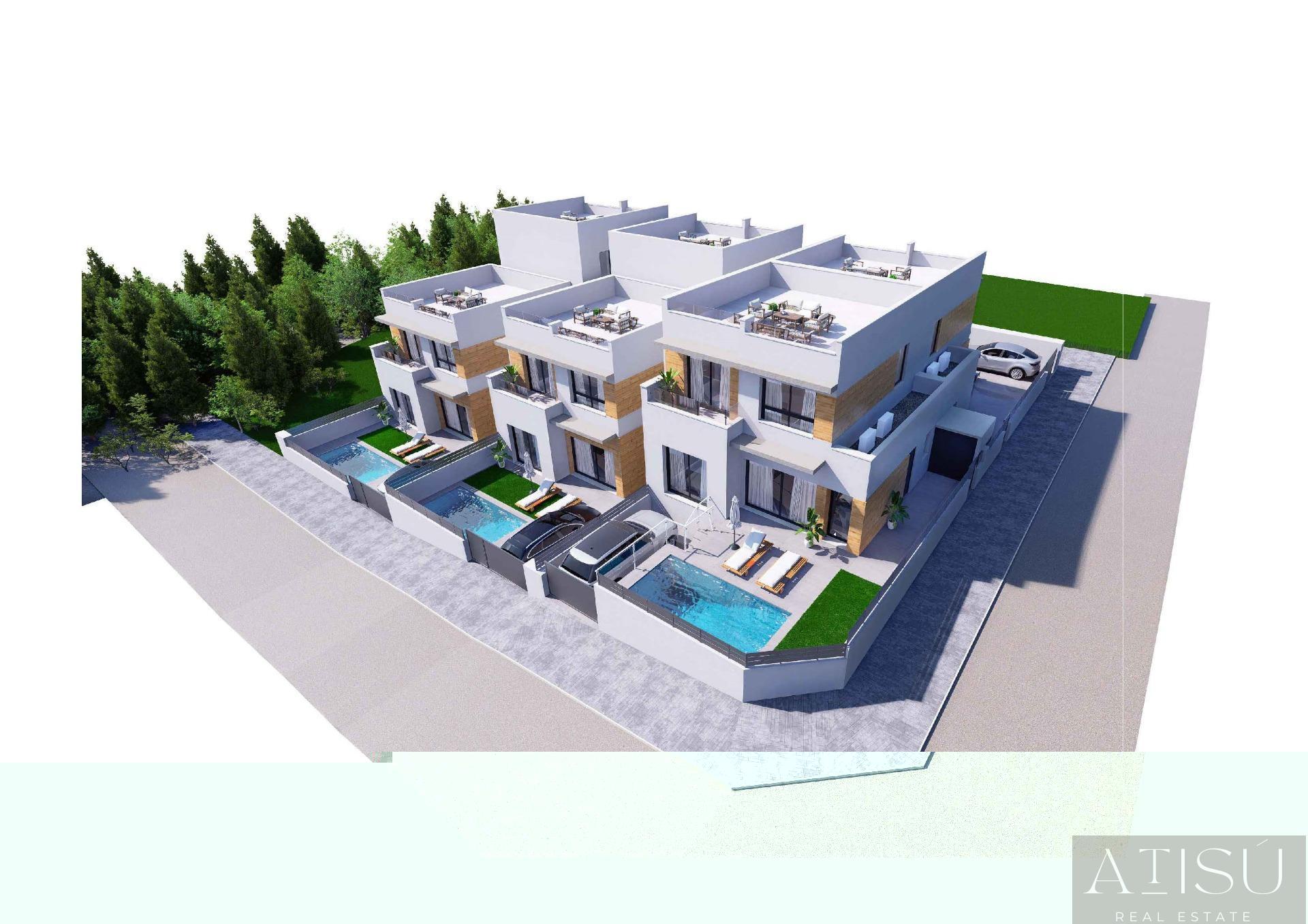 VILLA EN ALICANTE,BENIJOFARVilla 3 dormitorios, 3 baños, 0 garajes, , en Benijofar, Alicante Lujosos chalets adosados de nueva construcción en Benijófar, Costa BlancaUbicación privilegiada en Benijófar con fácil acceso a todos los serviciosDescubra un nuevo nivel de vida de lujo en la encantadora ciudad de Benijófar, una zona muy solicitada en la Costa Blanca española. Estas villas adosadas de nueva construcción están situadas en un barrio vibrante con una mezcla perfecta de modernidad y encanto local, ofreciendo fácil acceso a todos los servicios y atracciones esenciales. A sólo 10 km de las doradas playas de Guardamar del Segura y a 30 km del aeropuerto de Alicante, las villas están estratégicamente situadas para mayor comodidad y estilo de vida.Diseño espacioso y moderno con acabados de primera calidadCada villa está diseñada con una estética contemporánea, con líneas limpias y acabados de alta calidad. La distribución incluye tres amplios dormitorios y tres cuartos de baño, proporcionando un amplio espacio para familias o invitados. El salón-comedor de planta abierta conecta perfectamente con la cocina totalmente equipada, ofreciendo un espacio perfecto para el entretenimiento y las reuniones familiares. Los grandes ventanales permiten la entrada de mucha luz natural, creando un ambiente luminoso y acogedor en toda la casa.Espacios exteriores privados con piscina y solariumEstas villas incluyen espacios exteriores privados diseñados para relajarse y disfrutar del clima mediterráneo. El jardín embaldosado cuenta con una piscina de 2,5x5m, perfecta para refrescarse en los días calurosos, y un amplio espacio de aparcamiento. Las propiedades también vienen con un solarium en la azotea, donde se puede disfrutar de las vistas de los alrededores. El solarium está equipado para una posible instalación de jacuzzi, por lo que es un lugar perfecto para relajarse y disfrutar de la puesta de sol.Inclusiones de alta calidad para el máximo confortTodas las villas están totalmente equipadas con electrodomésticos de alta gama, como frigorífico con congelador panelado, placa de inducción, lavavajillas panelado, microondas integrado y horno. Otras características incluyen unidades de aire acondicionado para el control del clima, calefacción por suelo radiante en los baños y persianas eléctricas para mayor privacidad. Los focos y apliques exteriores realzan el ambiente, haciendo que cada villa sea a la vez funcional y lujosa.Benijófar: Una mezcla de tradición y modernidadBenijófar es un pueblo encantador con un ambiente acogedor, conocido por su hermosa iglesia, tiendas locales, supermercados, farmacias, bancos y deliciosos restaurantes. Los amantes de la naturaleza apreciarán el cercano parque natural, ideal para pasear y explorar. Los entusiastas del golf encontrarán varios campos de golf a poca distancia en coche, mientras que las familias pueden disfrutar de los cercanos parques acuáticos de Rojales (4 km) y Torrevieja (12 km). Las villas también están bien comunicadas, ya que las autopistas N-332 y AP-7 facilitan el acceso a las ciudades de los alrededores.¿Listo para hacer de Benijófar su nuevo hogarDisfrute del lujo y la comodidad de estas modernas villas en Benijófar. No pierda esta oportunidad de disfrutar de la vida en la Costa Blanca. Póngase en contacto con nosotros hoy mismo para concertar una visita y dar el primer paso hacia la casa de sus sueños. |