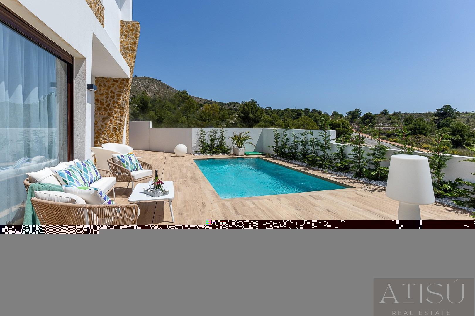 VILLA EN ALICANTE,FINESTRATVilla 3 dormitorios, 2 baños, 0 garajes, , en Finestrat, Alicante VILLAS DE OBRA NUEVA EN BALCON DE FINESTRAT Villas modernas de nueva construcción en Balcon de Finestrat.Villas amplias y luminosas con 3 dormitorios y 2 baños, cocina abierta con salón-comedor, hermosa terraza, jardín privado con la piscina y plaza de aparcamiento.La combinación de madera y piedra natural hace que la casa sea moderna y rústica al mismo tiempo.Villas situadas a 10 minutos de Benidorm y a sólo 2 km de Finestrat. El trayecto a Tierra Mítica donde podrá pasar un rato agradable con la familia le llevará 6 minutos. Esta ubicación hace que sea una gran elección para una casa de vacaciones.Finestrat se encuentra en la comarca de la Marina Baixa de la Costa Blanca, cerca de la vecina Benidorm y a unos 40 kilómetros de la ciudad de Alicante y del aeropuerto internacional. El pueblo está situado en la ladera del Puig Campana y ofrece hermosas vistas de las montañas, la costa y el mar Mediterráneo.Benidorm está a sólo cinco minutos en coche de las propiedades y ofrece todos los servicios que pueda necesitar, incluyendo tiendas, bares, restaurantes, supermercados, bancos, farmacias y varias escuelas privadas internacionales.Cerca de las playas de Levante, Poniente y Cala de Finestrat, con más de 6km de longitud que se encuentran entre las mejores de Europa galardonadas por la Unión Europea con Banderas Azules.Todos los servicios de ocio como los parques temáticos de Aqua Natura, Terra Mítica, Terra Natura, Aqualandia y Mundomar, los campos de Golf Sierra Cortina y Villaitana, el senderismo y la escalada en el Puig Campana un marco natural incomparable o el disfrute de los deportes náuticos. |