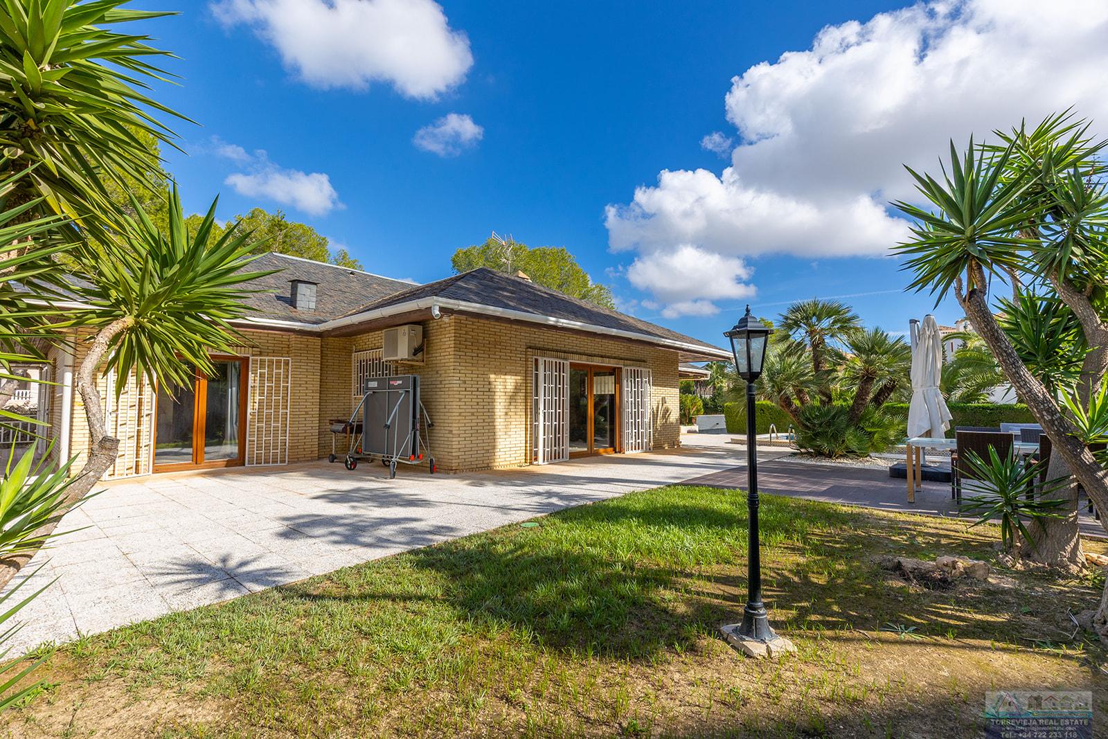 VILLA EN ALICANTE,ORIHUELA COSTAVilla 5 dormitorios, 3 baños, 0 garajes, , en Orihuela costa, Alicante Magnífico chalet independiente en Las Filipinas (urb. Villamartín), situado sobre una amplia parcela de 1.510 m² que ofrece total privacidad y un entorno natural privilegiado. Con 366 m² construidos, esta vivienda combina amplitud, comodidad y funcionalidad, distribuyéndose en cinco dormitorios, tres baños, un luminoso salón y un comedor independiente, ideales para una vida familiar confortable. La propiedad cuenta con garaje cerrado y trastero, además de una espectacular piscina privada orientada al sur que disfruta del sol durante todo el día. El jardín, cuidadosamente ajardinado, rodea la vivienda y crea un ambiente tranquilo y verde, perfecto para el relax o para disfrutar al aire libre. Entre sus características destacan la calefacción individual, amplios espacios interiores y exteriores, y una distribución pensada para el máximo confort. Ubicada a solo 4-5 km de las playas de la Costa Blanca Sur (unos 8-10 minutos en coche), esta vivienda se encuentra también muy cerca del centro comercial La Zenia Boulevard, con una gran variedad de tiendas, restaurantes y zonas de ocio. La urbanización está perfectamente comunicada con la autopista AP-7 y la carretera N-332. En las inmediaciones hay supermercados, bares, restaurantes y varios campos de golf, lo que convierte esta propiedad en una excelente opción de compra tanto para residencia habitual como para vacaciones o inversión. |