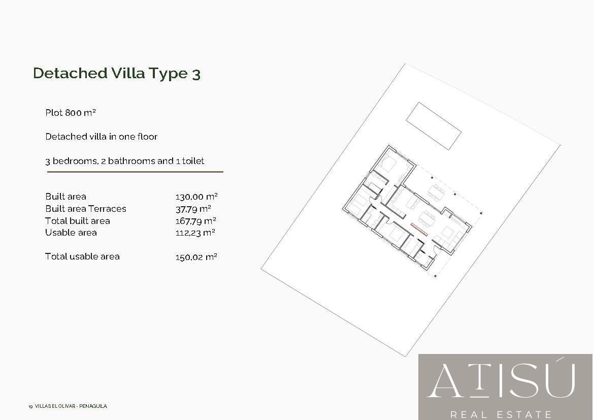 VILLA EN ALICANTE,PENAGUILAVilla 3 dormitorios, 2 baños, 0 garajes, , en Penaguila, Alicante Villas de nueva construcción en Penáguila: tranquilidad y naturaleza en el corazón de la Sierra de Aitana, AlicanteDescubra una oportunidad excepcional para vivir rodeado de naturaleza en un entorno tranquilo con impresionantes vistas a la montaña. Esta nueva promoción de 35 villas de una sola planta se encuentra junto al encantador pueblo de Penáguila, enclavado en el corazón de la Sierra de Aitana, en Alicante. Con generosas parcelas de 800 m², estas viviendas ofrecen privacidad, comodidad y contacto directo con el entorno natural.Viviendas amplias con distribuciones personalizadasCada villa se encuentra en una parcela privada de 800 m² y está distribuida en una sola planta, lo que ofrece el máximo confort y accesibilidad. Elija entre 5 distribuciones diferentes con 3 o 4 dormitorios, 2 o 3 baños y superficies construidas que van desde los 130 hasta los 178 m². Todas las viviendas cuentan con amplias terrazas cubiertas, ideales para disfrutar del aire libre durante todo el año.Esta promoción es perfecta para familias, jubilados o cualquier persona que busque una primera o segunda residencia en un entorno tranquilo y saludable, pero cerca de los servicios esenciales.Acabados de alta calidad y sistemas sosteniblesLas villas están construidas con materiales de primera calidad y modernas instalaciones de bajo consumo, entre las que se incluyen:Carpintería exterior de PVC con doble acristalamiento y persianas eléctricas.Calefacción por suelo radiante mediante sistema aerotérmico.Agua caliente sanitaria también alimentada por energía aerotérmica.Aparcamiento cubierto con pérgola metálica y paneles solares fotovoltaicos.Cocinas totalmente equipadas con armarios altos y bajos.Este enfoque en la sostenibilidad no solo mejora el confort, sino que también reduce los costes energéticos a largo plazo.Una ubicación privilegiada entre la montaña y la costaSituadas a pocos minutos del centro de Penáguila, un pintoresco pueblo conocido por su ambiente tranquilo y su encanto tradicional, estas villas gozan de una ubicación perfecta entre la serenidad de la montaña y la comodidad de la costa.Distancias a los principales puntos de interés:Alcoy: 20 kmBenidorm: 38 kmCiudad de Alicante: 52 kmAeropuerto de Alicante: 60 kmCampo de golf más cercano (Alenda Golf): 45 kmPlayas de Villajoyosa y Benidorm: aproximadamente 45 kmEsta ubicación ofrece un excelente acceso tanto al interior como a la costa, lo que la hace ideal para los amantes de la naturaleza que aún desean estar cerca de los servicios urbanos y los centros turísticos de playa.Reserve la villa de sus sueños en la Sierra de AitanaYa hay dos villas en construcción y se entregarán en solo 4 meses. Las unidades restantes están disponibles con un plazo de entrega de 12 meses desde la reserva.Póngase en contacto con nosotros hoy mismo para obtener más información y asegurarse su nuevo hogar en Penáguila, donde el confort se une a la naturaleza. |