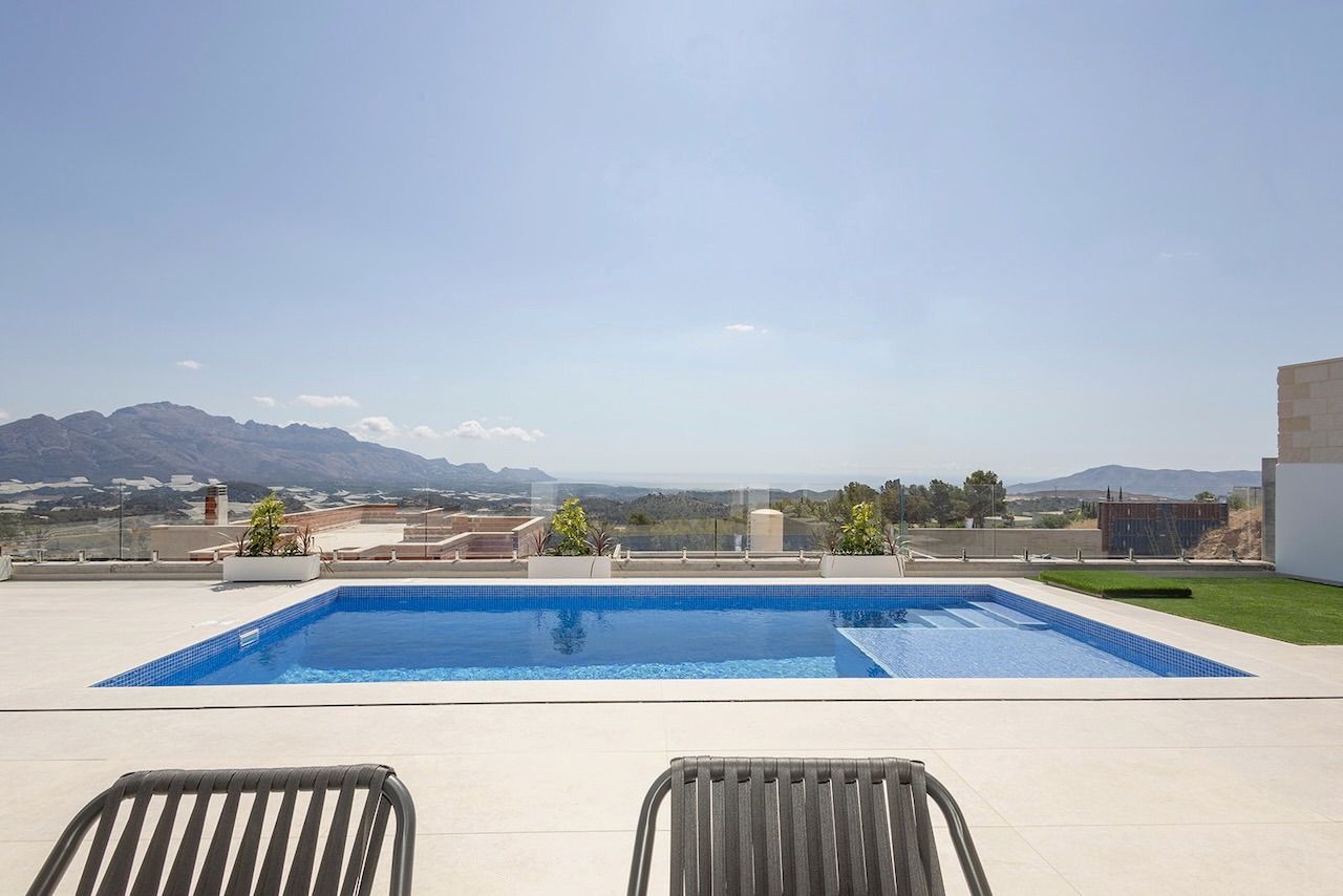 VILLA EN ALICANTE,POLOPVilla 3 dormitorios, 3 baños, 0 garajes, Nuevo, en Polop, Alicante Bonita villa moderna con piscina privada y vistas al mar. La villa está ubicada en una bonita zona residencial. En la planta baja tenemos un bonito salón comedor con cocina americana, un dormitorio con baño en suite y un aseo. A través de la escalera interior tenemos acceso a la planta superior donde tenemos dos dormitorios con baños en suite. Opcionalmente se puede pedir la villa con solario, pero esta opción supone un coste adicional. La propiedad incluye de serie: Iluminación interior y exterior, persianas automatizadas, baños completos con mamparas de ducha y suelo radiante, aerotermia, 3 paneles fotovoltaicos para energía eléctrica, piscina y por tiempo limitado el pack de electrodomésticos y aire acondicionado. Preguntar si dicha promoción está vigente en el momento de la visita a la casa. En la parcela tenemos plaza de aparcamiento cerrado. |