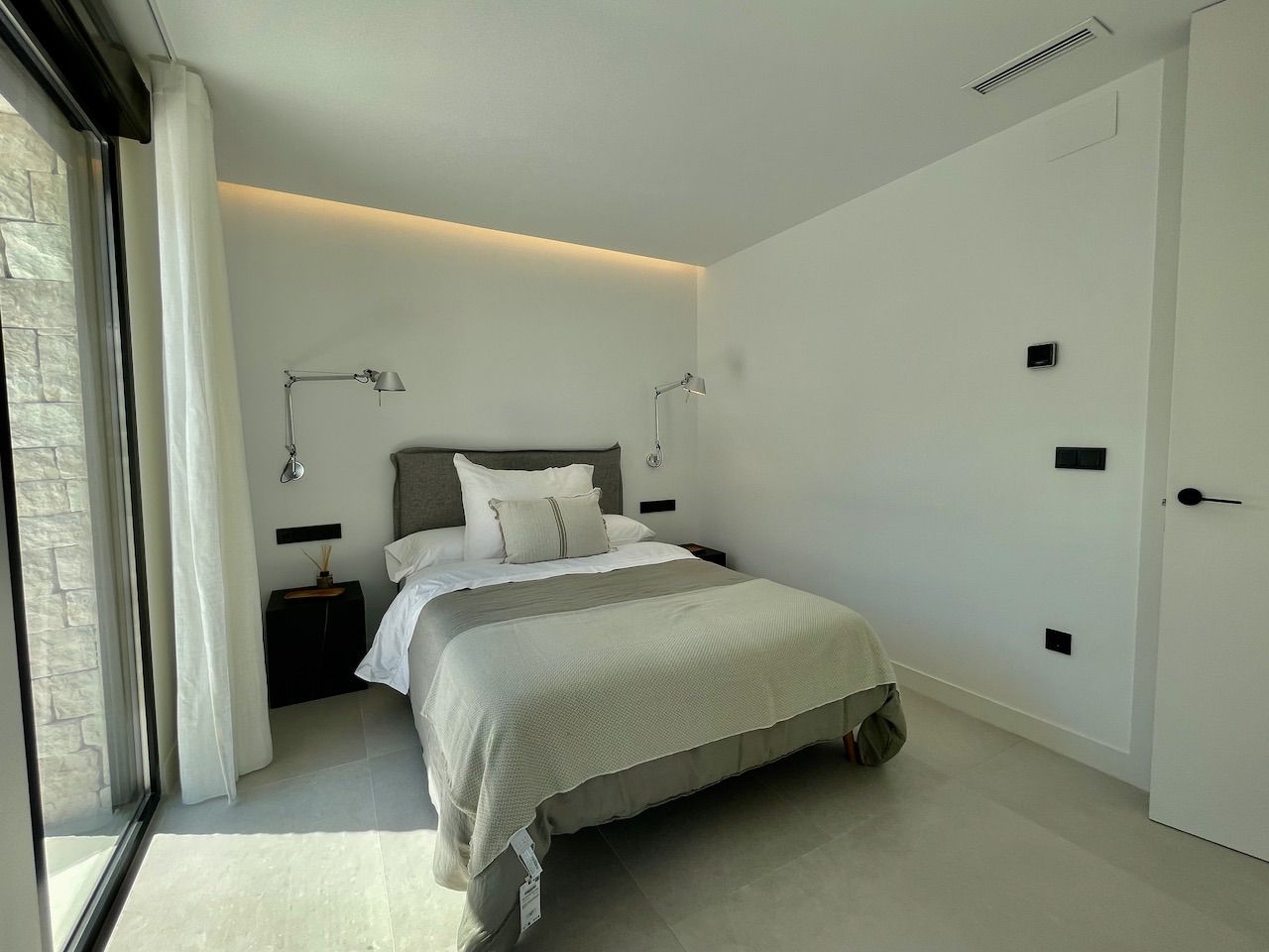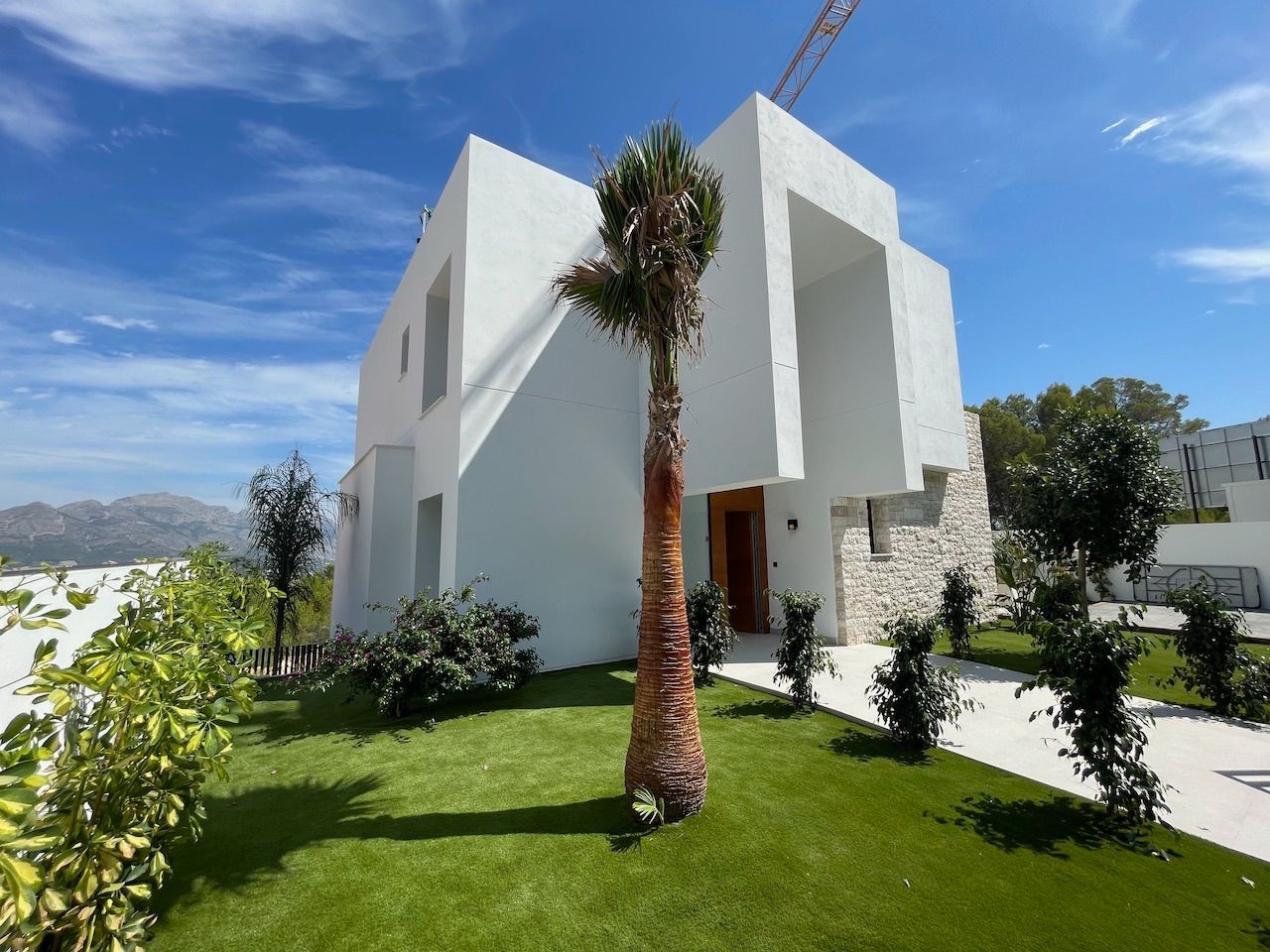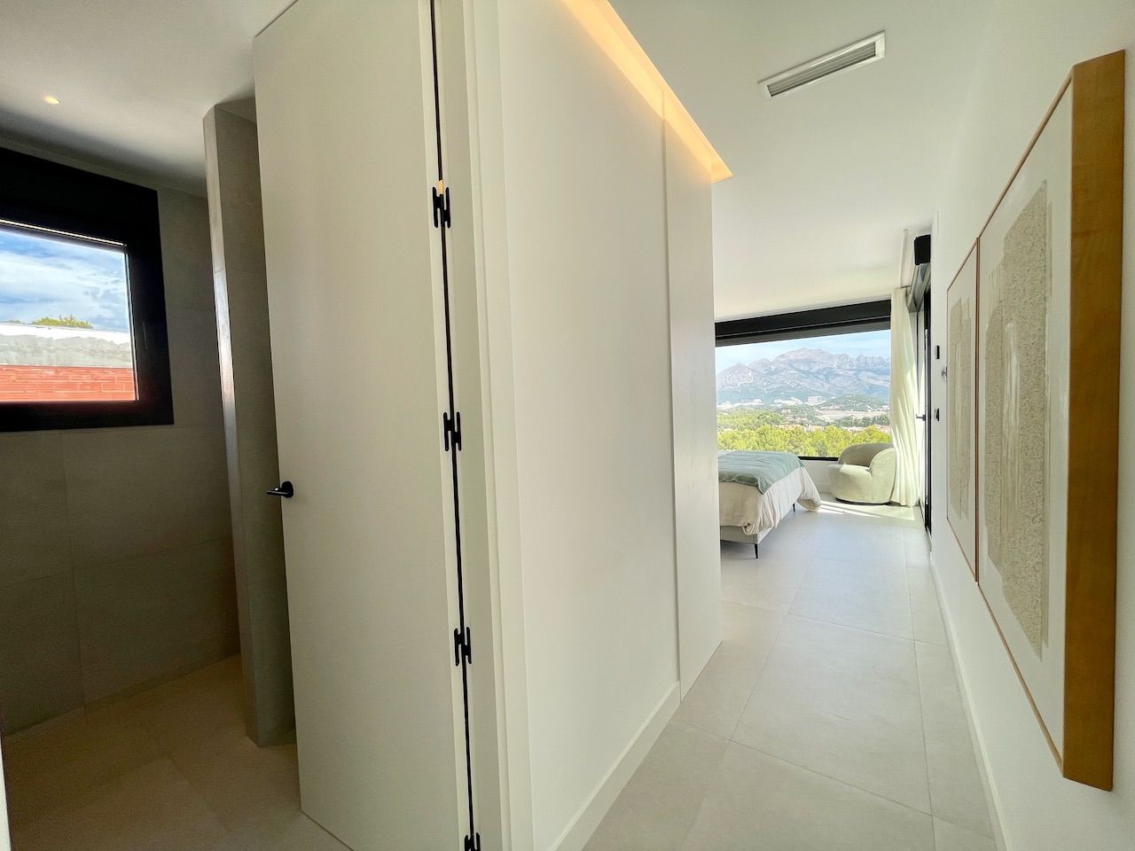VILLA EN ALICANTE,POLOPVilla 3 dormitorios, 3 baños, 1 garajes, Nuevo, en Polop, Alicante Moderna villa con tres dormitorios y sótano con garaje. Esta luminosa villa tiene bonitas vistas a la montaña y al mar. Dispone de tres plantas. En la planta principal tenemos el salón con la cocina americana, chimenea decorativa y la salida al jardín con la piscina. En esta planta también tenemos un dormitorio con baño en suite. Desde esta planta a través de la moderna escalera interior, se accede a la planta superior en la que tenemos dos dormitorios, uno de ellos con terraza, vestidor y baño en suite y el otro con el baño en suite y terraza. En la planta sótano, a la que también accedemos por la escalera interior, tenemos una sala multiusos, un trastero y un gran garaje. La villa esta excelentemente equipada. Dispone, entre otros equipamientos, de jardín, piscina desbordante salina, aire acondicionado, cocina equipada, domótica, puerta acorazada, armarios terminados en el interior, chimenea, persianas motorizadas, calefacción radiante salvo en el garaje, etc. La villa tiene una superficie construida de 154,16 m2 a la que si se la añade la construcción de terrazas y piscina se obtiene un total de 293,85,m2 de construcción. |