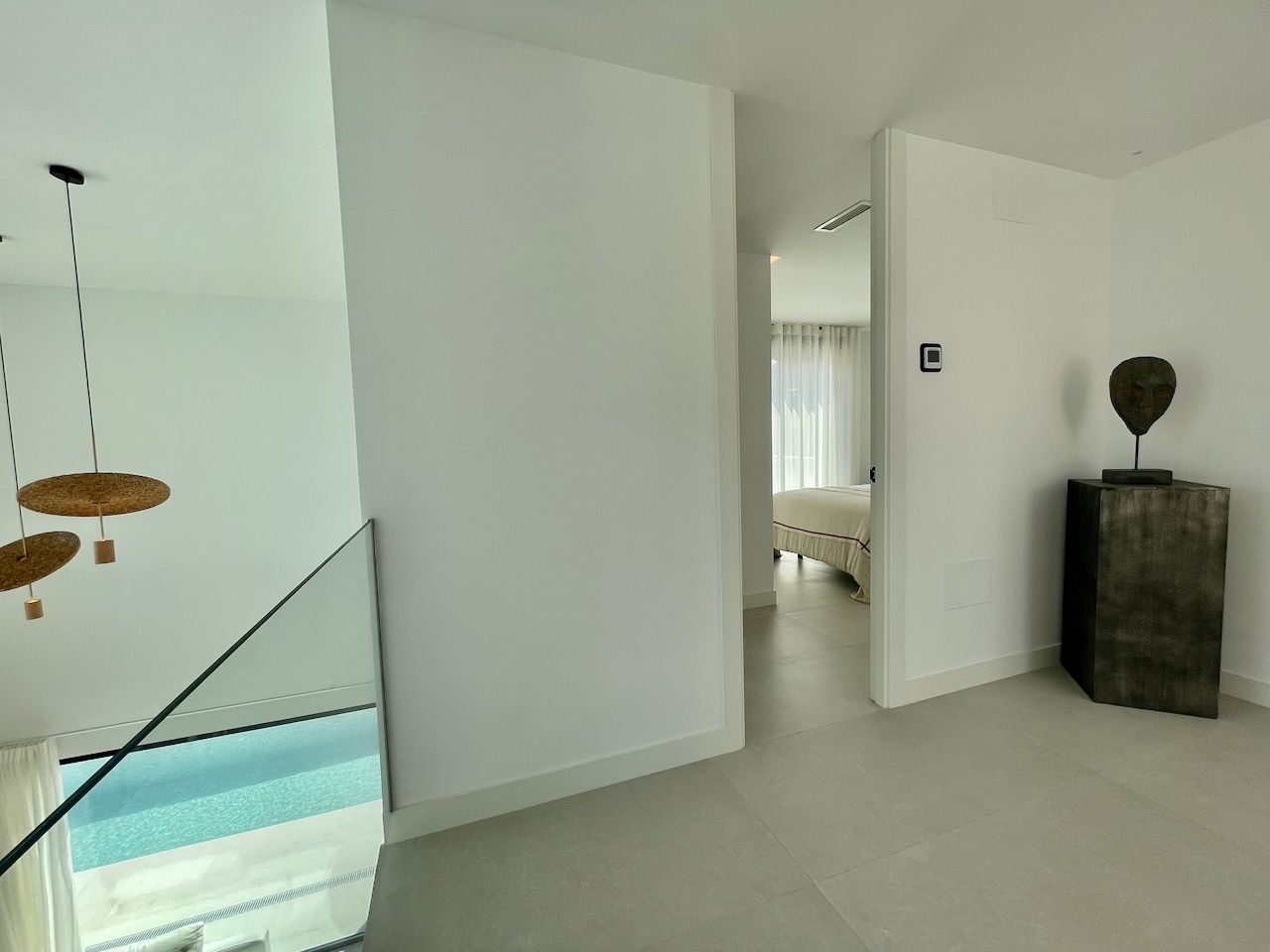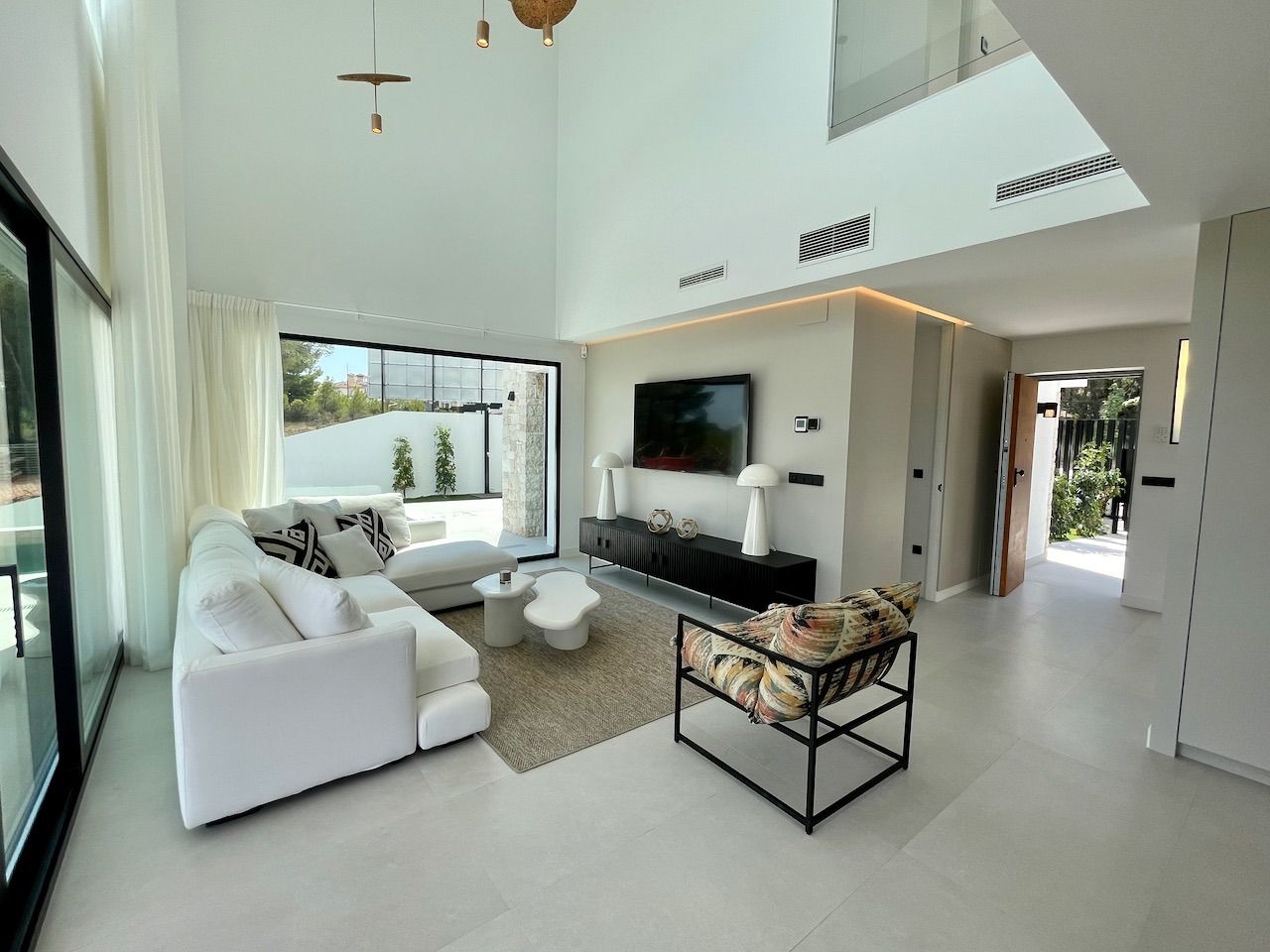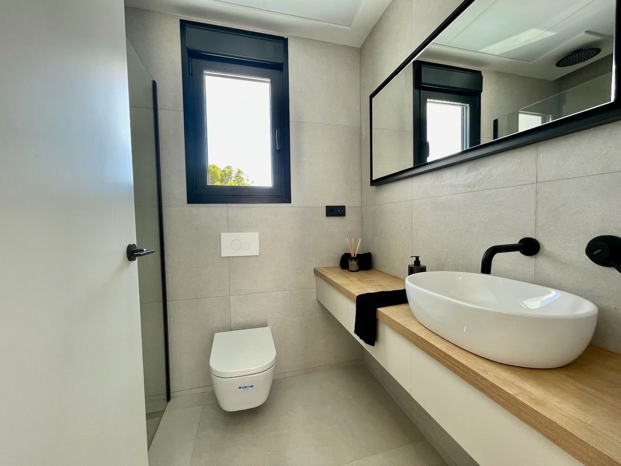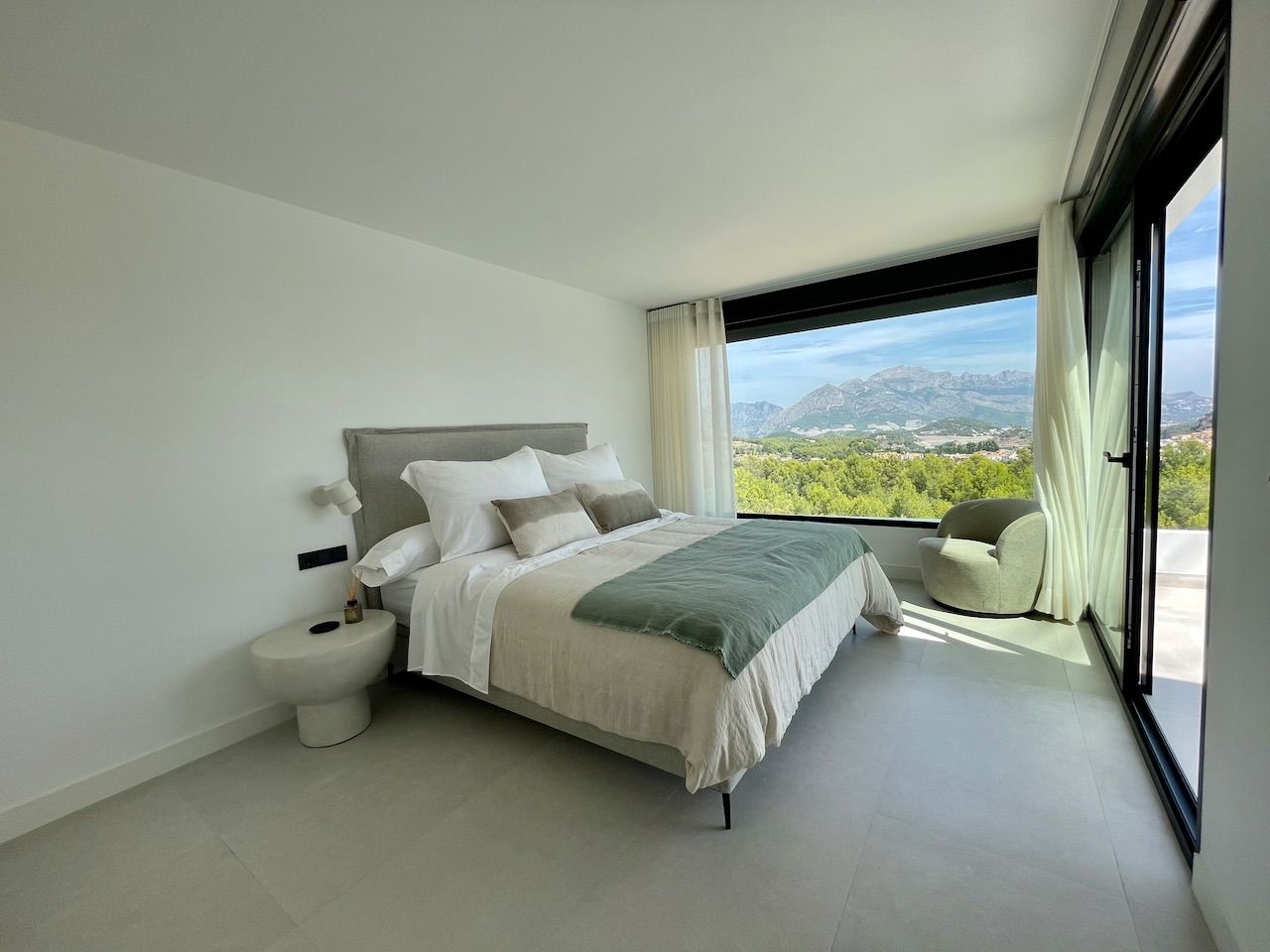 VILLA EN ALICANTE,POLOPVilla 3 dormitorios, 3 baños, 1 garajes, Nuevo, en Polop, Alicante Moderna villa con tres dormitorios y sótano con garaje. Esta luminosa villa tiene bonitas vistas a la montaña y al mar. Dispone de tres plantas. En la planta principal tenemos el salón con la cocina americana, chimenea decorativa y la salida al jardín con la piscina. En esta planta también tenemos un dormitorio con baño en suite. Desde esta planta a través de la moderna escalera interior, se accede a la planta superior en la que tenemos dos dormitorios, uno de ellos con terraza, vestidor y baño en suite y el otro con el baño en suite y terraza. En la planta sótano, a la que también accedemos por la escalera interior, tenemos una sala multiusos, un trastero y un gran garaje. La villa esta excelentemente equipada. Dispone, entre otros equipamientos, de jardín, piscina desbordante salina, aire acondicionado, cocina equipada, domótica, puerta acorazada, armarios terminados en el interior, chimenea, persianas motorizadas, calefacción radiante salvo en el garaje, etc. La villa tiene una superficie construida de 154,16 m2 a la que si se la añade la construcción de terrazas y piscina se obtiene un total de 293,85,m2 de construcción. |